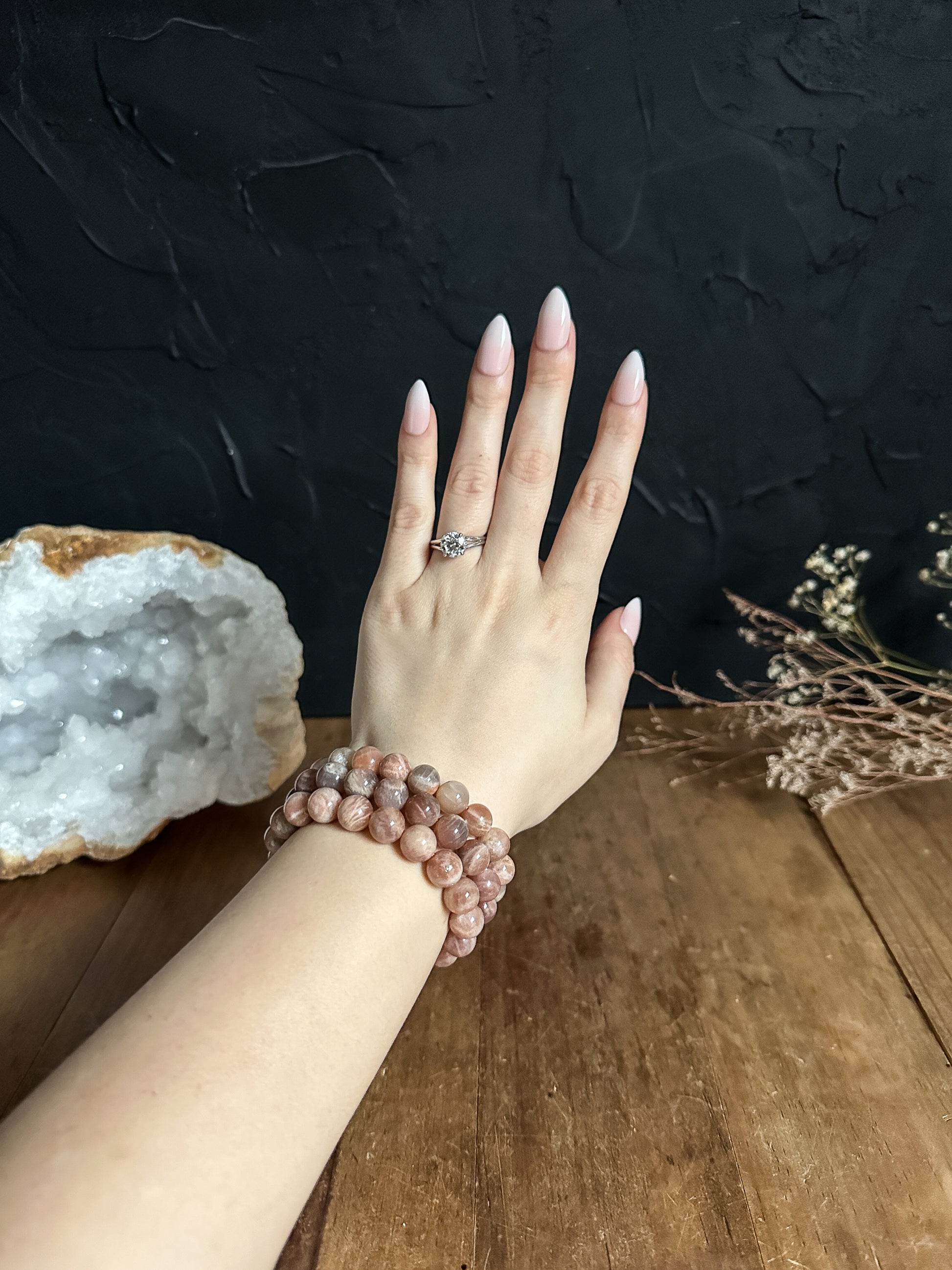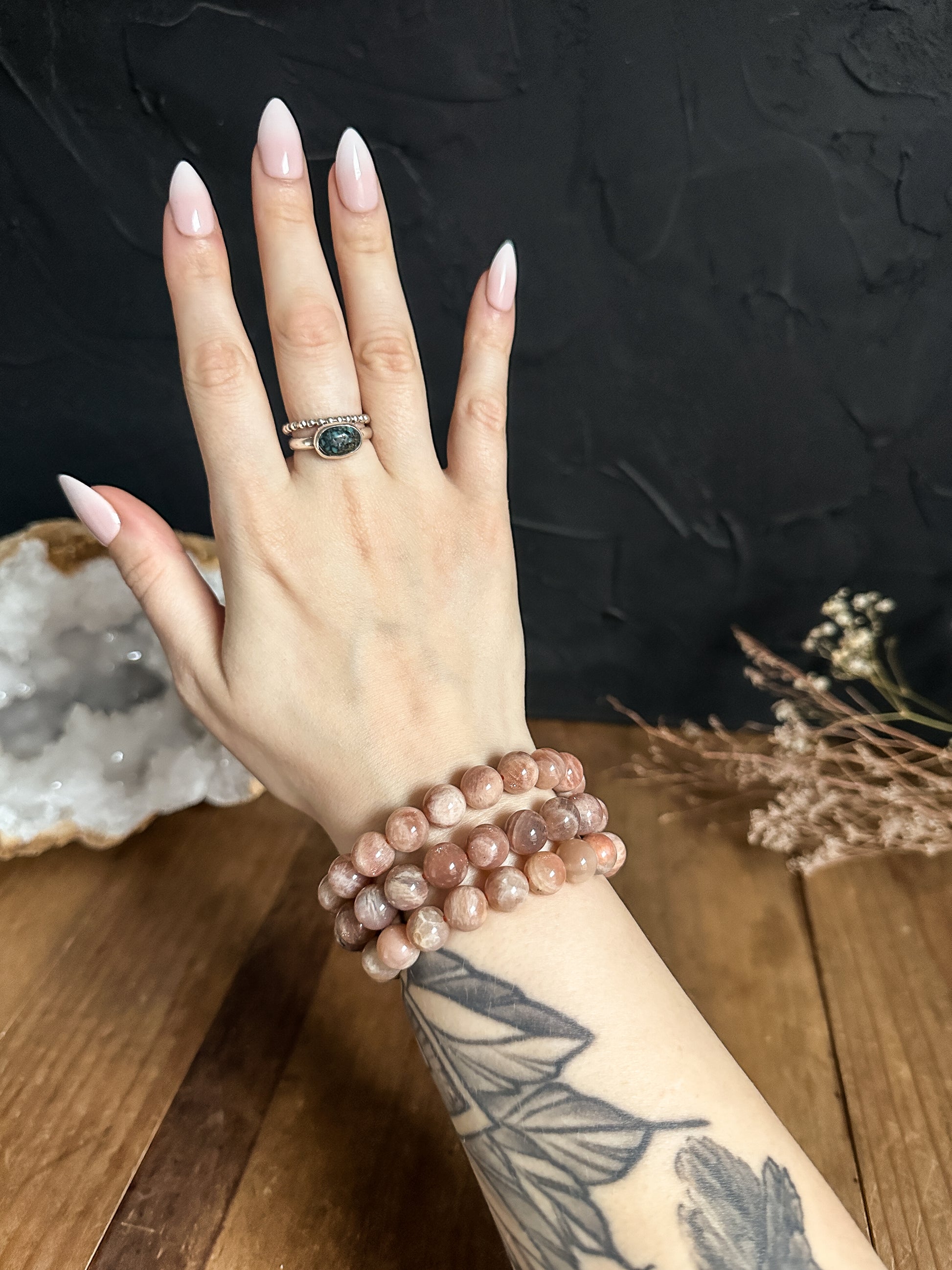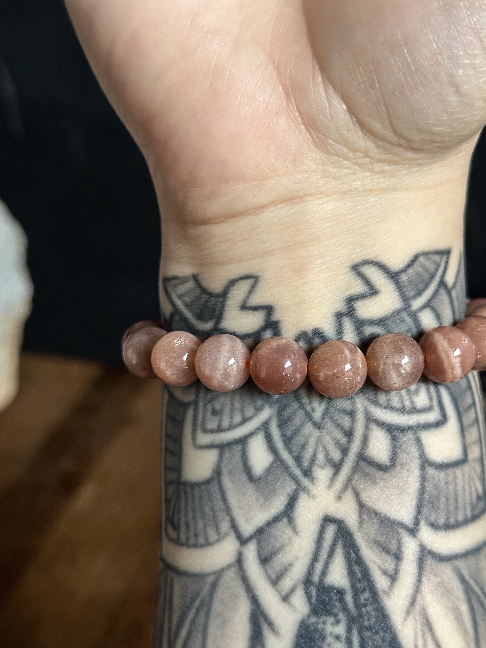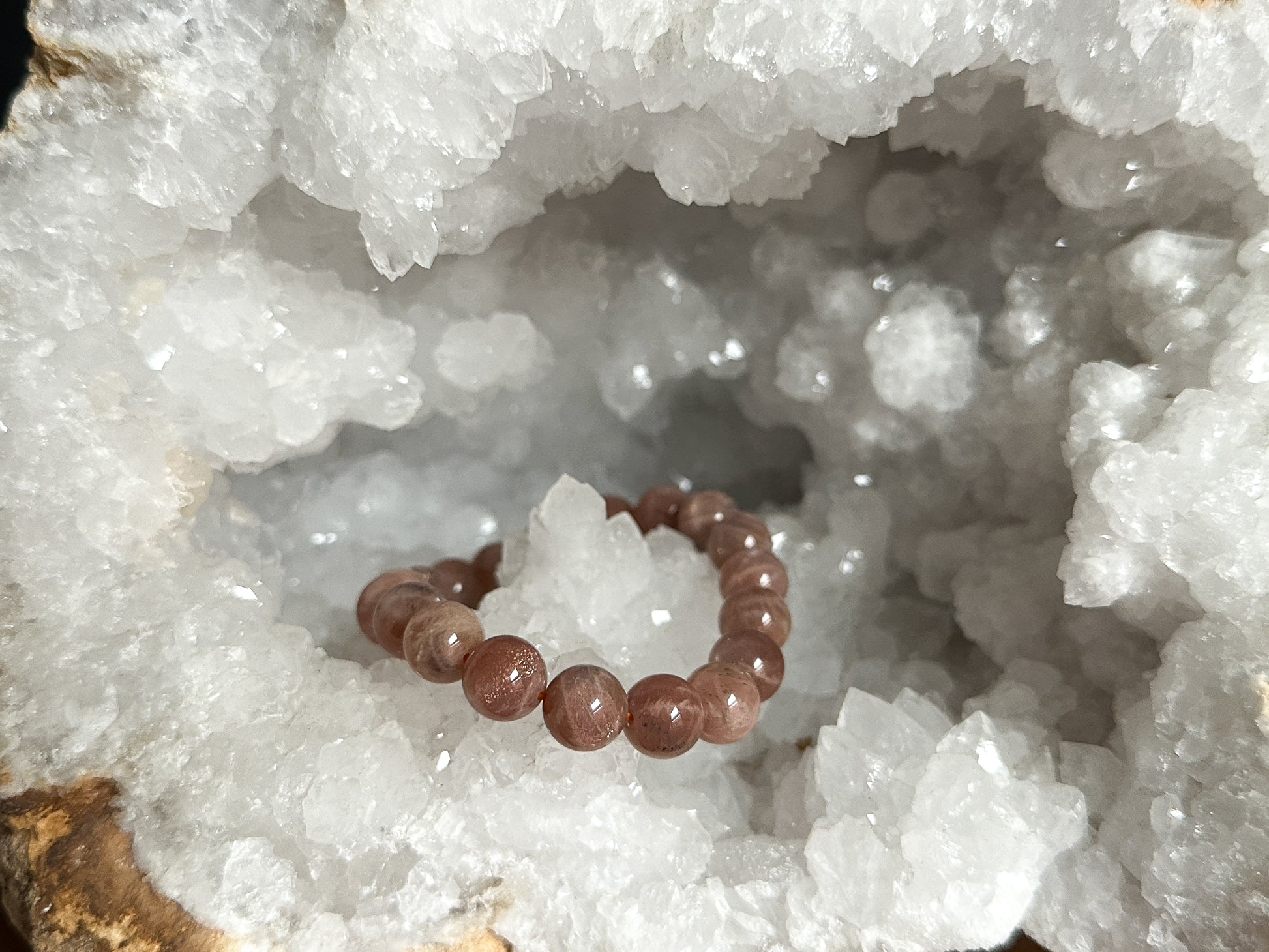 This beautiful Sunstone Bracelet is made up of 10mm rounded beads.