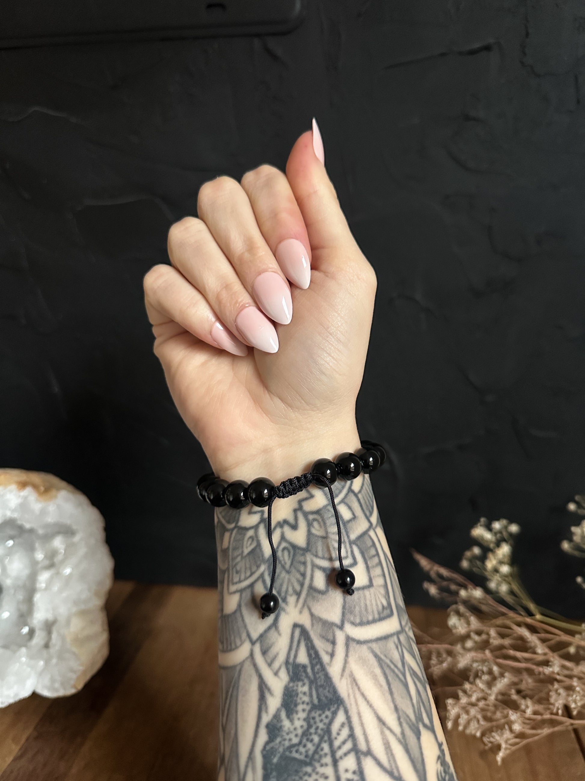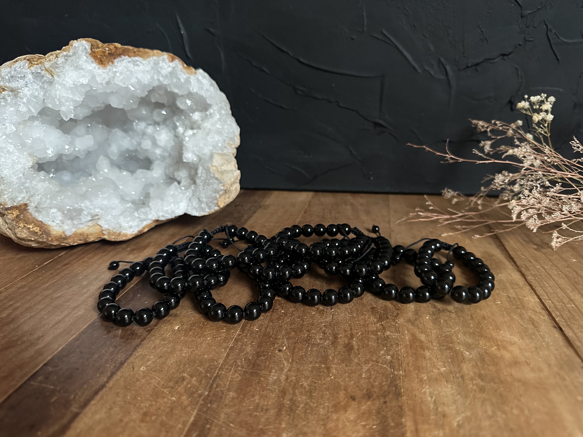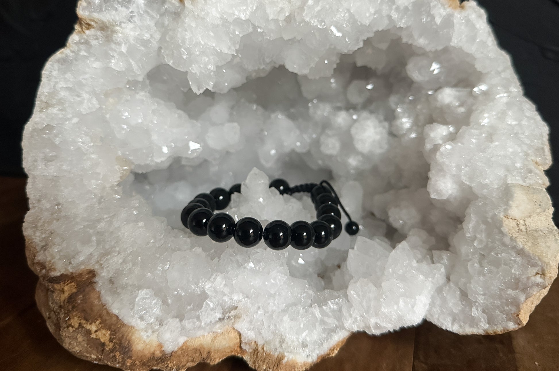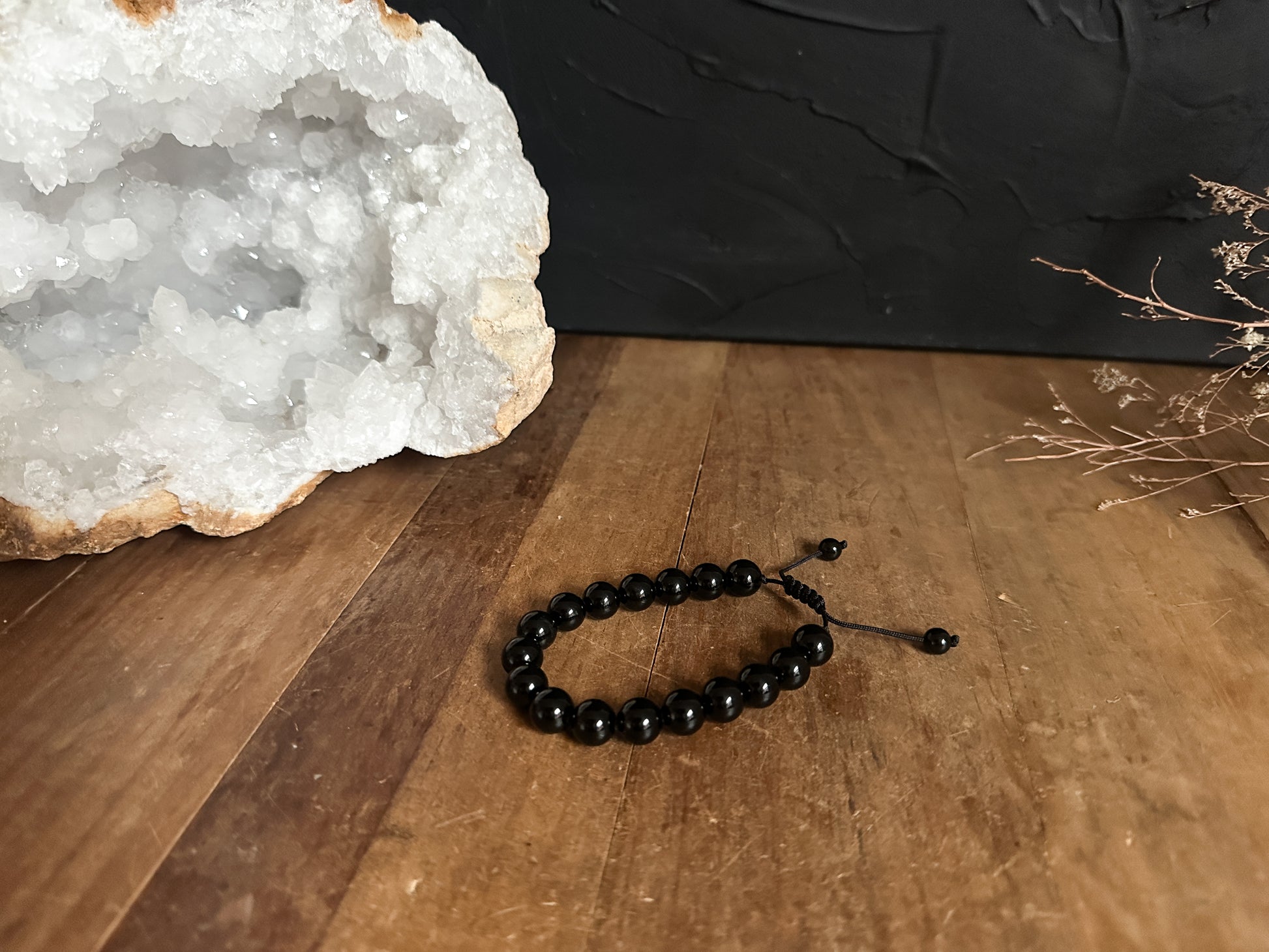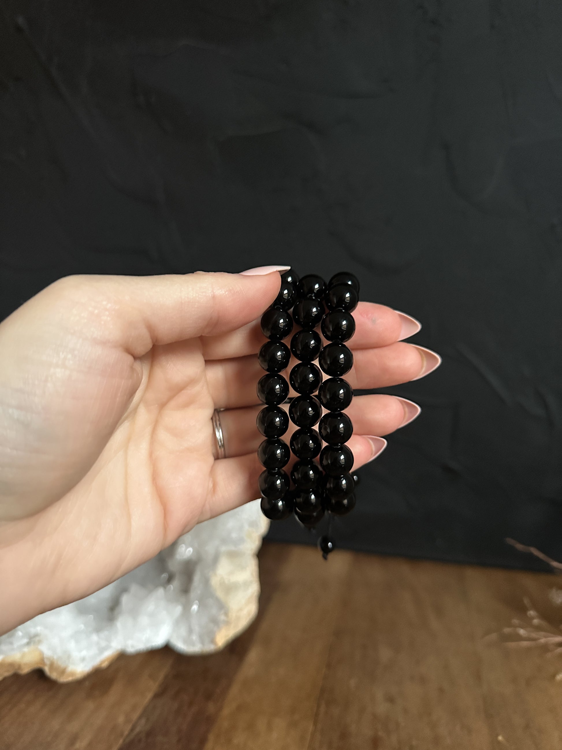 This beautiful deep black bracelet is made up of genuine 10mm Black Obsidian beads.