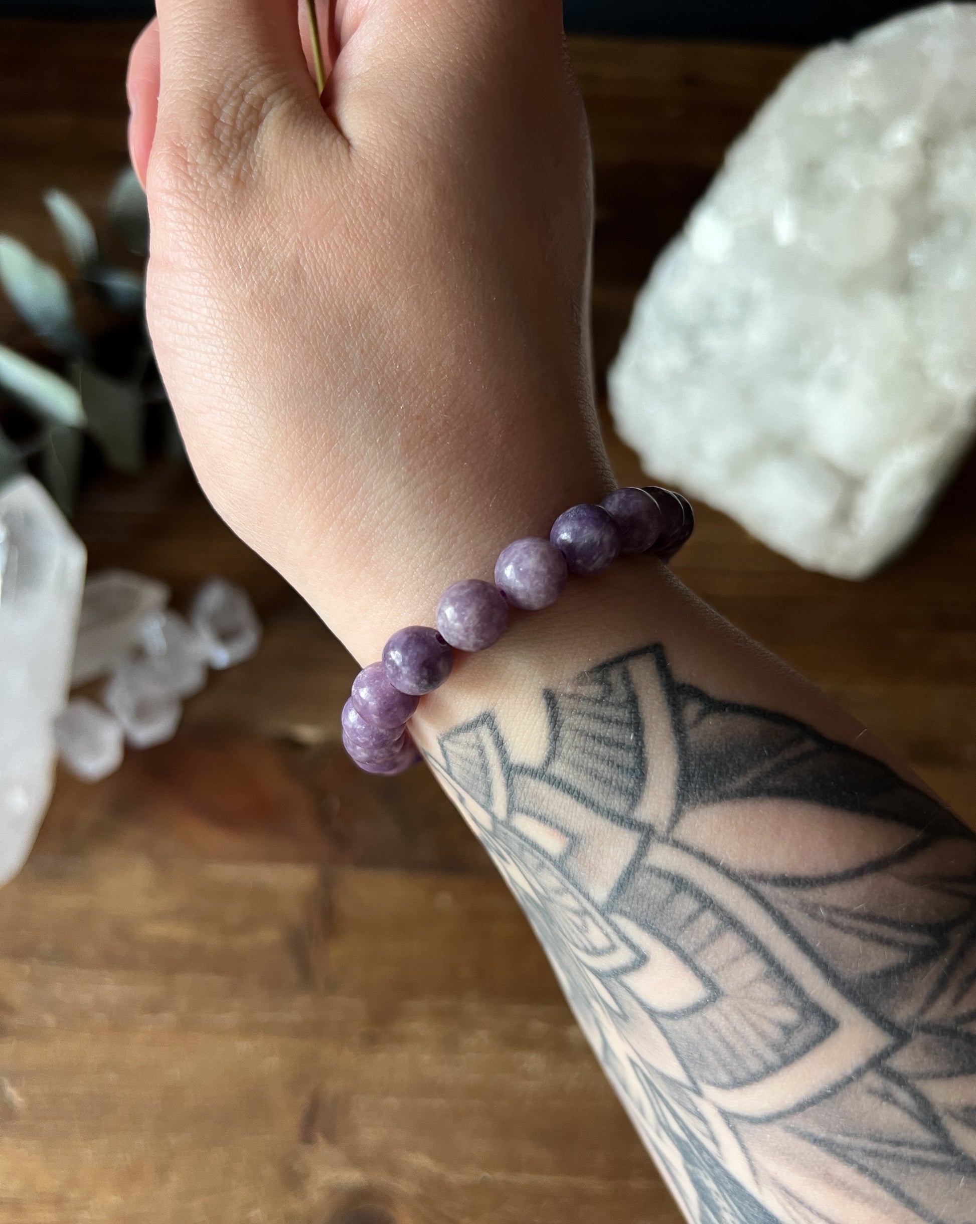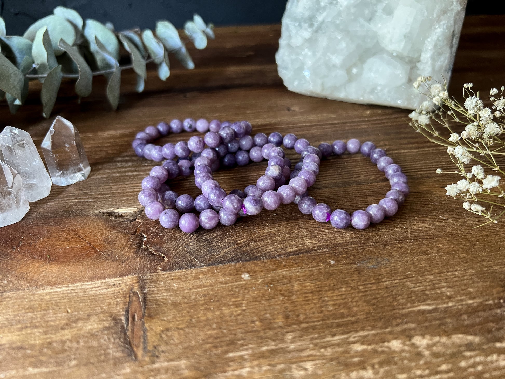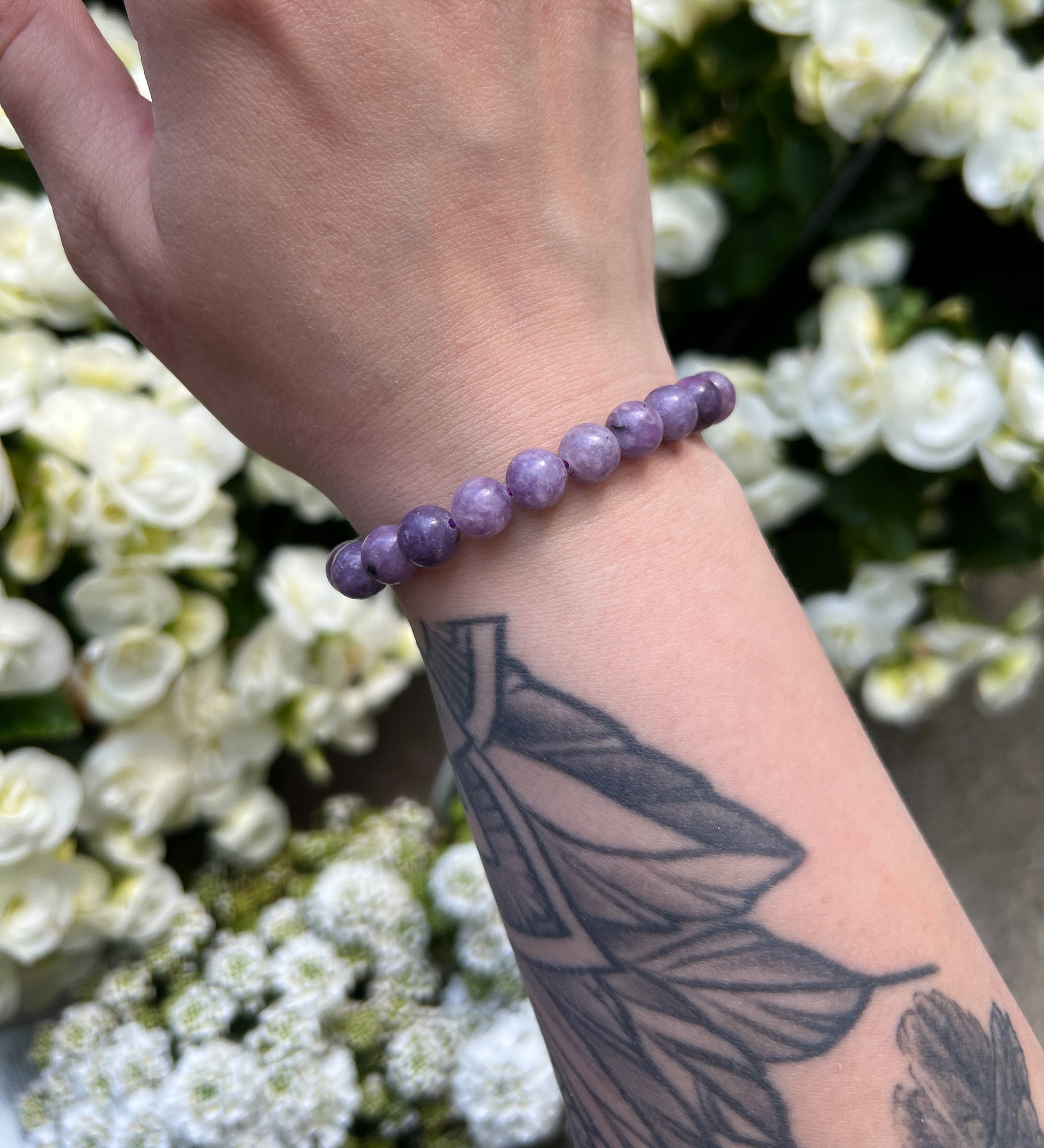 Gorgeous on its own, or perfect for stacking. This hue of Lepidolite is such a beautiful lilac! One of the best stones for emotional balance and stress relief!The bracelet’s stretchy design ensures a comfortable fit for most.
