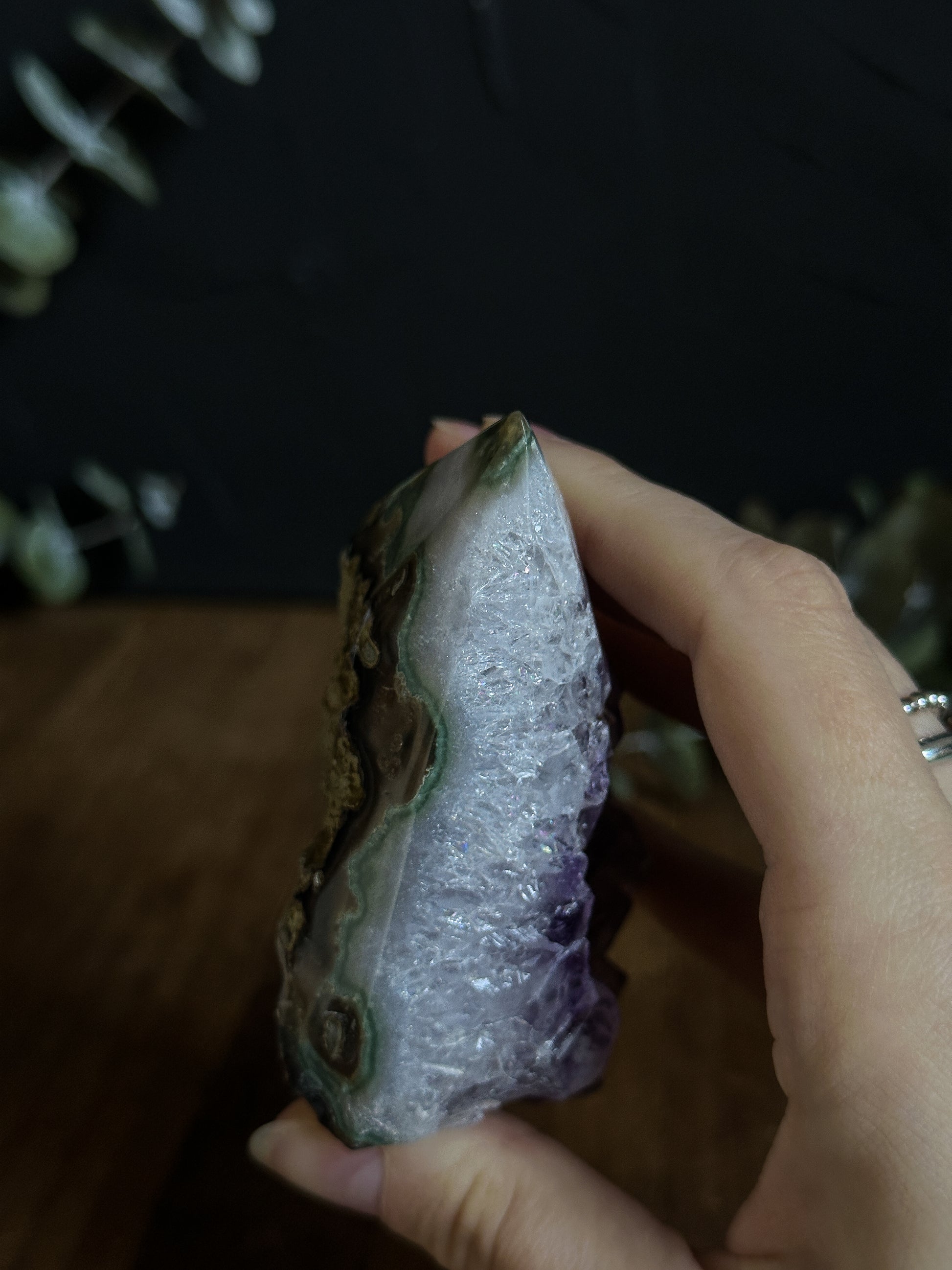 Affirmation: "I am connected to my higher self and trust my inner wisdom. Amethyst's soothing energy surrounds me, promoting spiritual insight and tranquility."