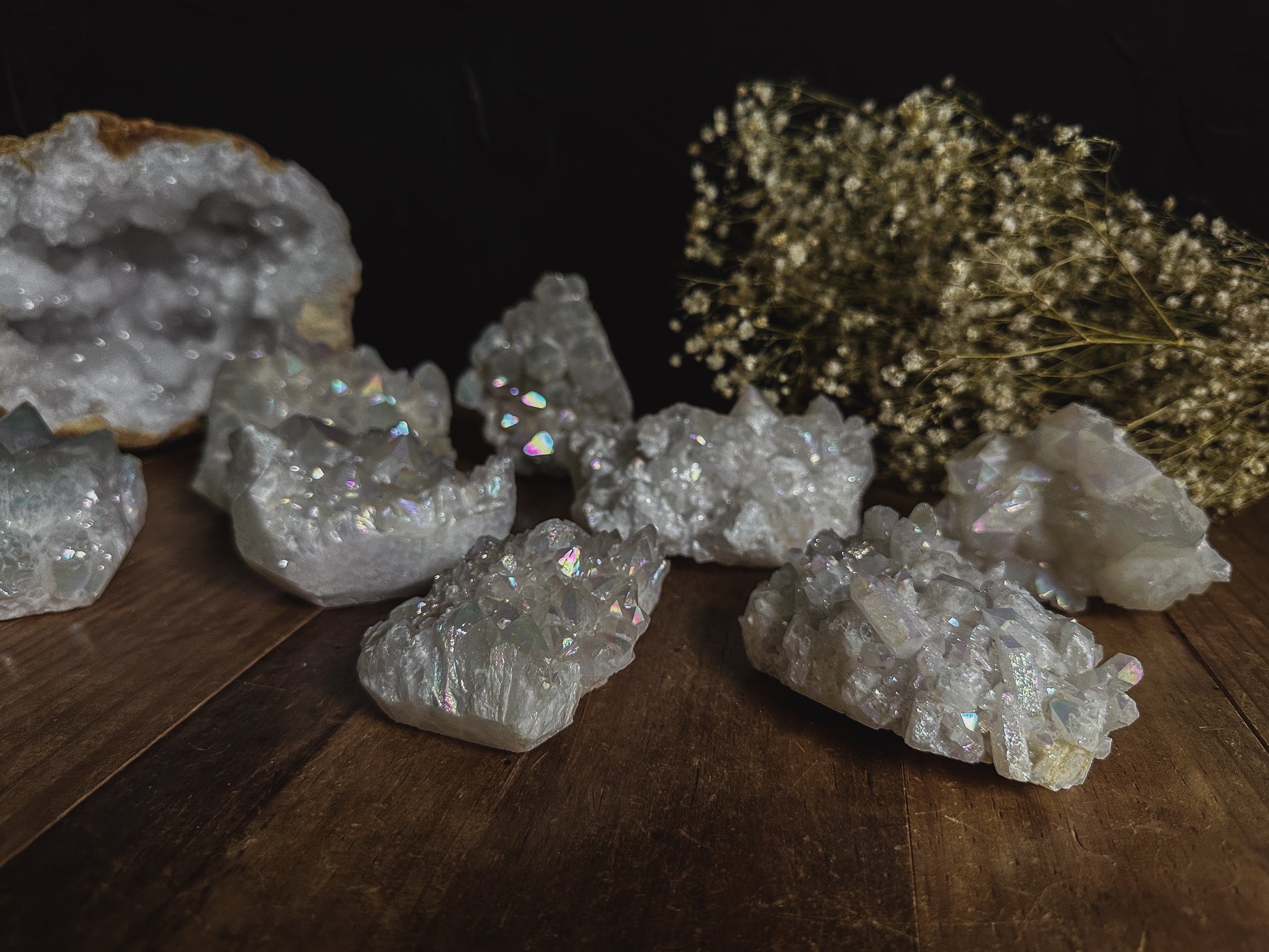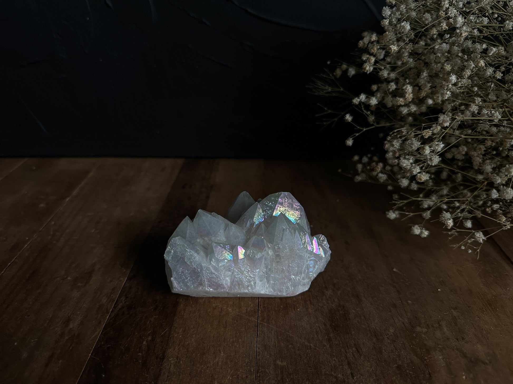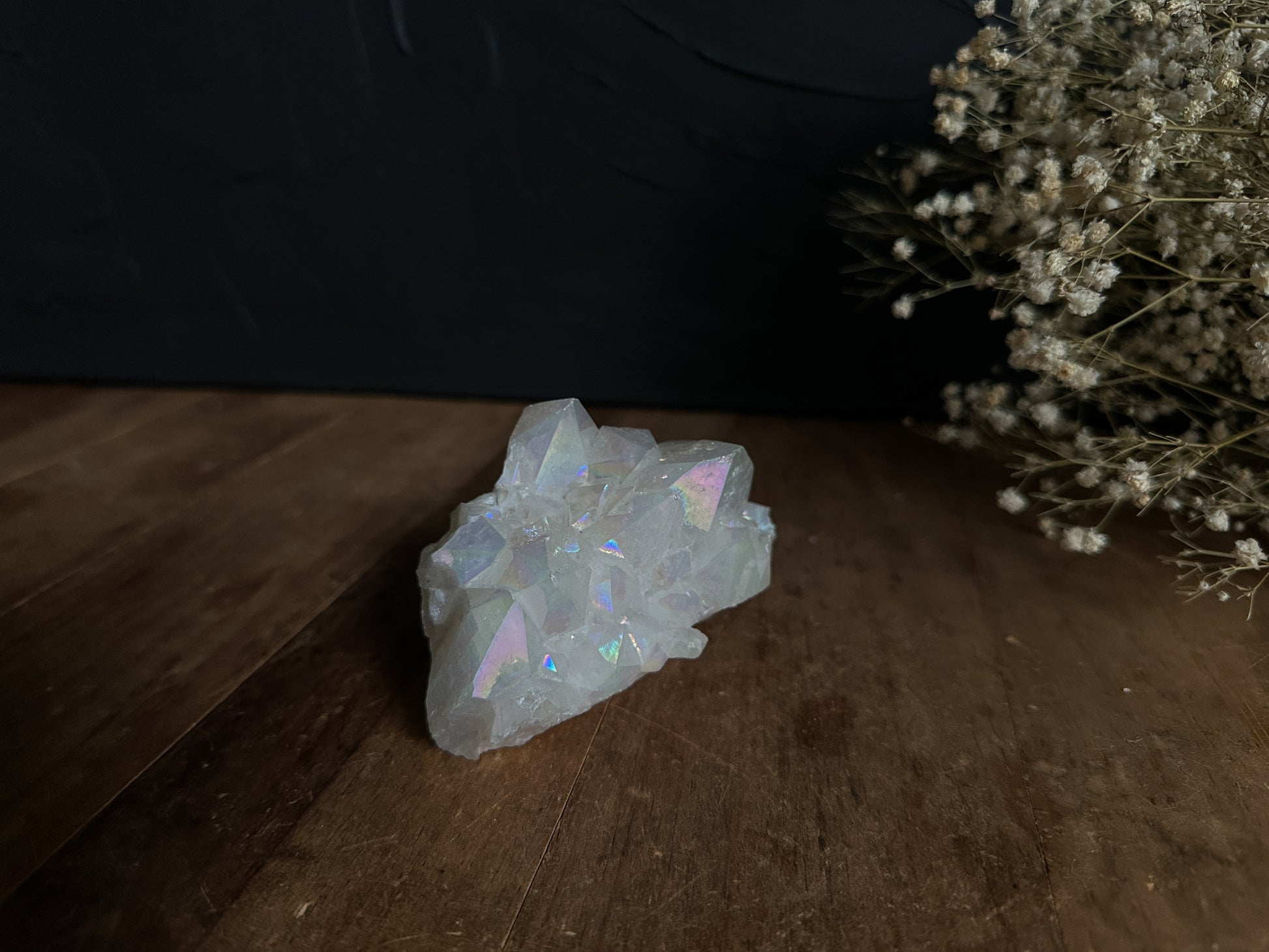 Affirmation: "I am connected to divine energies and in harmonious balance. Angel Aura Quartz's ethereal energy surrounds me, promoting intuition, peace, and a harmonious alignment with my higher self."
