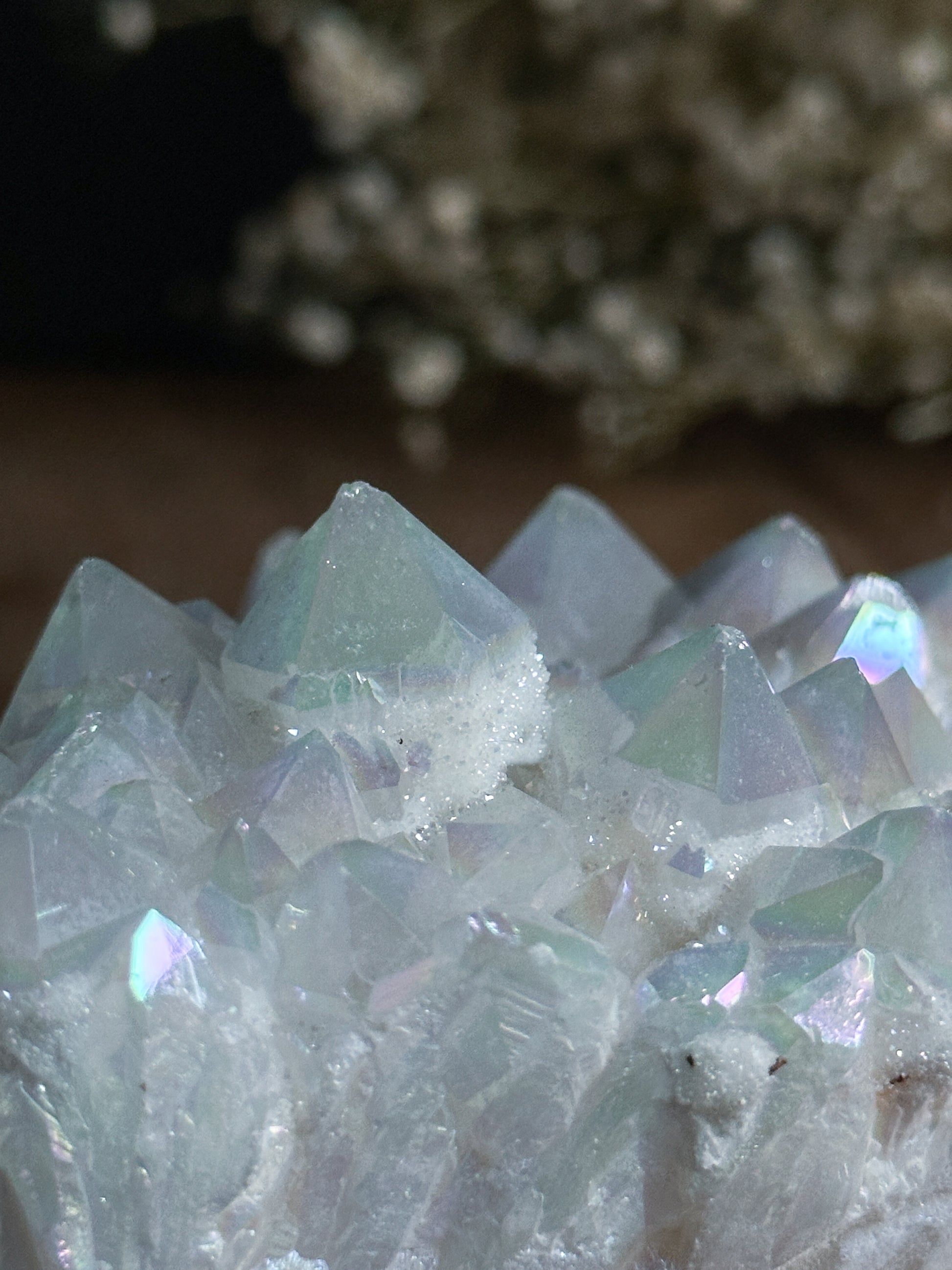 Photographing Angel Aura is difficult to capture just how incredible the iridescent pastel colours are. Please refer to the video to see a glimpse of this piece's beauty !