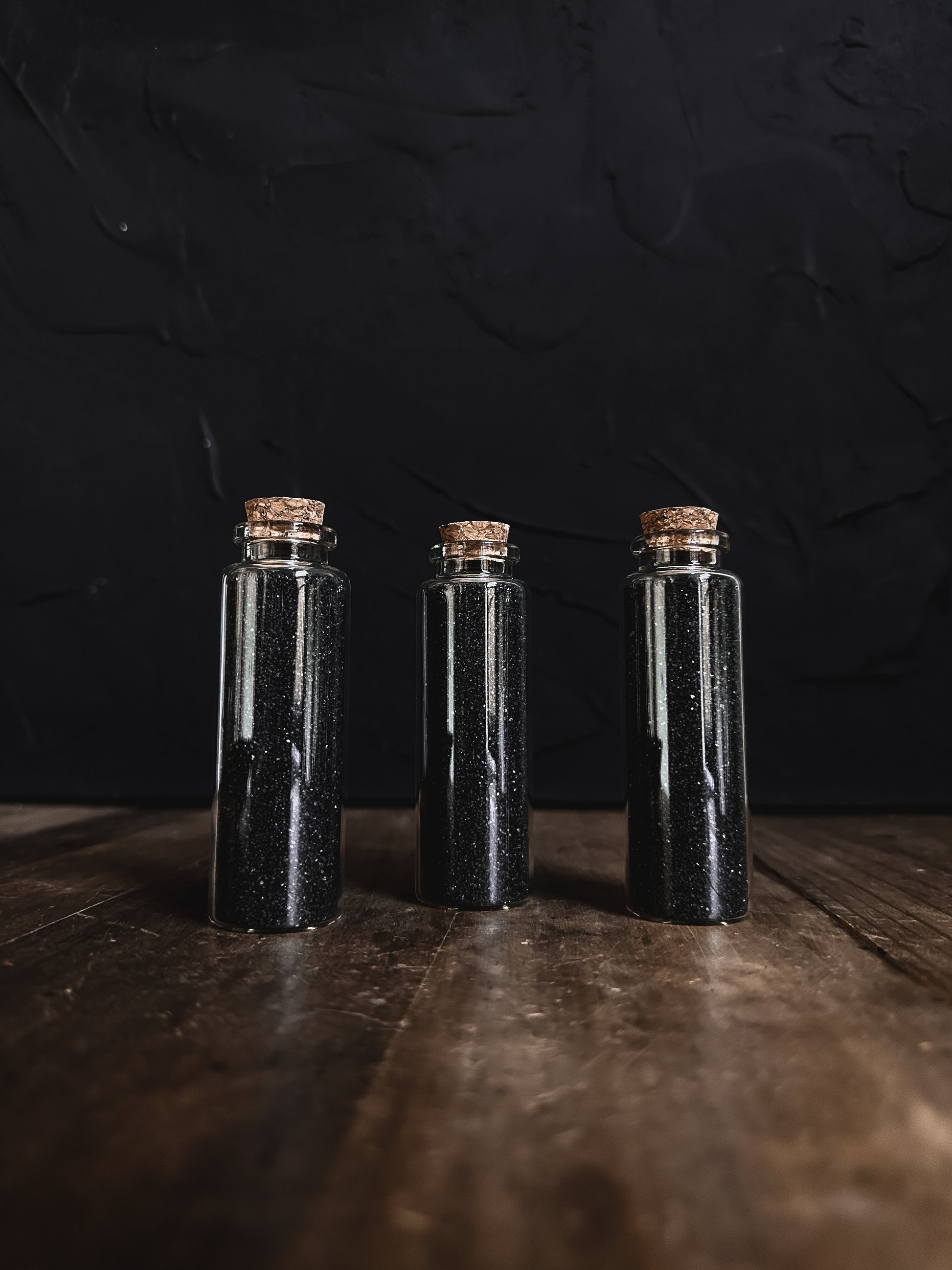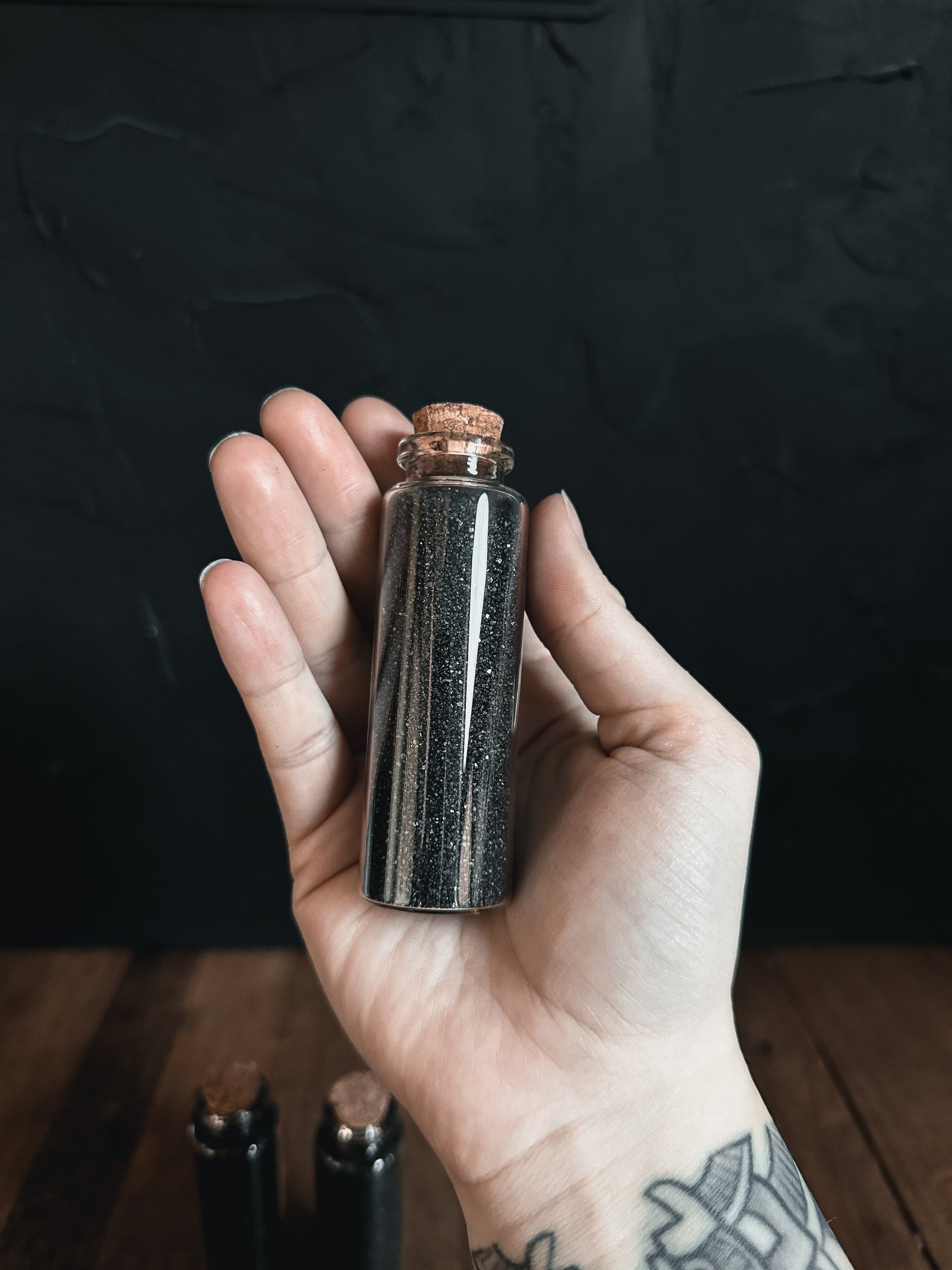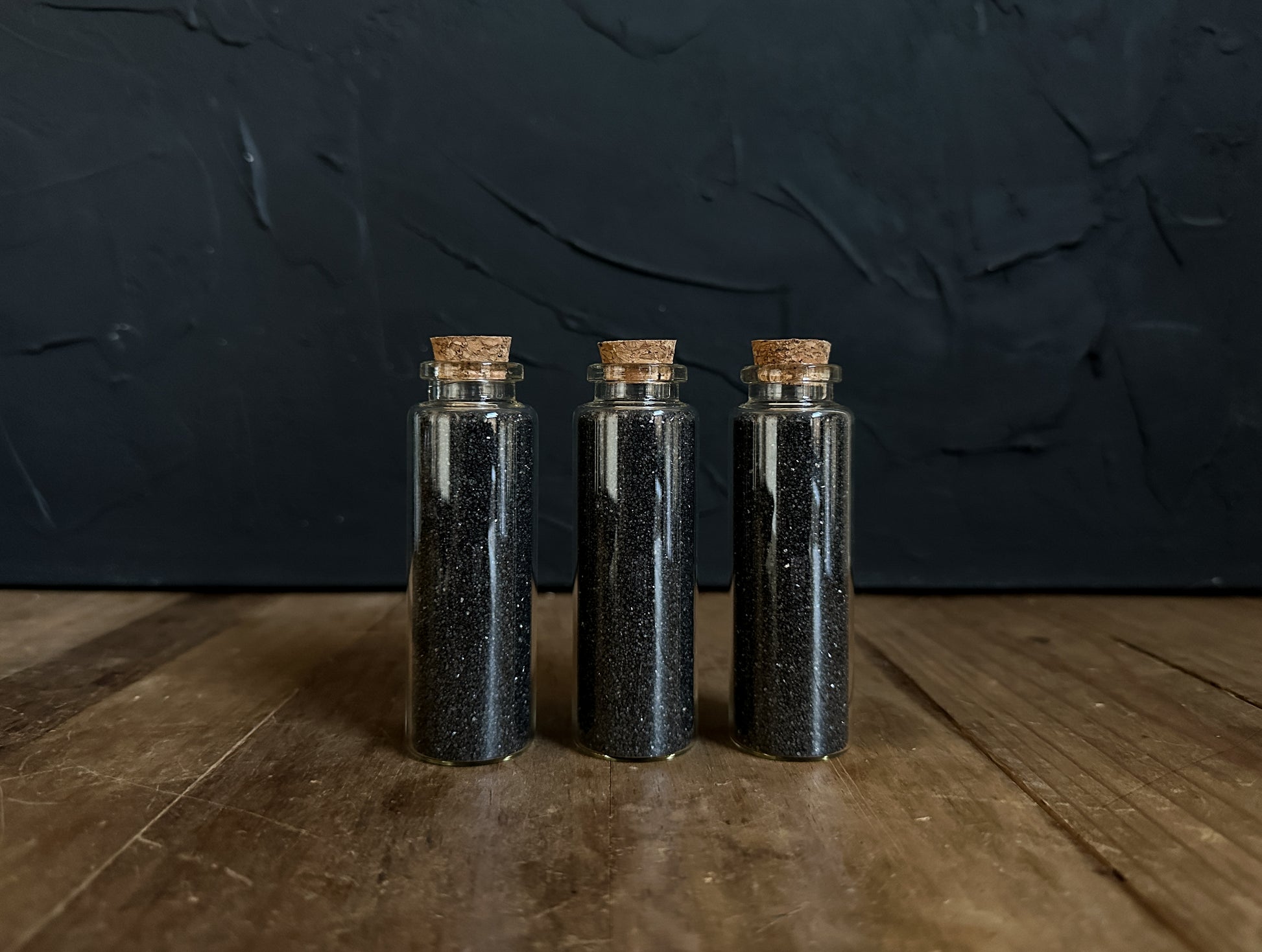 Our captivating bottled Black Sand, serves as a perfect addition to enhance your altar or sacred space.