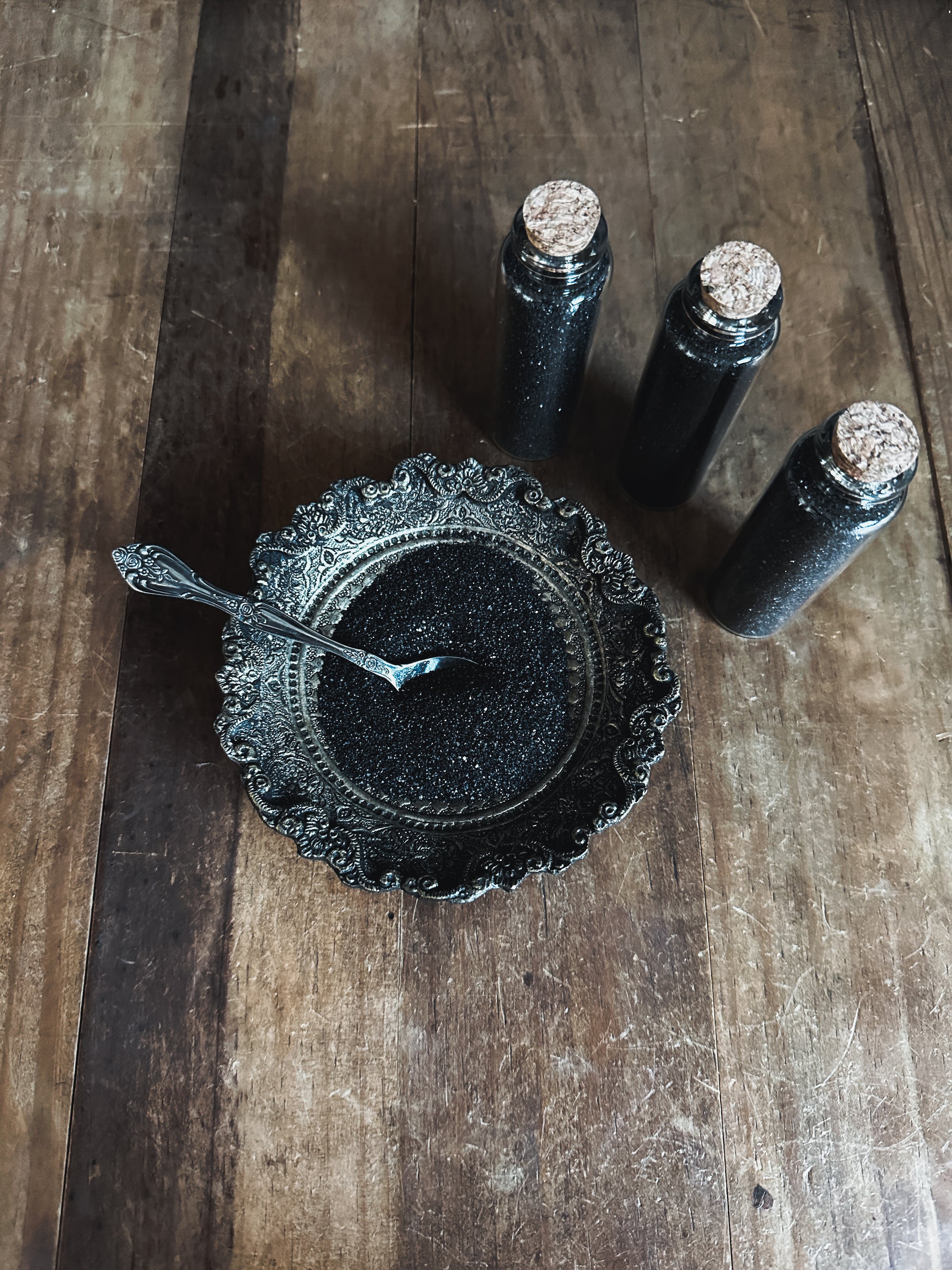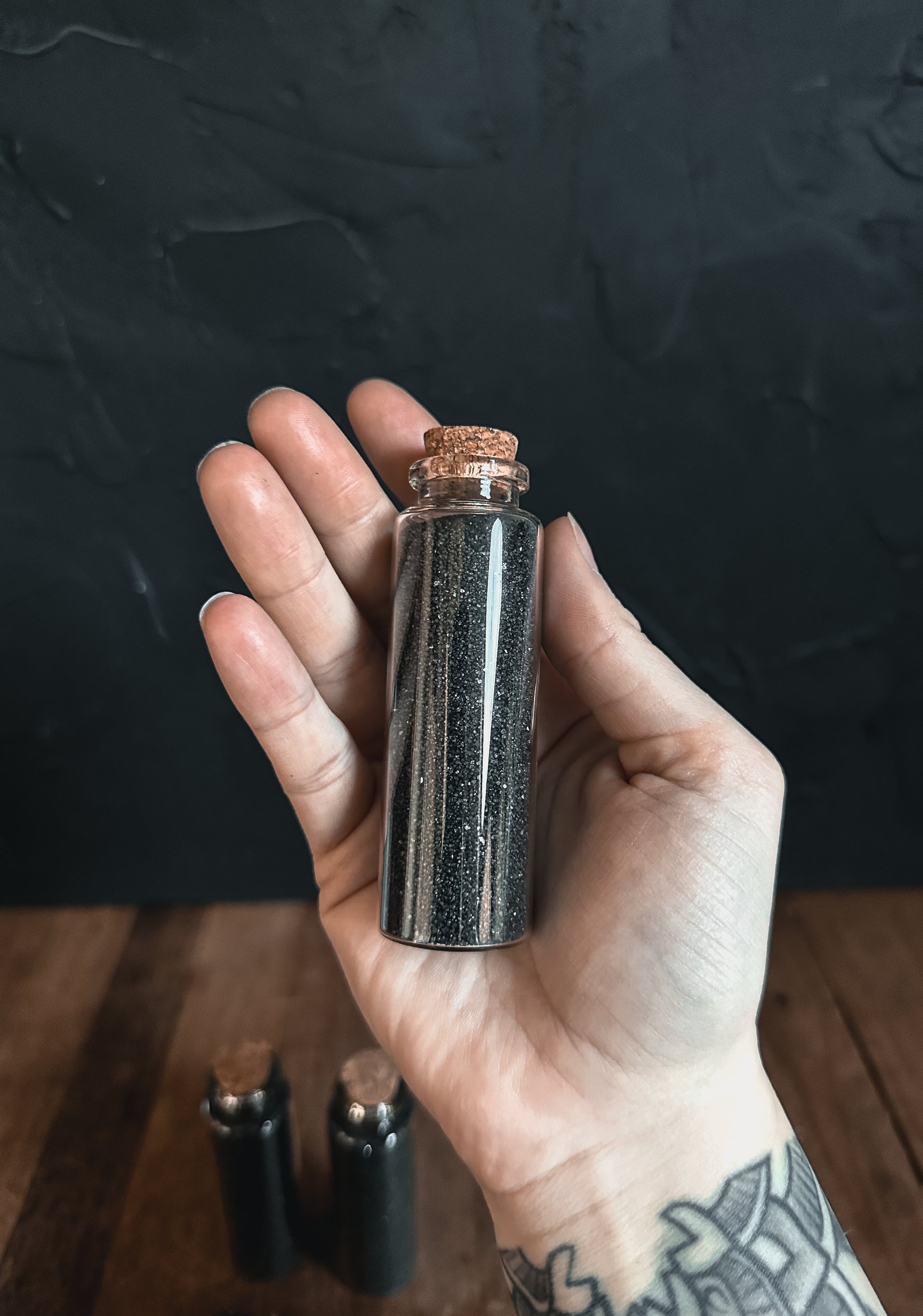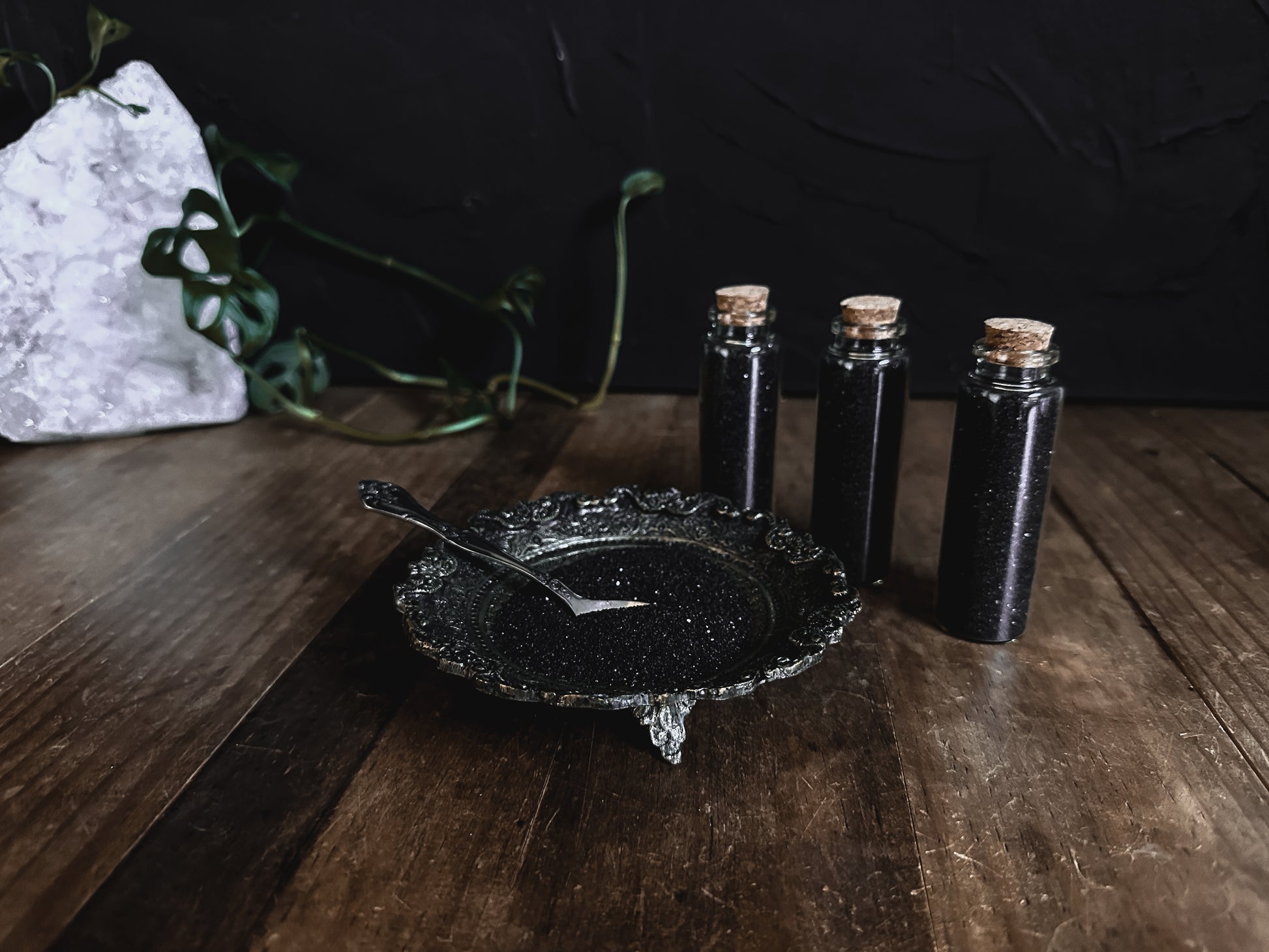 Our captivating bottled Black Sand, serves as a perfect addition to enhance your altar or sacred space.