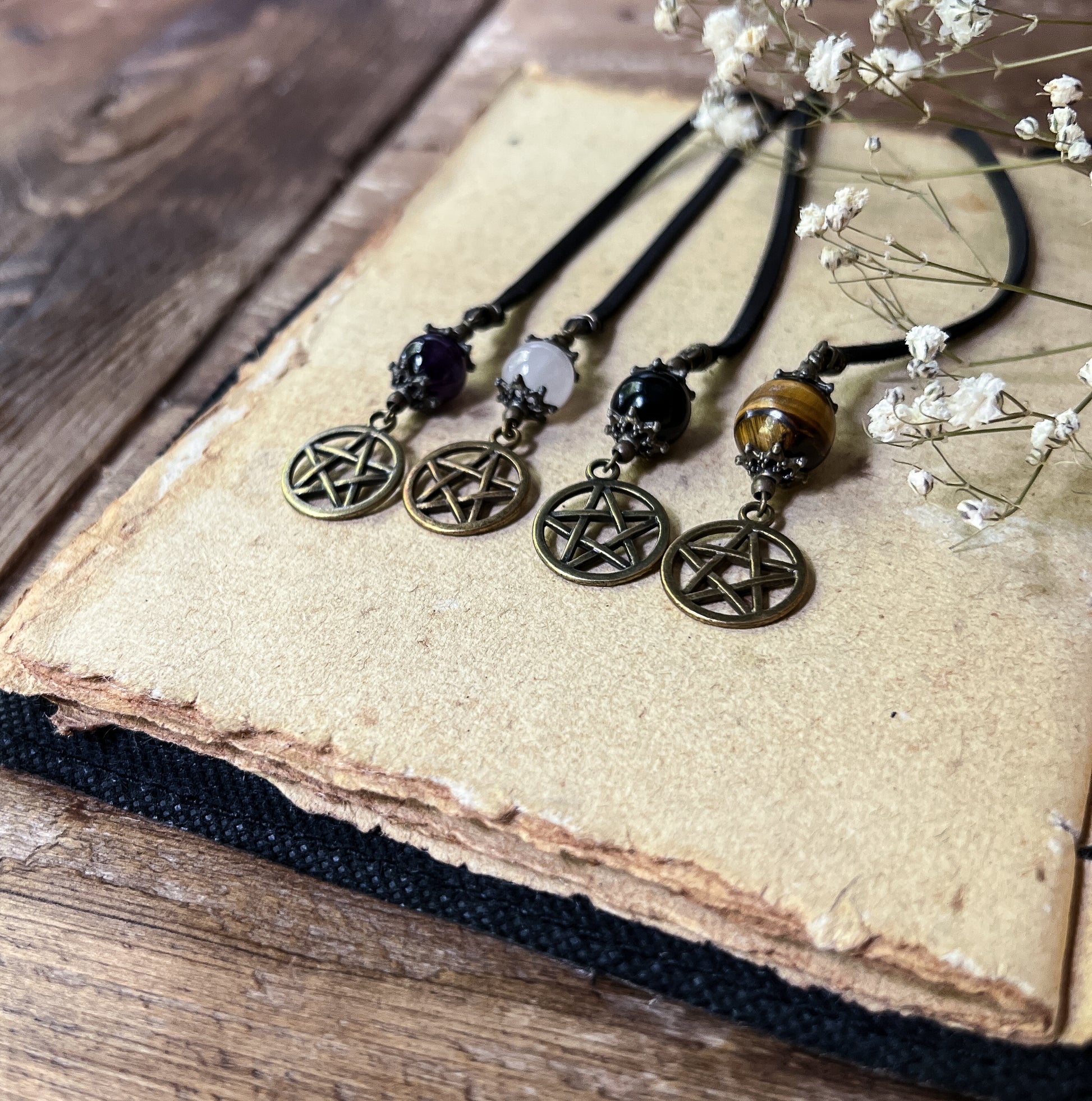 We created these Crystal Pentacle Bookmarks with the idea of having a magical talisman with you always.