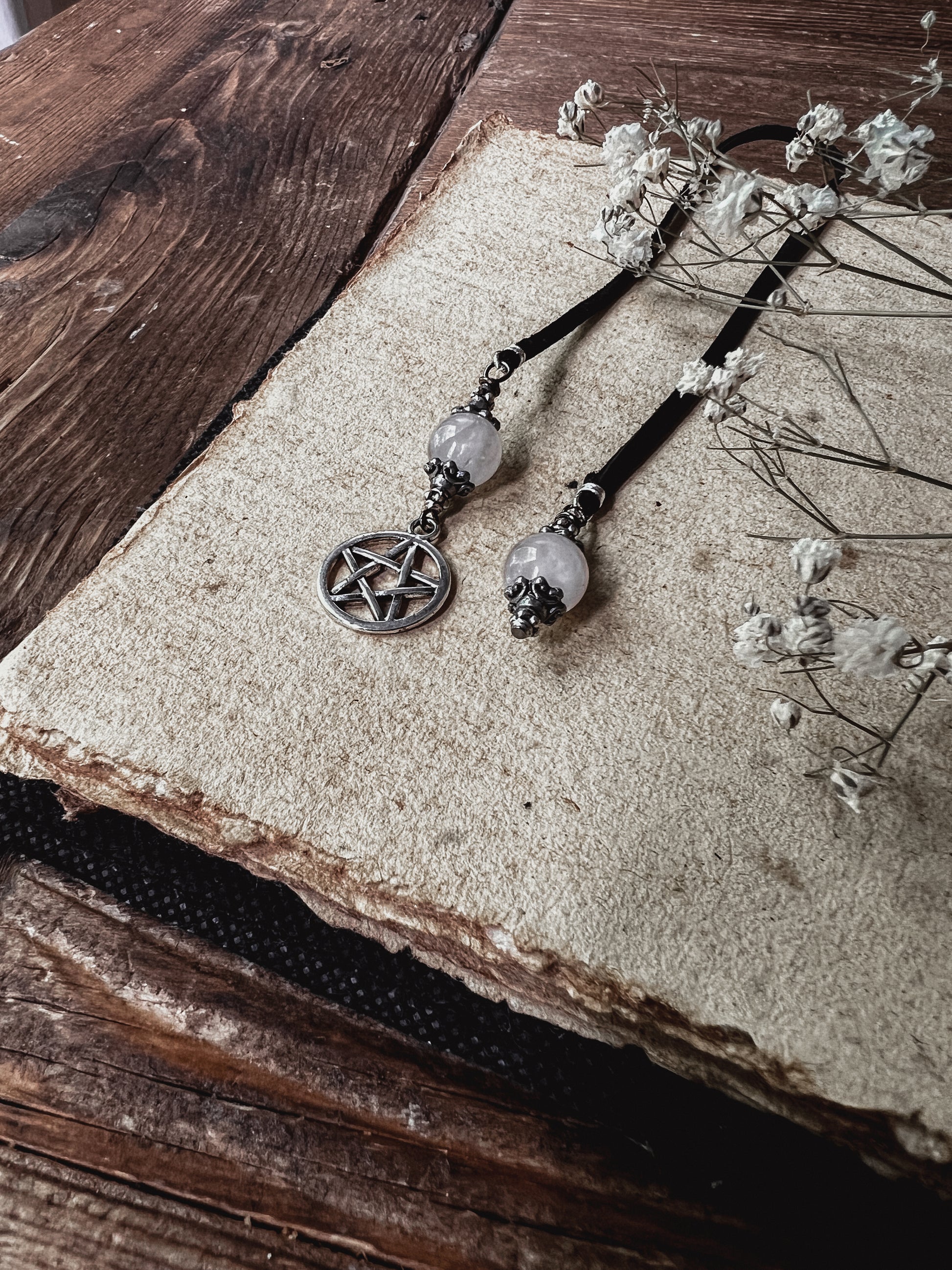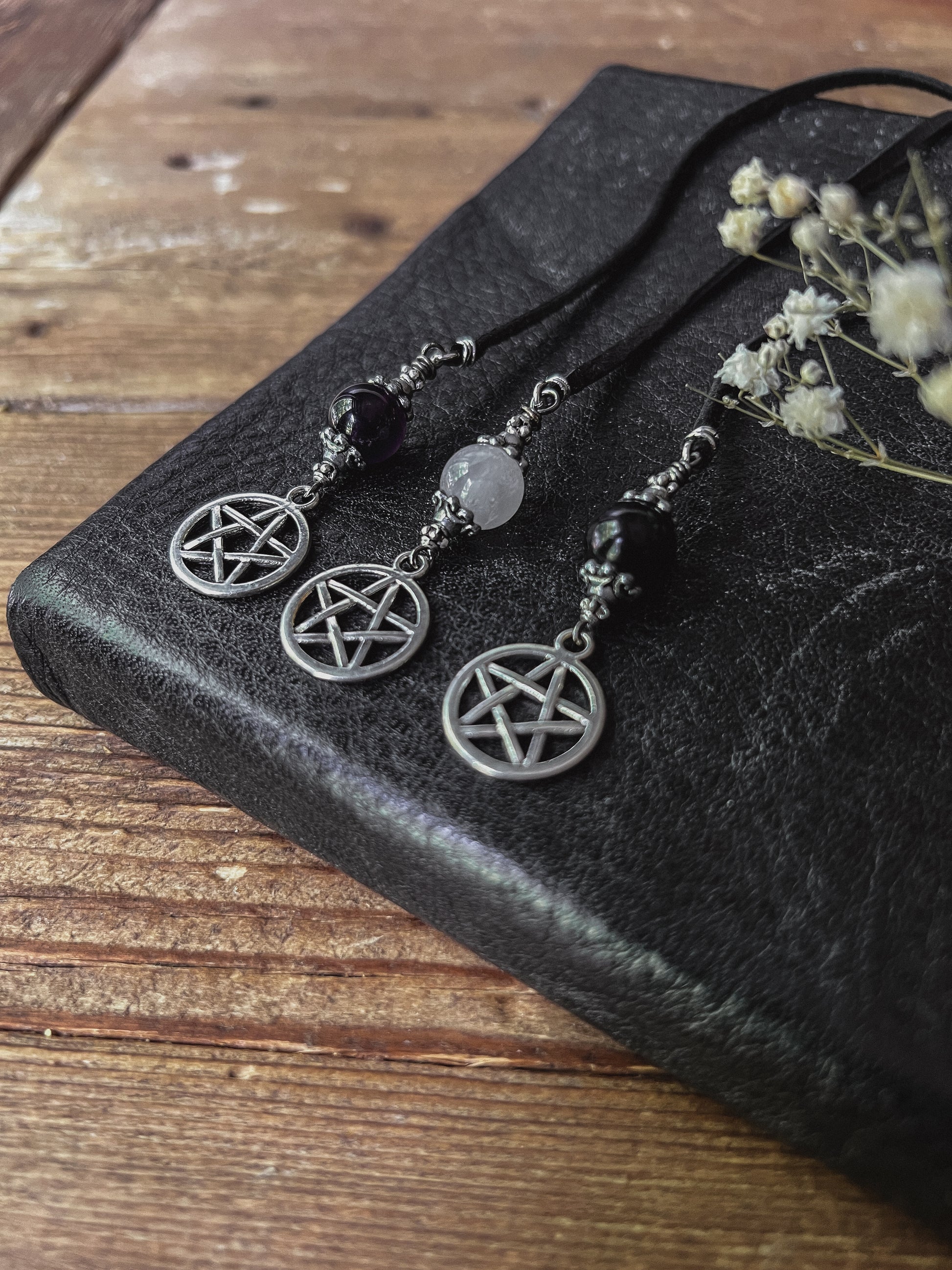We created these Crystal Pentacle Bookmarks with the idea of having a magical talisman with you always.