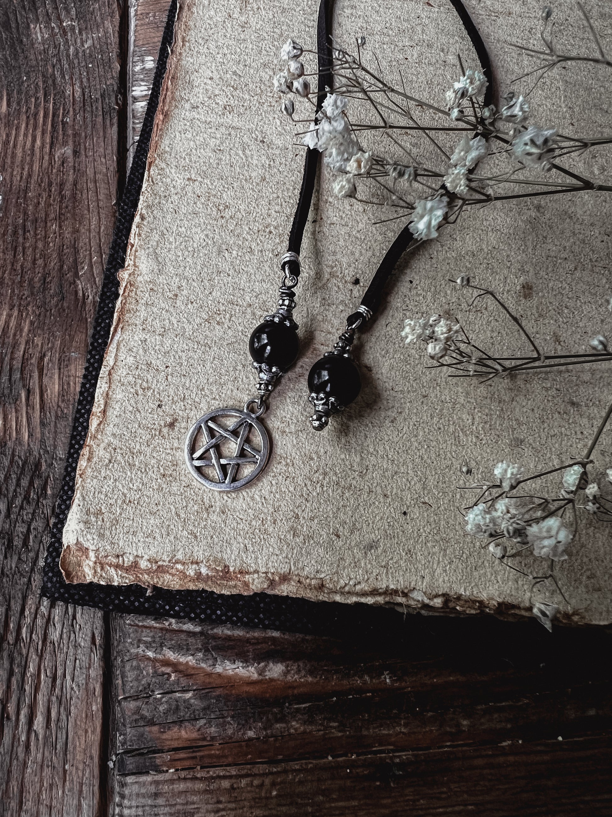 We adorned the faux leather strap with 2 gorgeous Crystal Spheres on either side and one Silver Plated Pentacle.