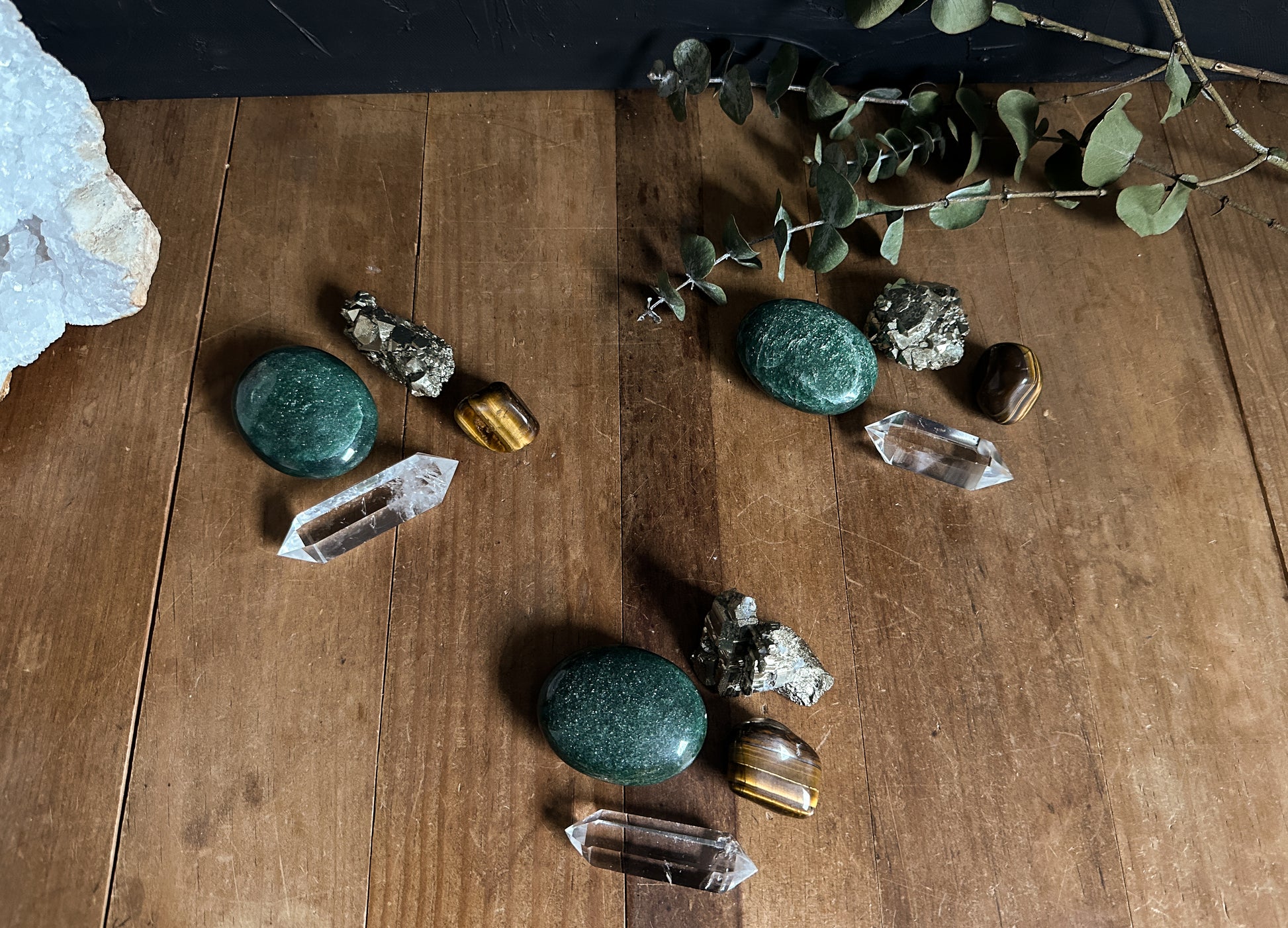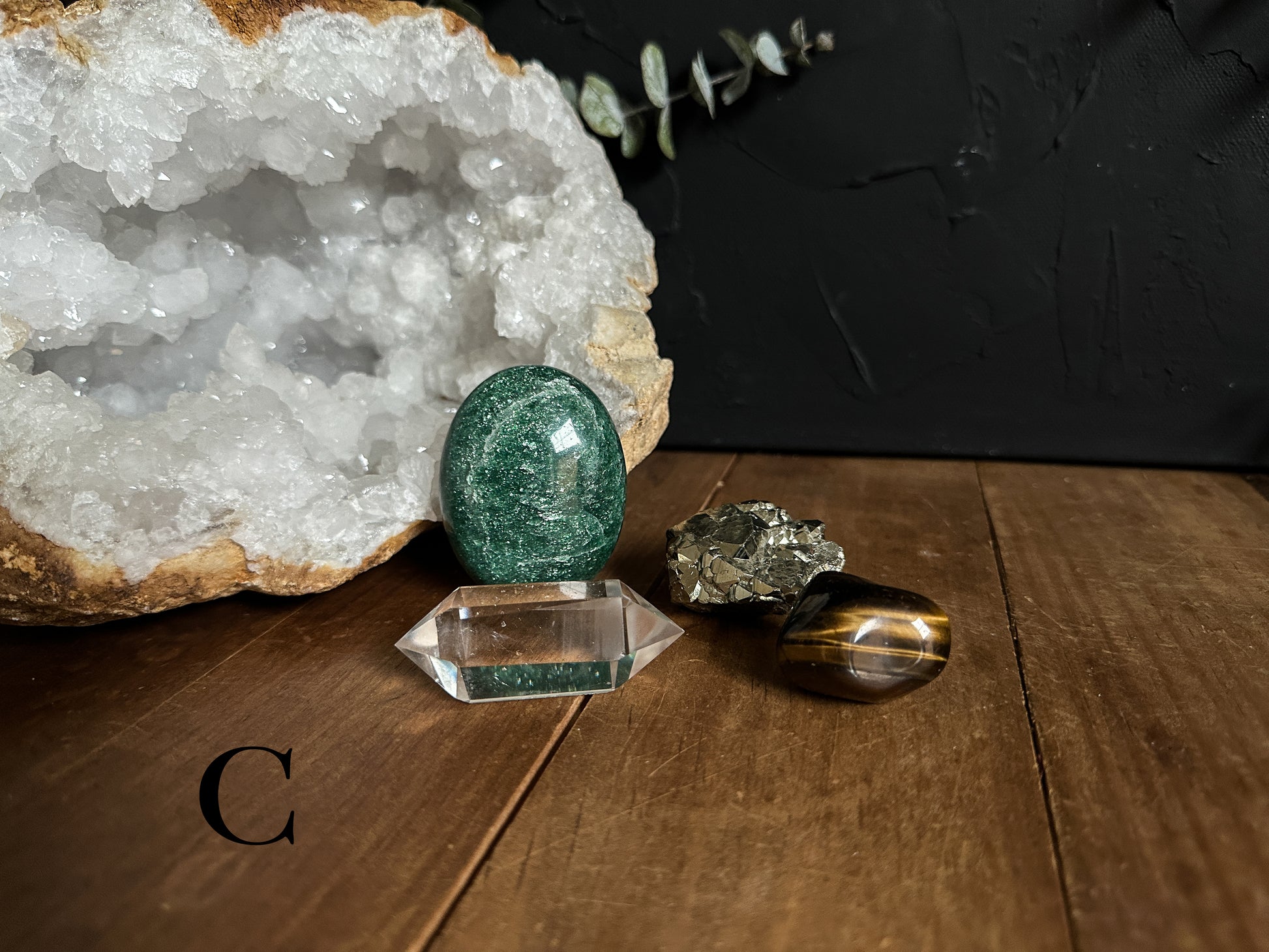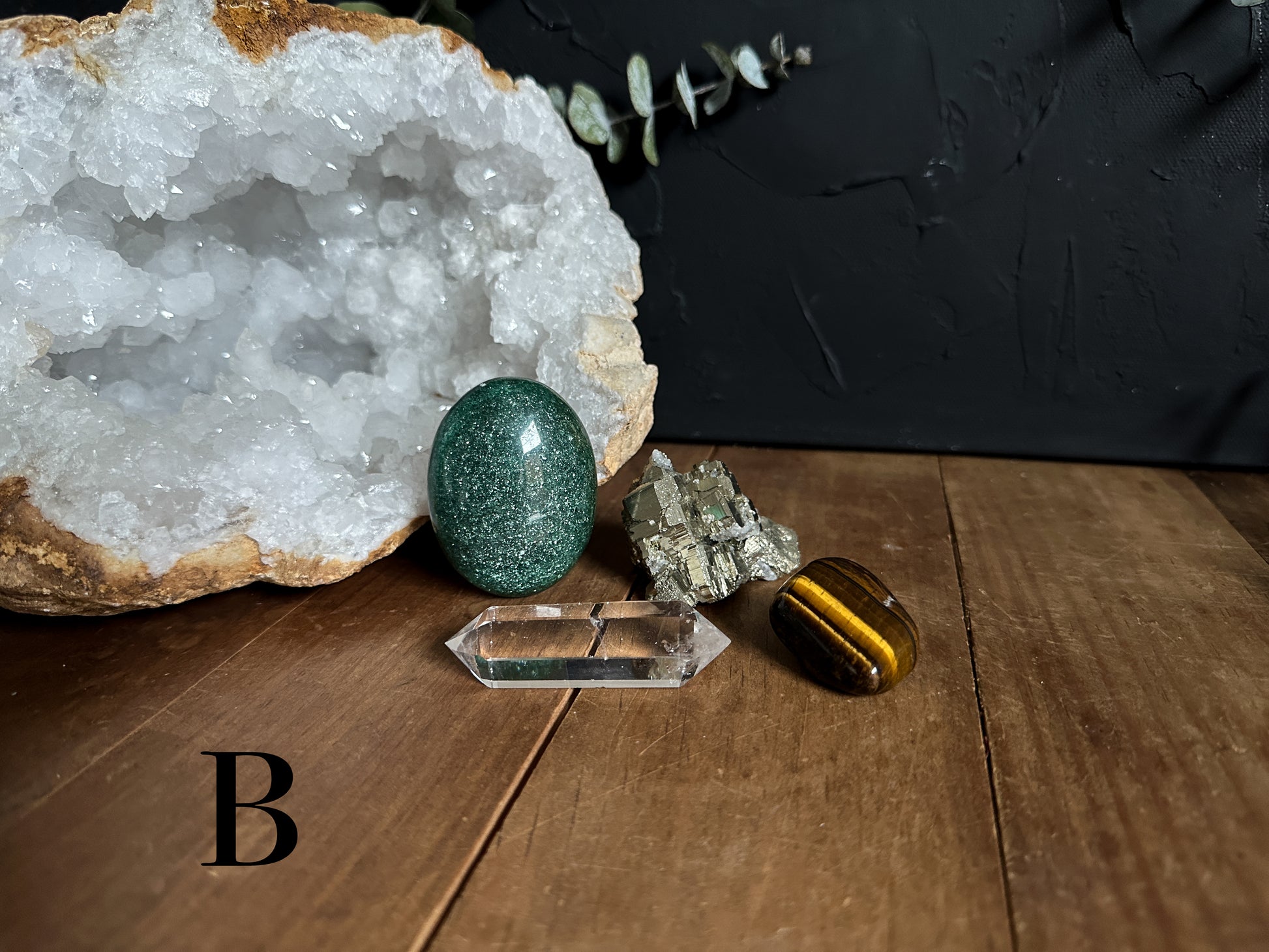 Unlock prosperity and abundance with our Crystal Kit for Wealth and Abundance, featuring Green Aventurine, Pyrite, Clear Quartz, and Tigers Eye. Green Aventurine attracts opportunities and luck in financial matters, while Pyrite ignites the fire of ambition and helps manifest your goals into reality. Clear Quartz amplifies intentions and clears blockages, while Tigers Eye fosters determination and success. Use this powerful combination to attract abundance, increase prosperity, and manifest your financial goals with confidence and clarity.