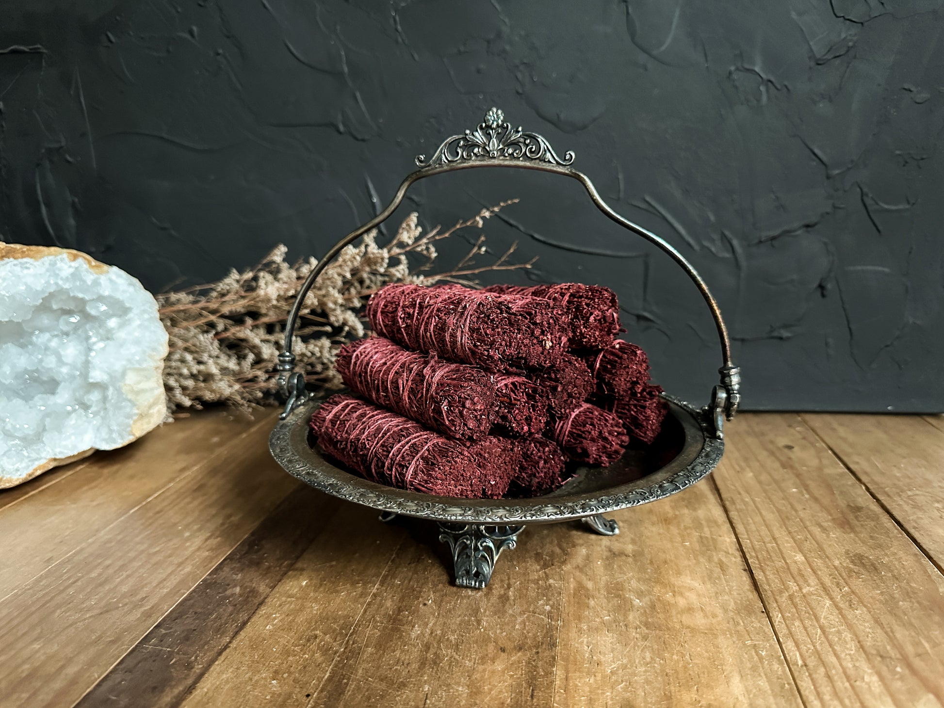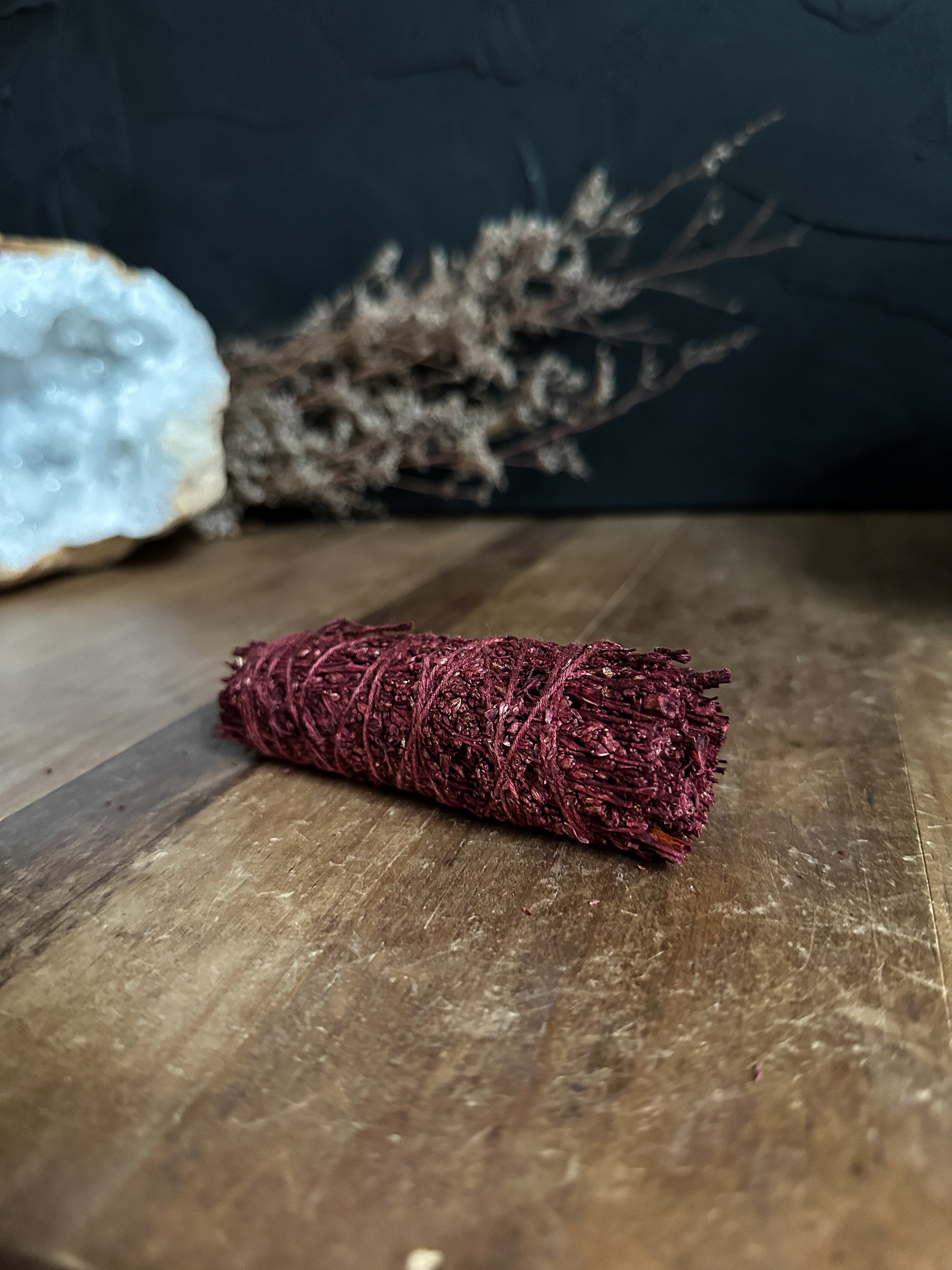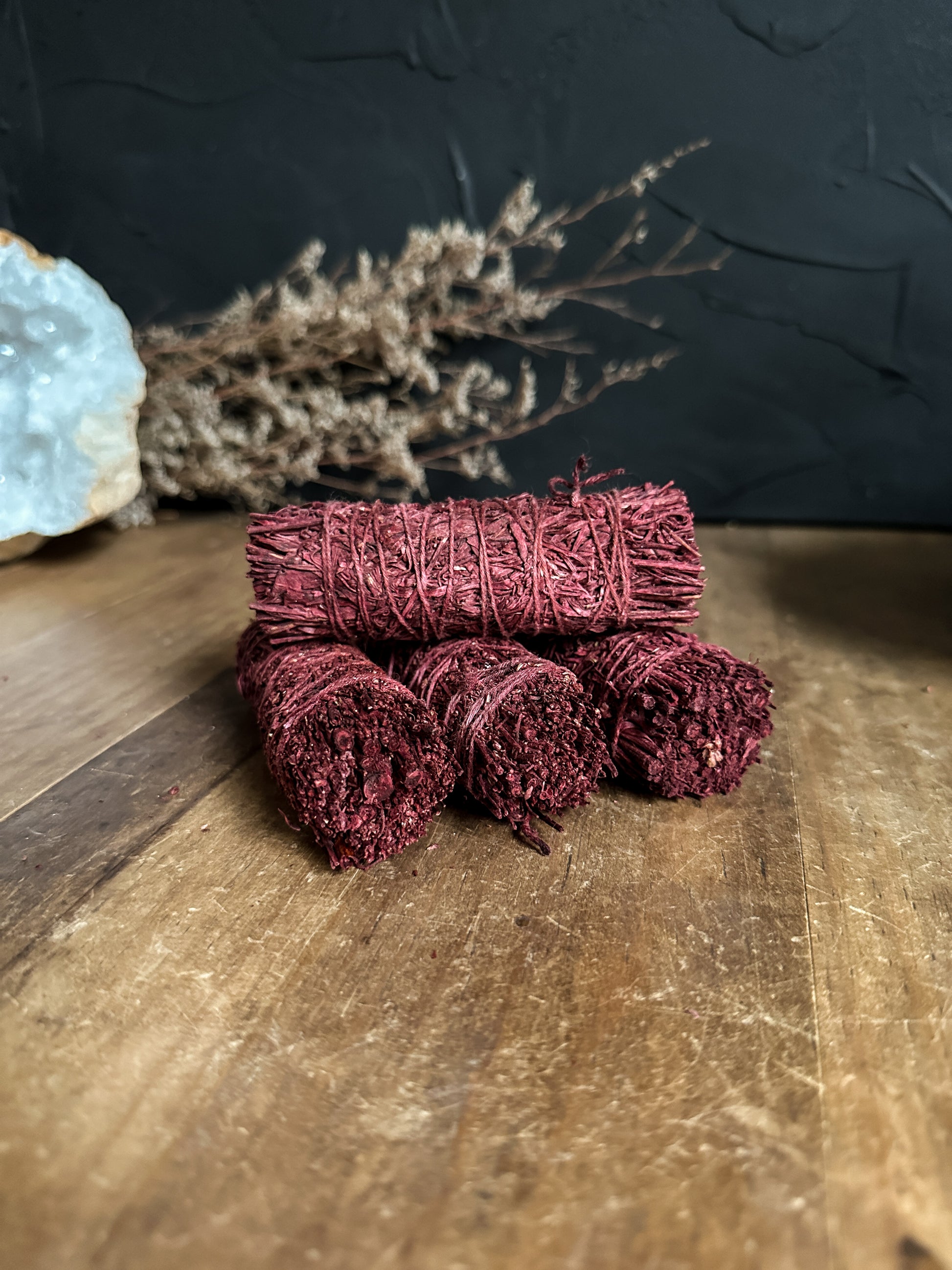 These Bundles have a blend of scents of Dragon's Blood Resin and Mountain Sage. This combination cultivates an aura of protection and love, wards off evil and negative influences and amplifies healing and manifestation. It purifies the air and brings mental and spiritual clarity.