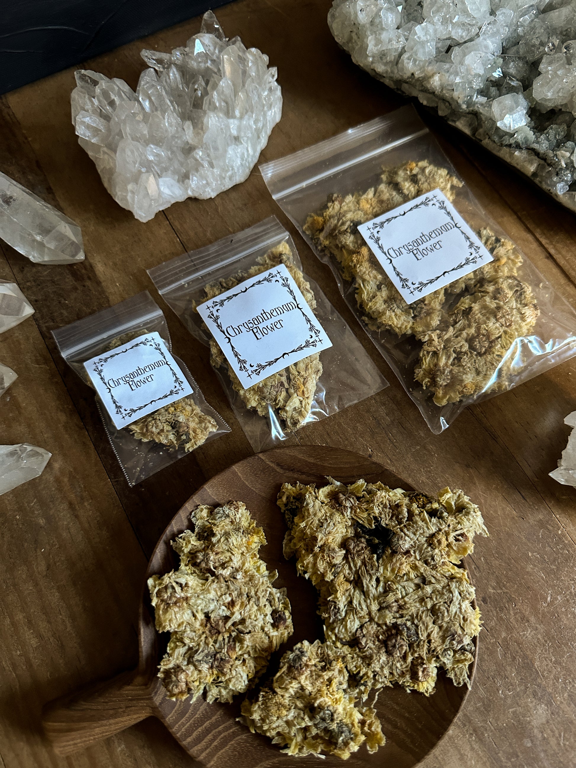 Chrysanthemum Flowers are associated with Rejuvenation, Vitality, Longevity, home protection, Clarity, Purification, Abundance, and Celebration.