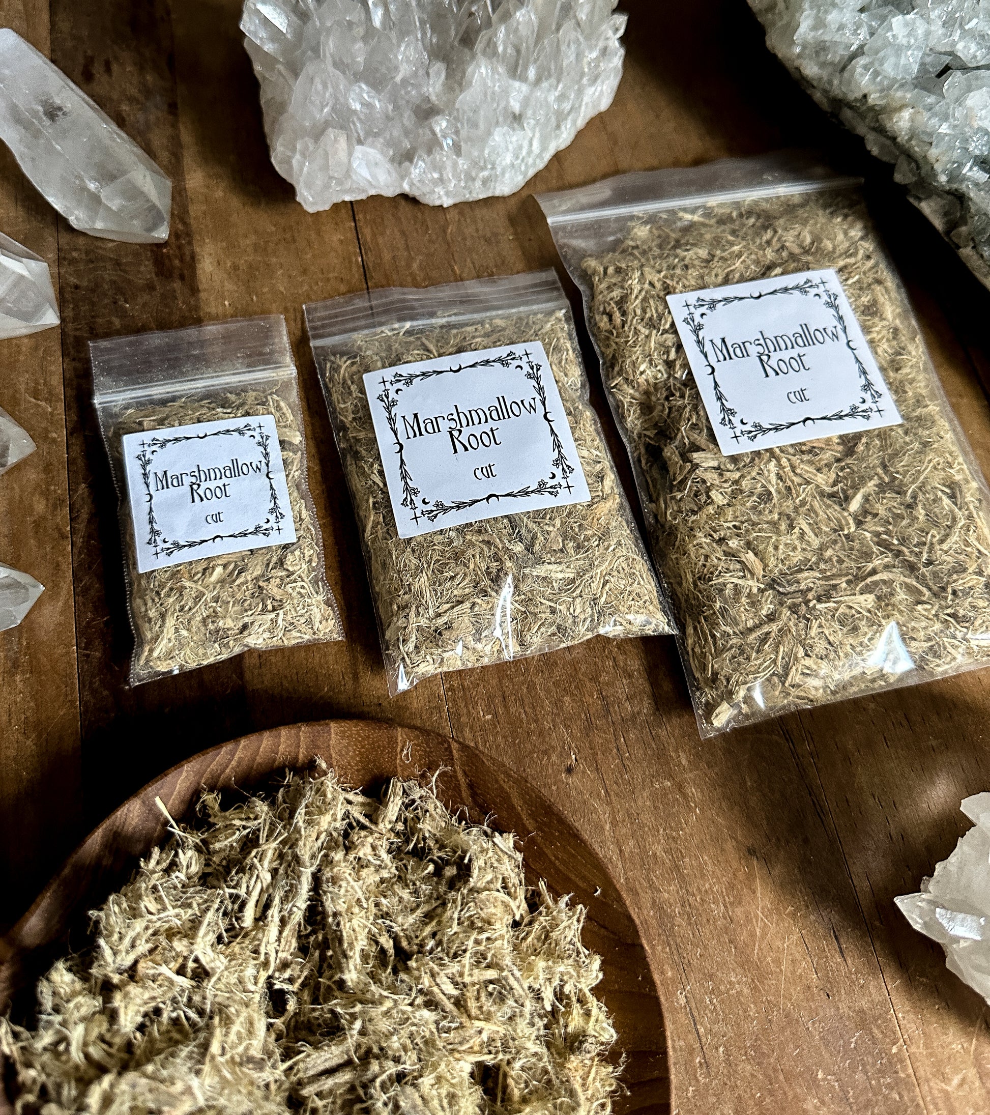 Marshmallow root is often linked with Soothing, Protection, Healing, Nurturing, Grounding, Cleansing, Comfort, and Growth.