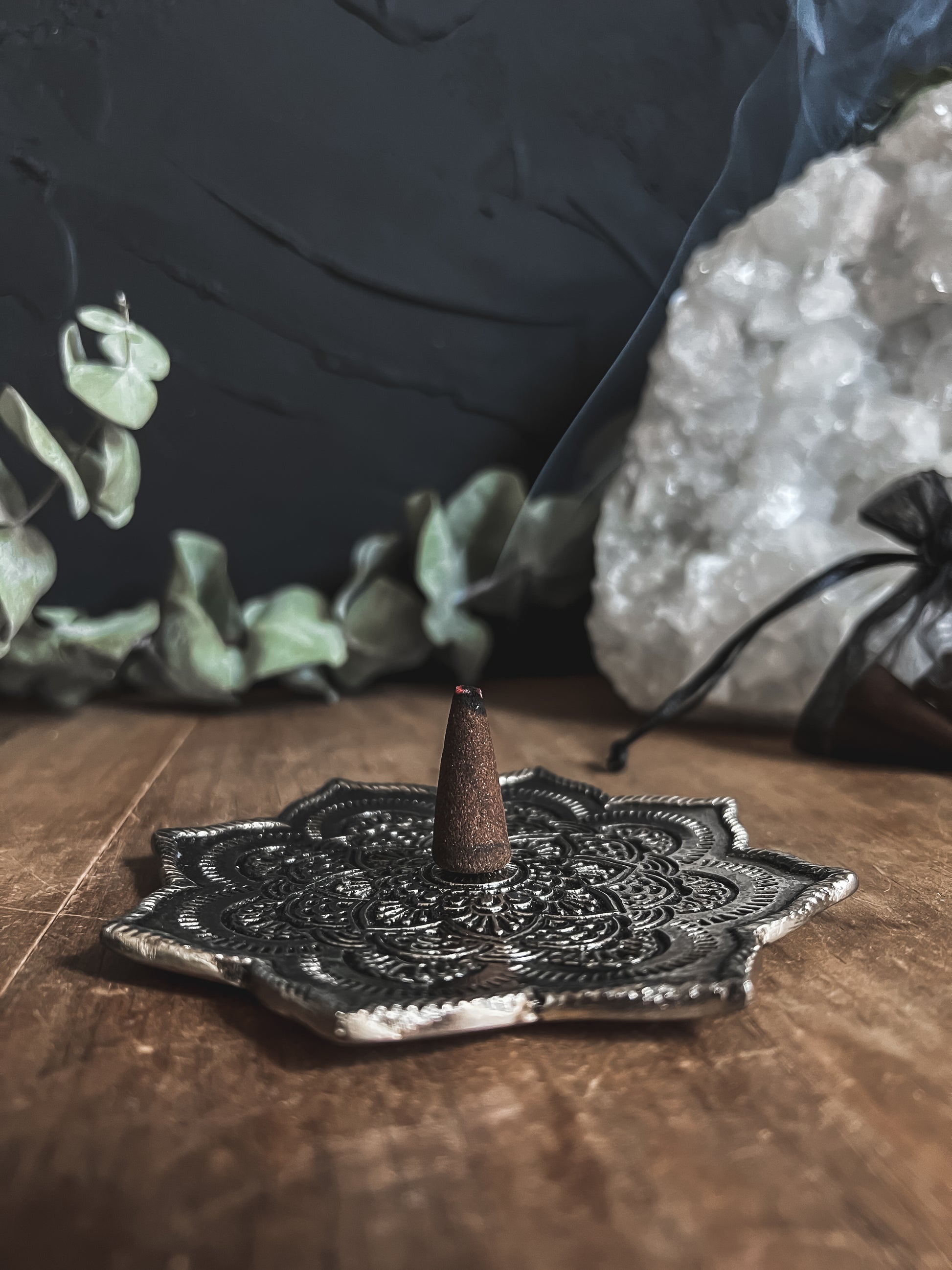 Place incense cone on an appropriate incense burner on a heat-resistant surface. Light tip of cone, allow flame to catch, then gently blow out.