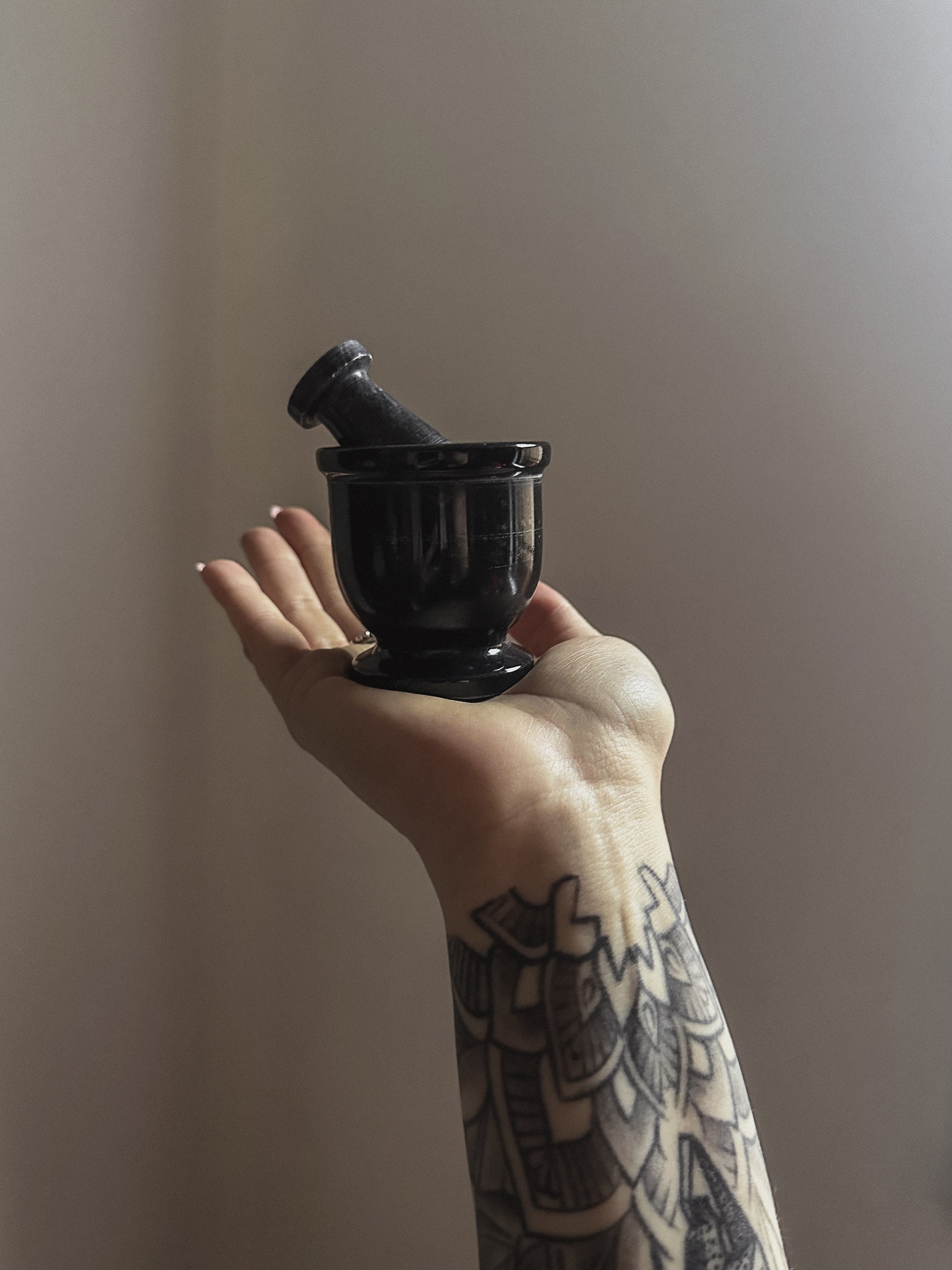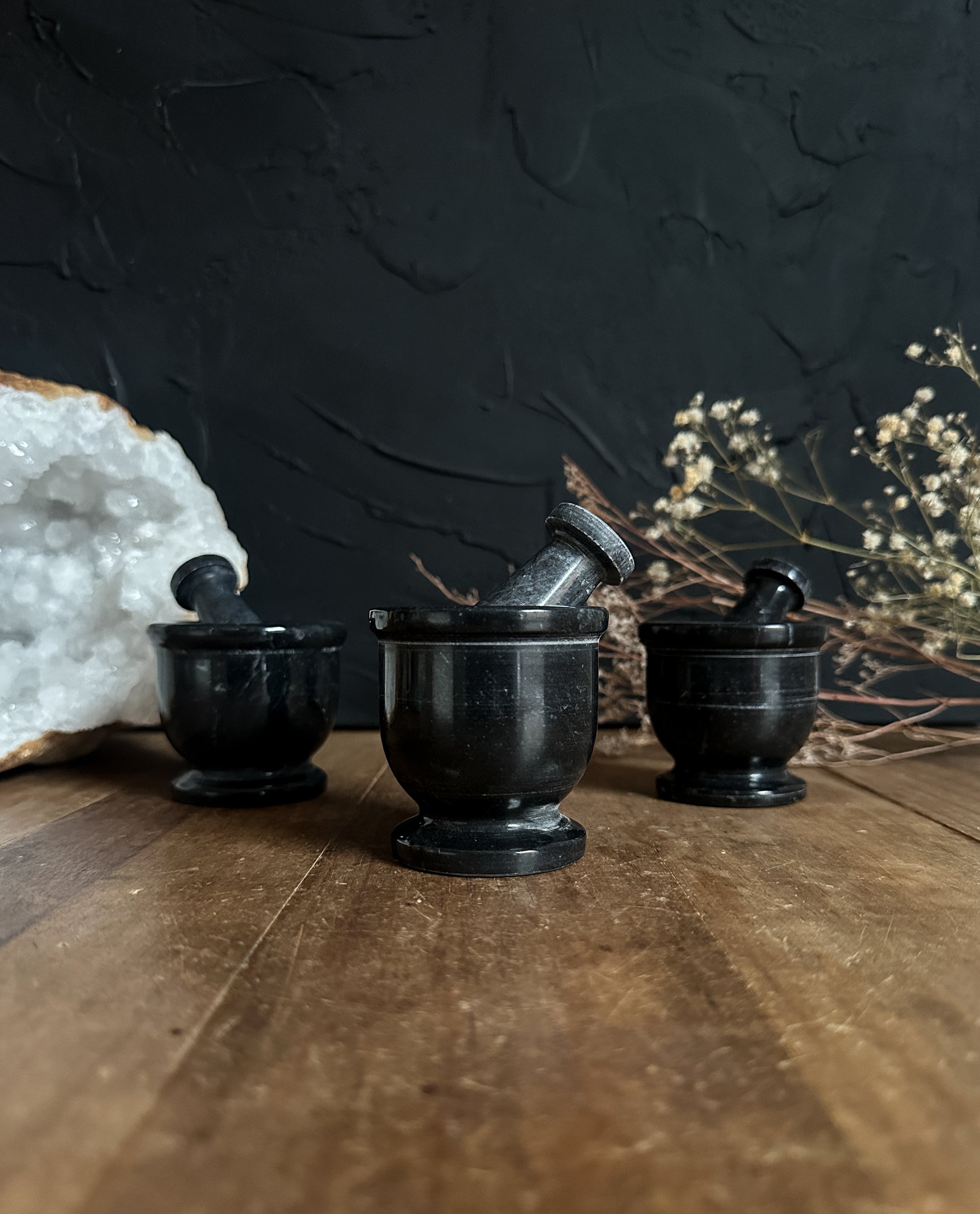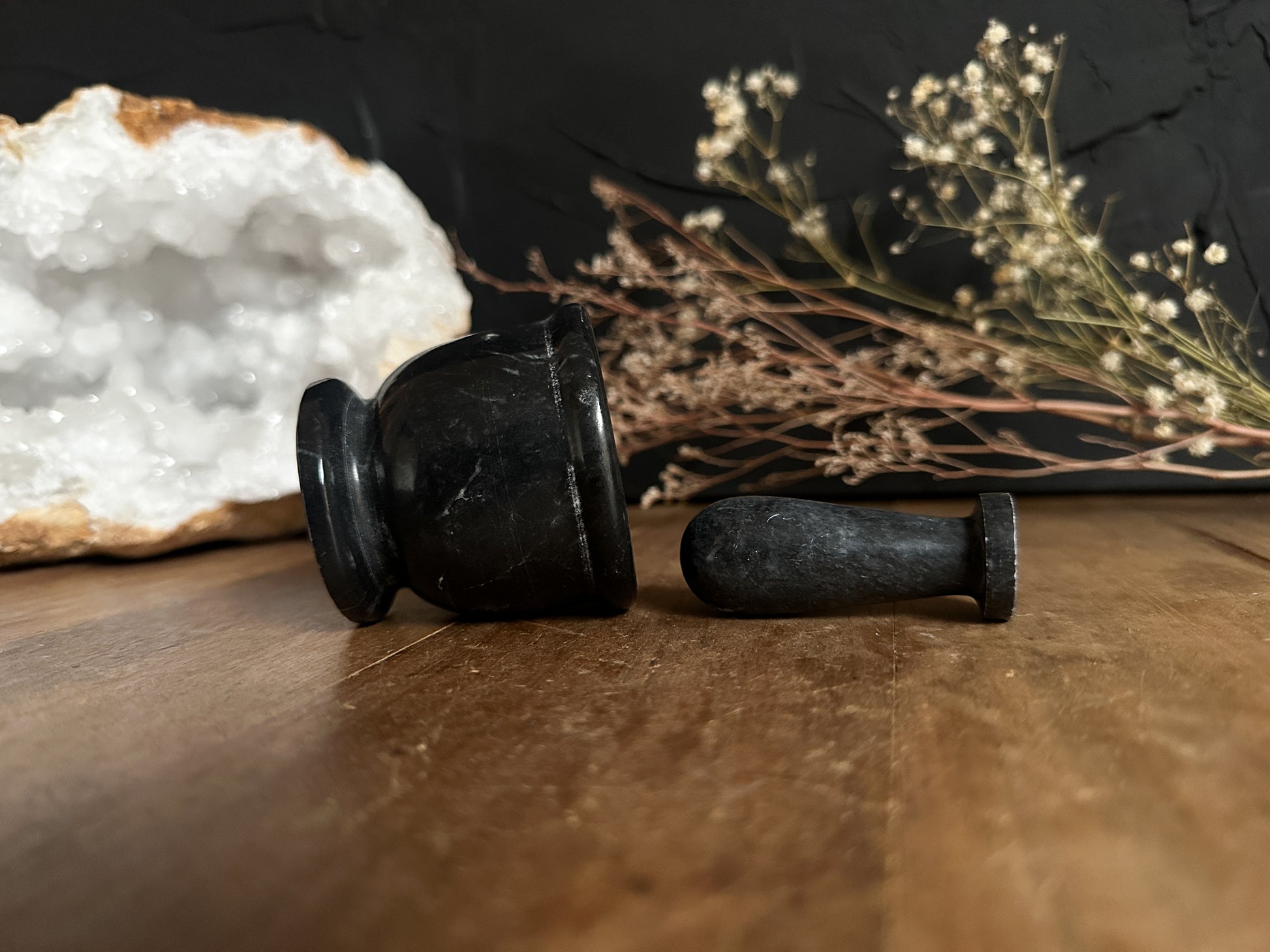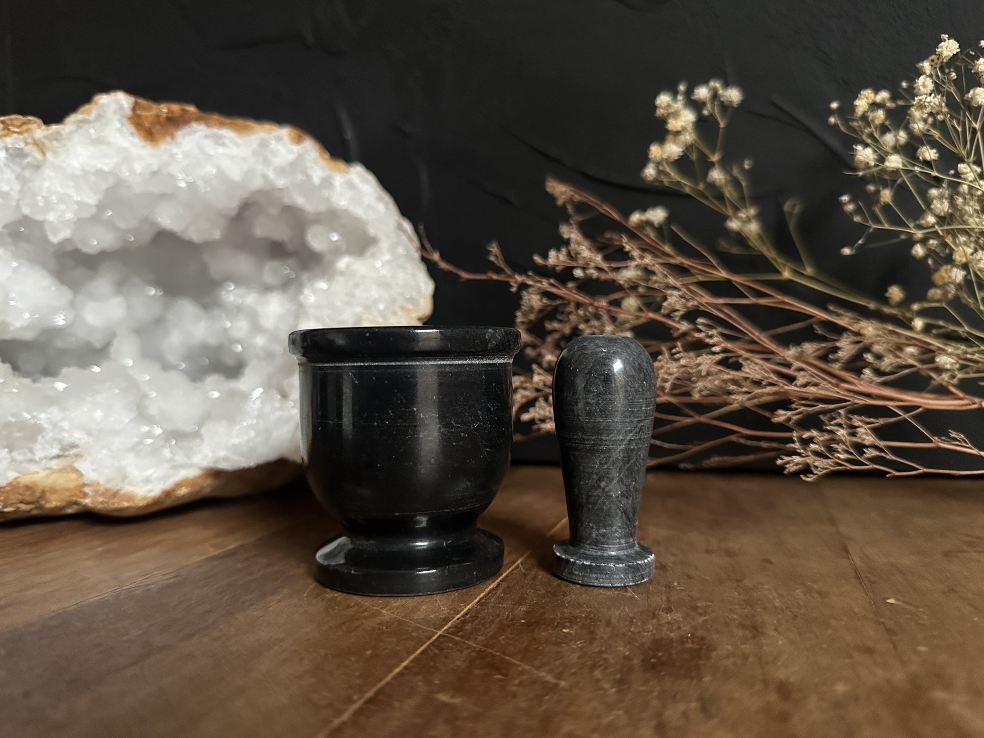 In the realm of witchcraft and magic, mortar and pestles are revered tools for potion-making, spell work, and herbal alchemy. The rhythmic motion of grinding ingredients fosters a deeper connection with the natural world and the energies contained within. With this Black Jade mortar and pestle, you amplify your magical intentions, grounding them into physical form with each twist and turn.