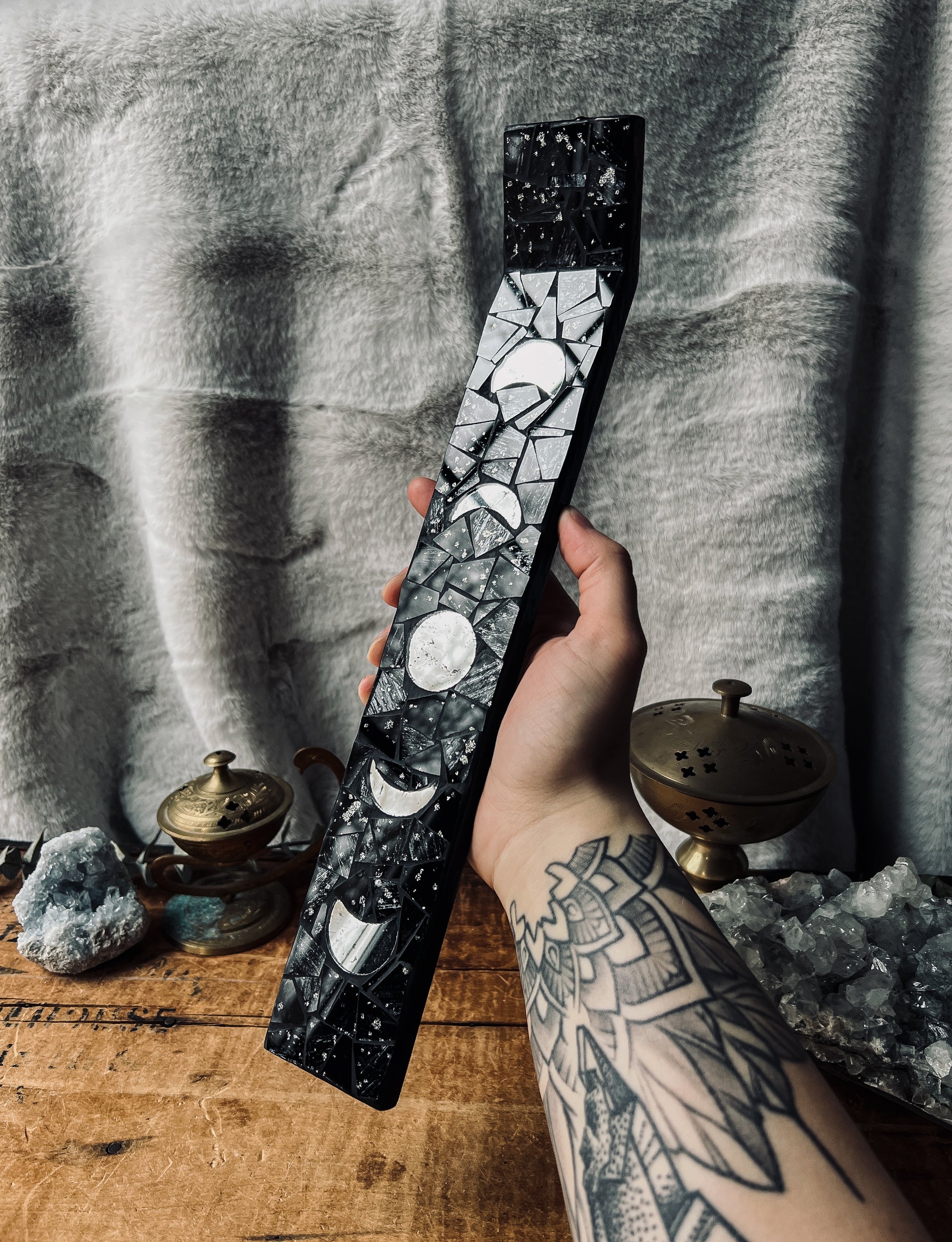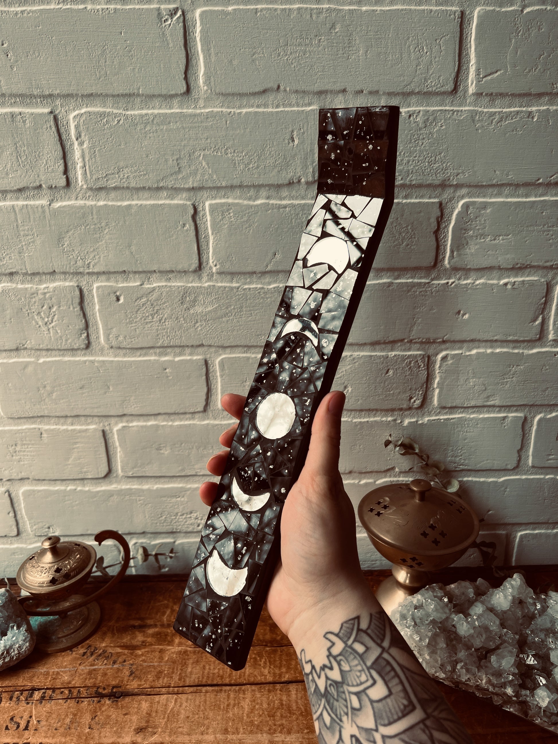 This Gorgeous Mosaic Moon Phase Incense Holder is 13 inches in length.