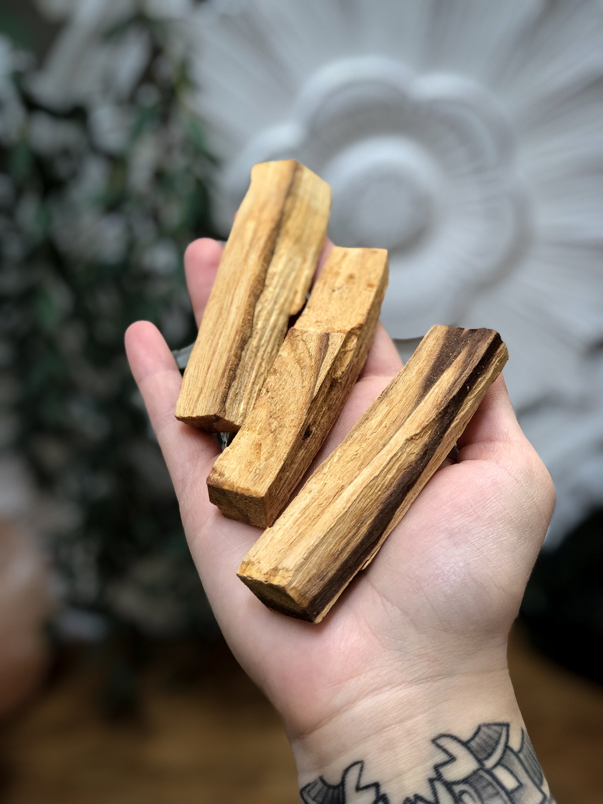 Palo Santo is a highly cherished type of wood that derives from the Palo Santo trees found in South America. Palo Santo is a wonderful tool to cleanse spaces/people/objects of negative energy. Palo Santo has many benefits to using it, just a few of the things it can relieve is; flu symptoms, stress, headaches, inflammation.