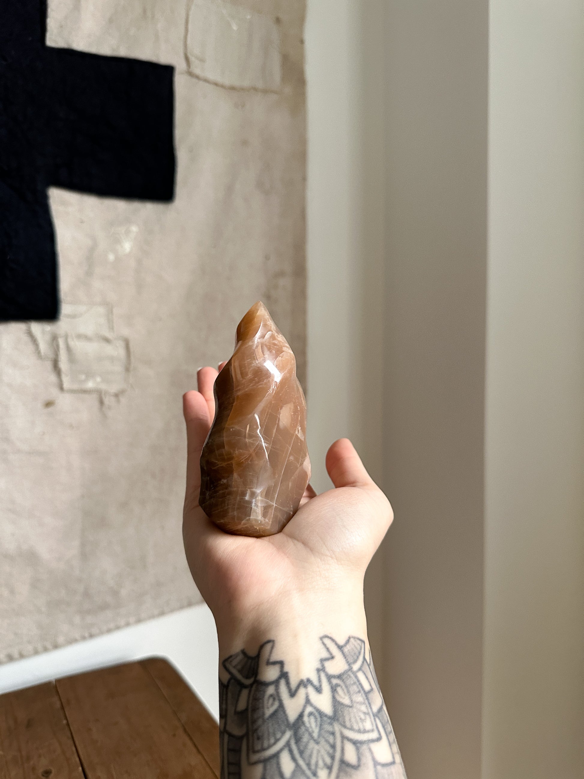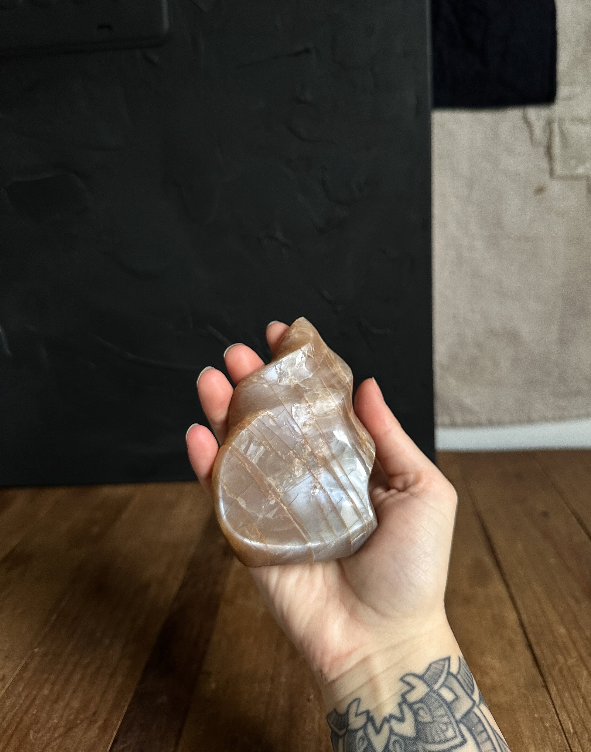Affirmation: "I embrace my emotions with wisdom and intuition. Peach Moonstone's nurturing energy surrounds me, promoting emotional balance, intuition, and a harmonious flow of energy within."