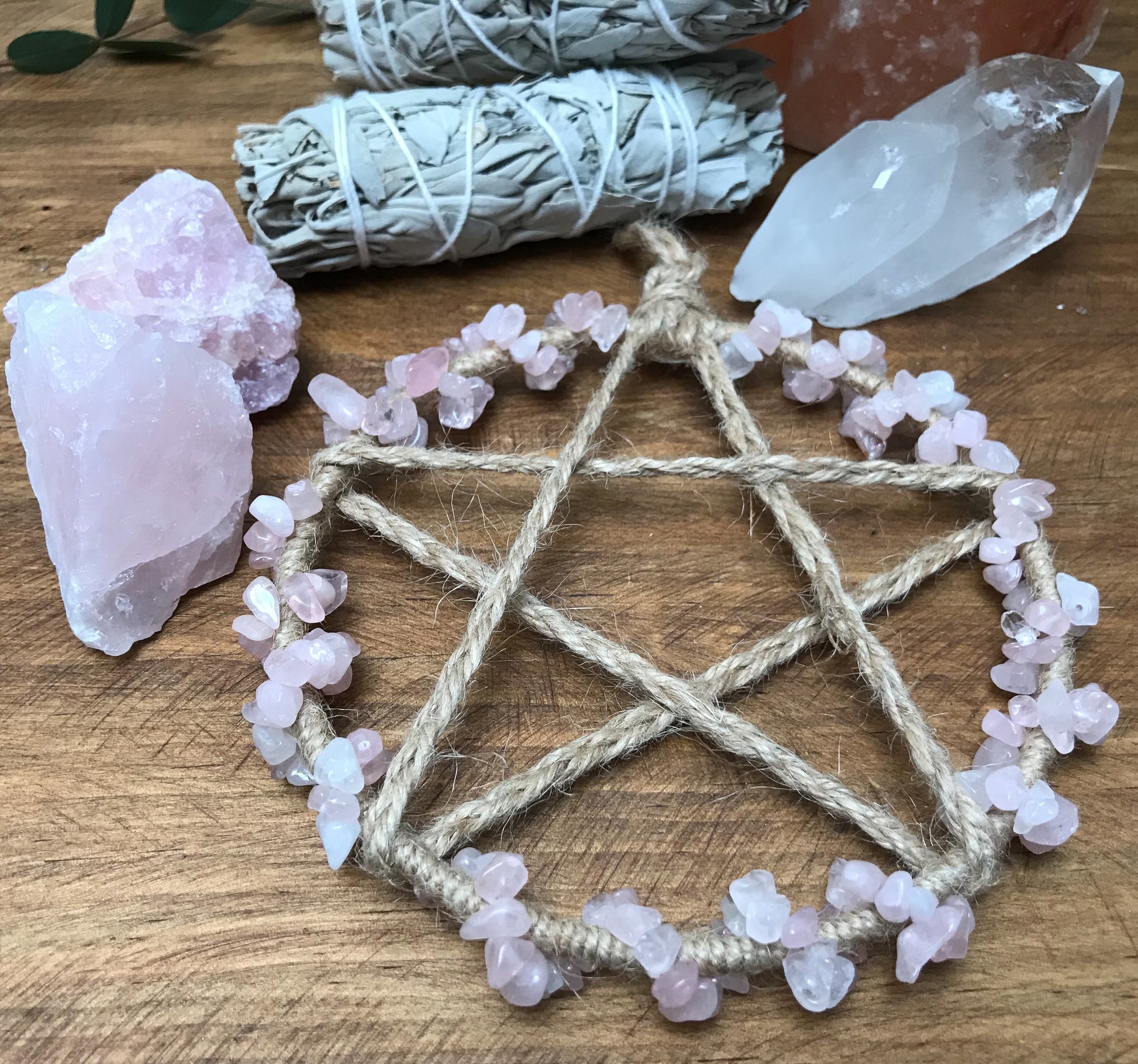 Rose Quartz Pentacle Wall Hanging