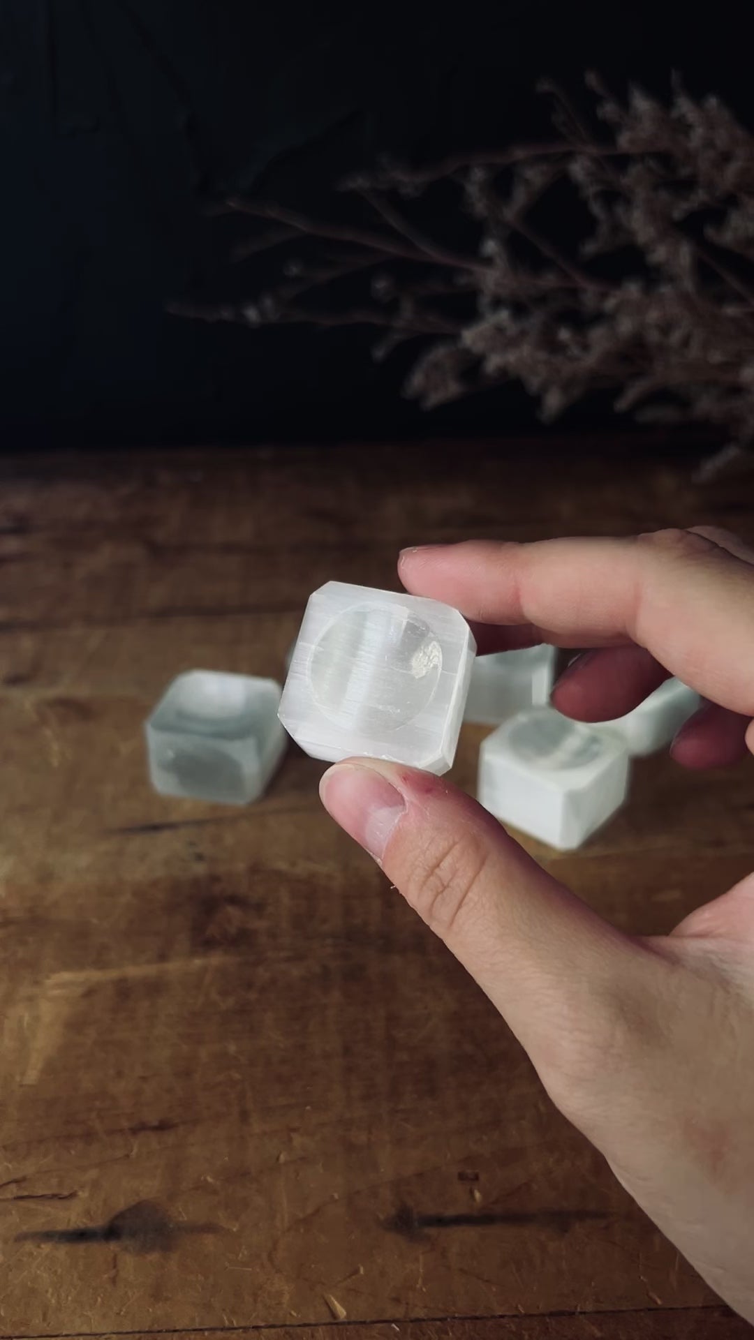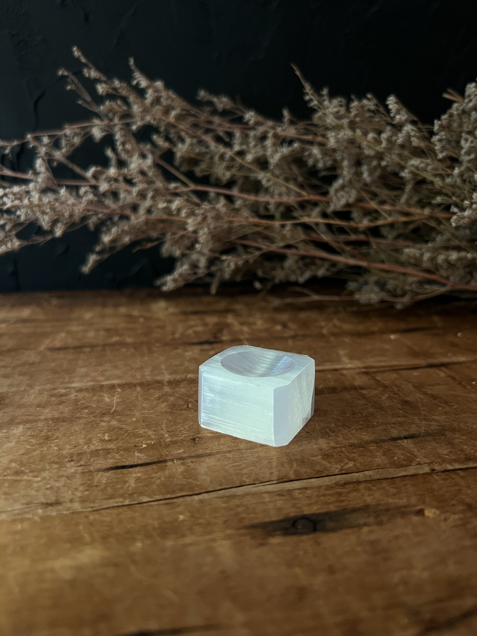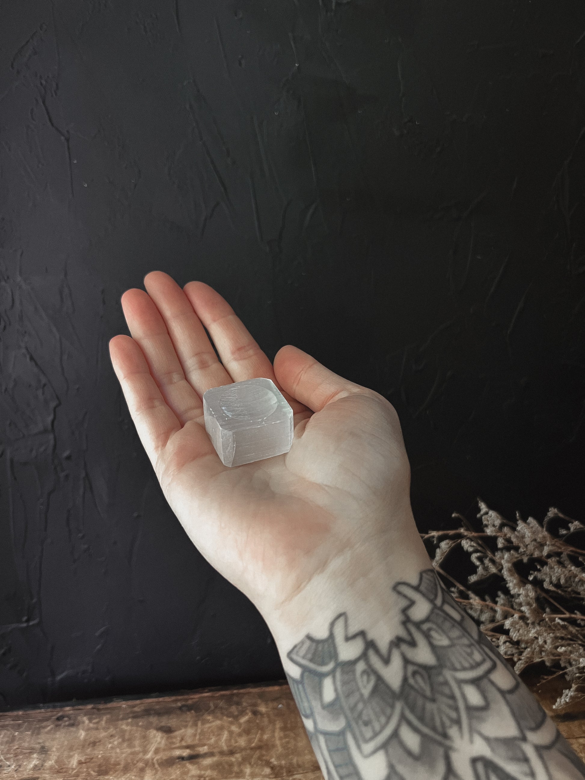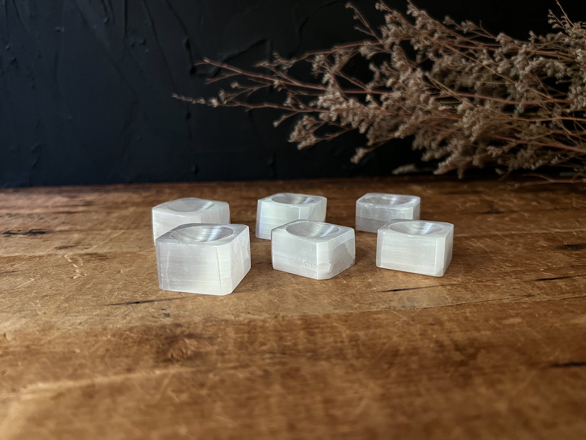 You will receive one Selenite Cube Stand, that measures approximately 17mm tall x 28mm wide.