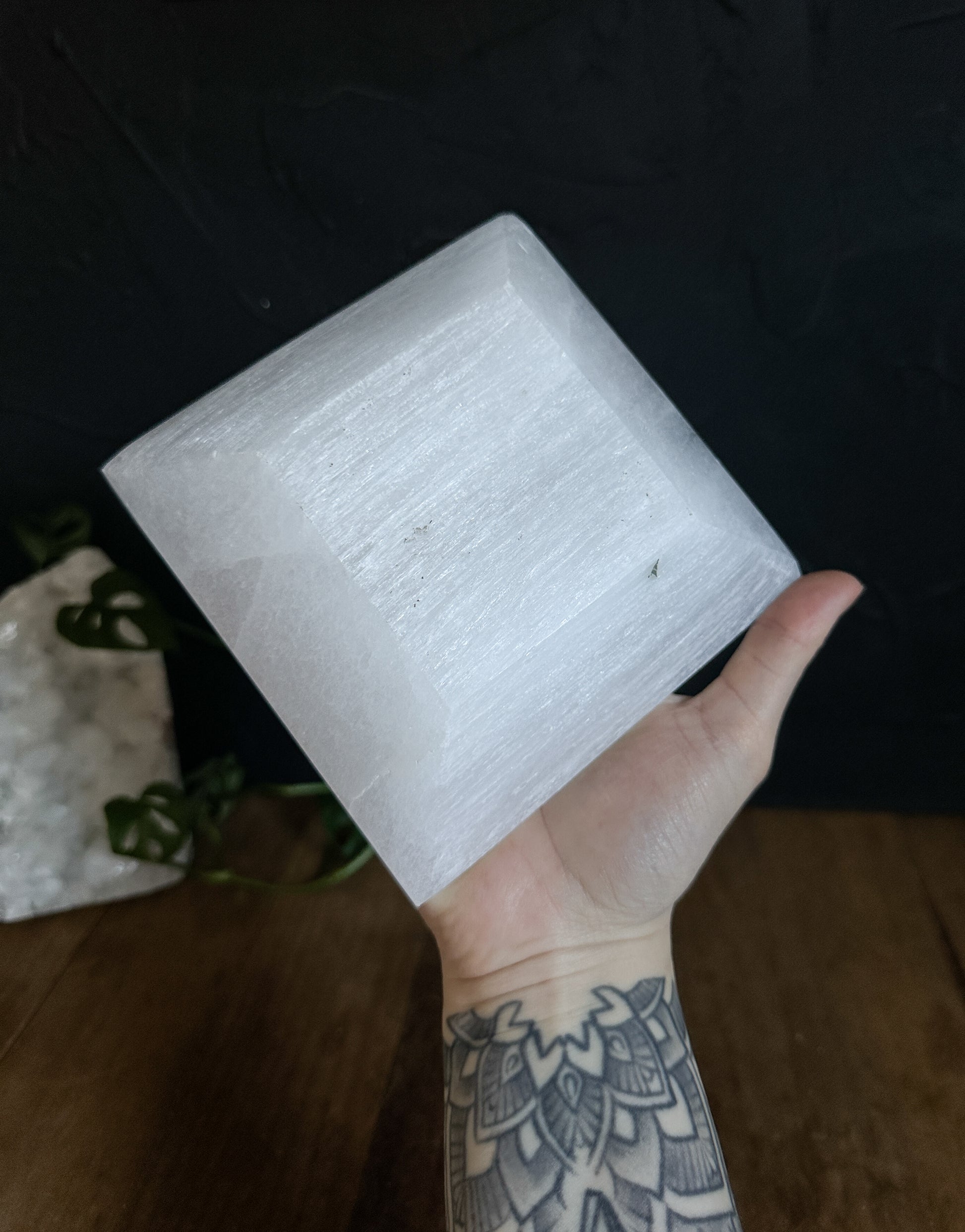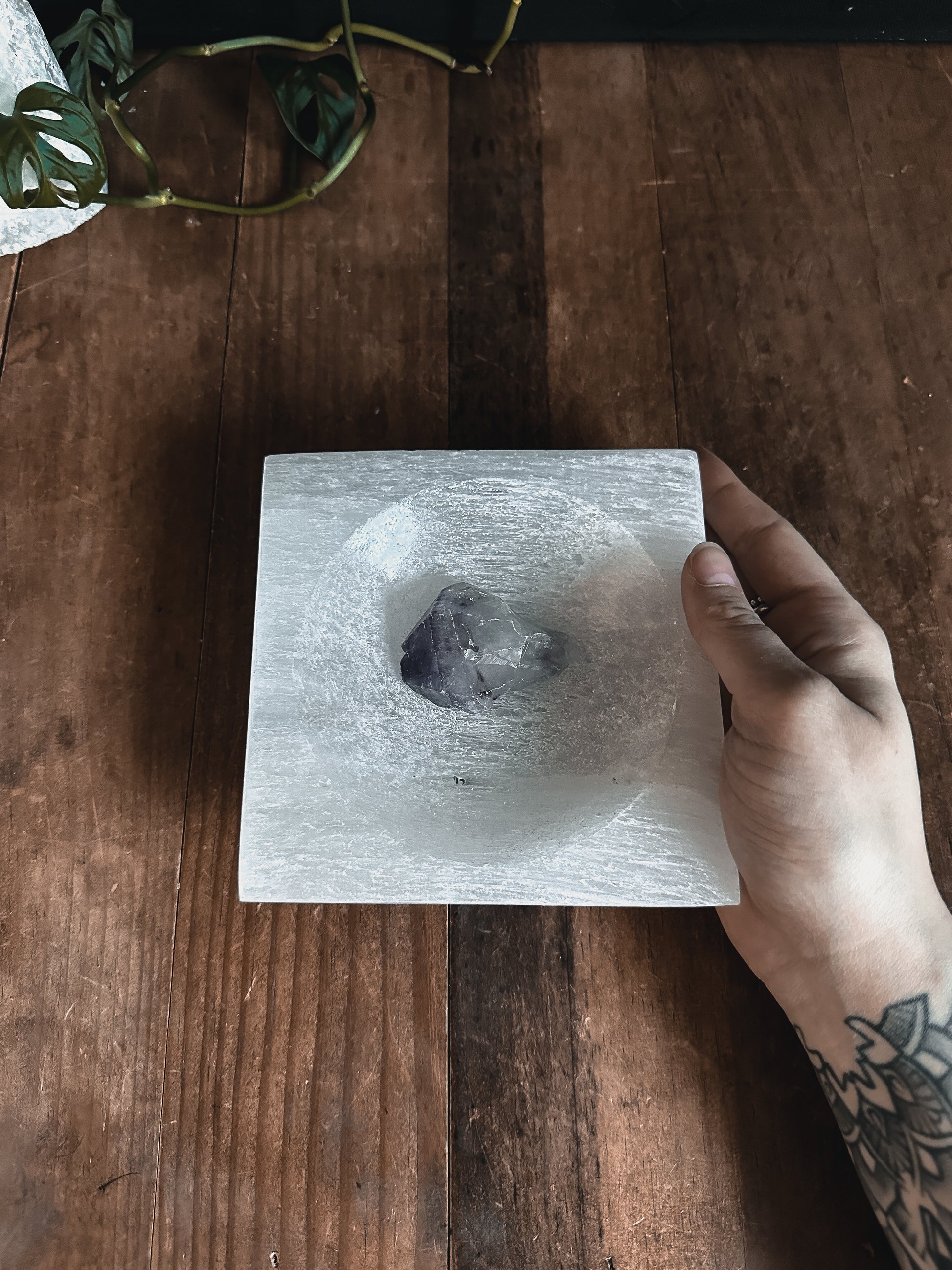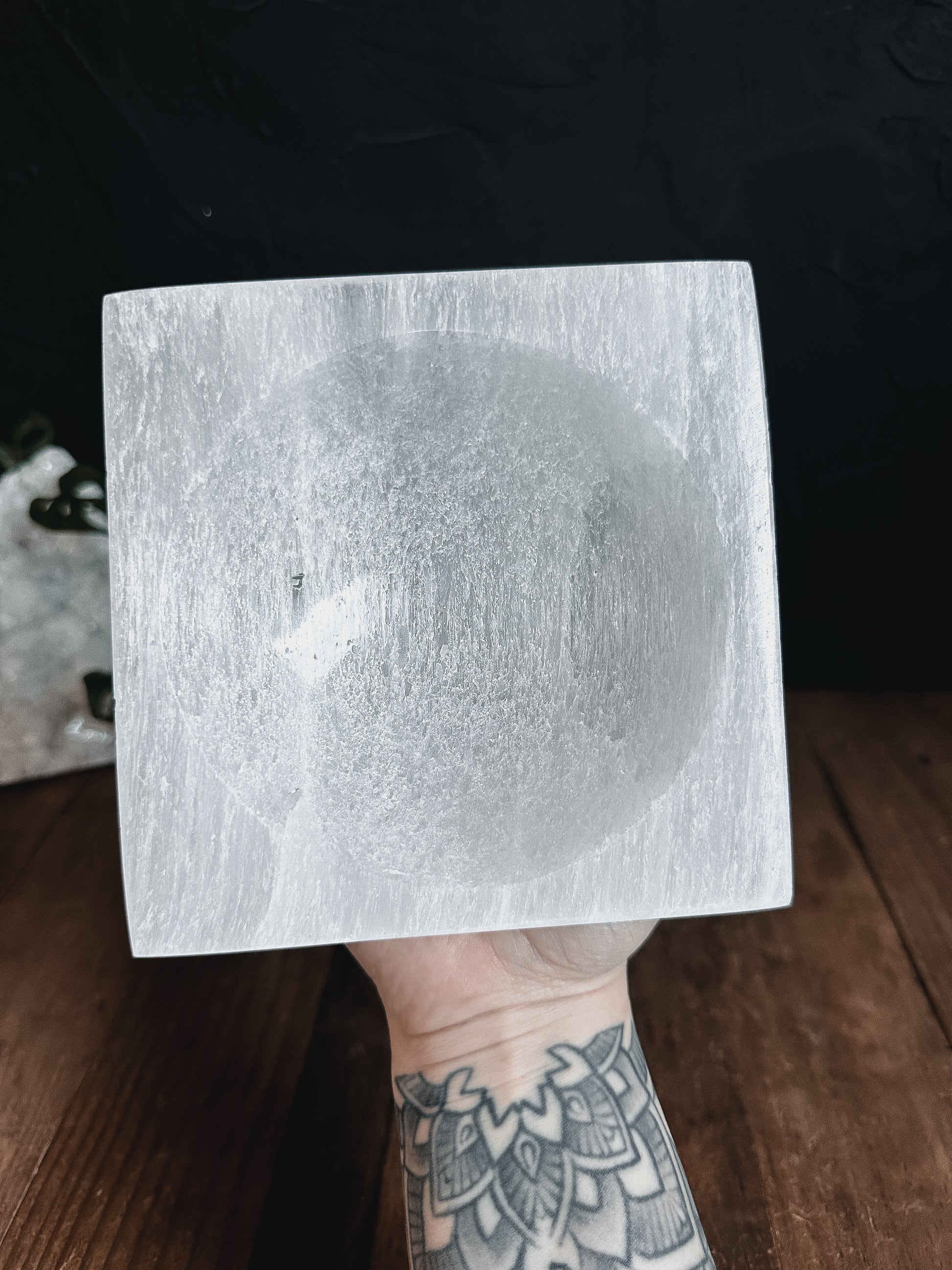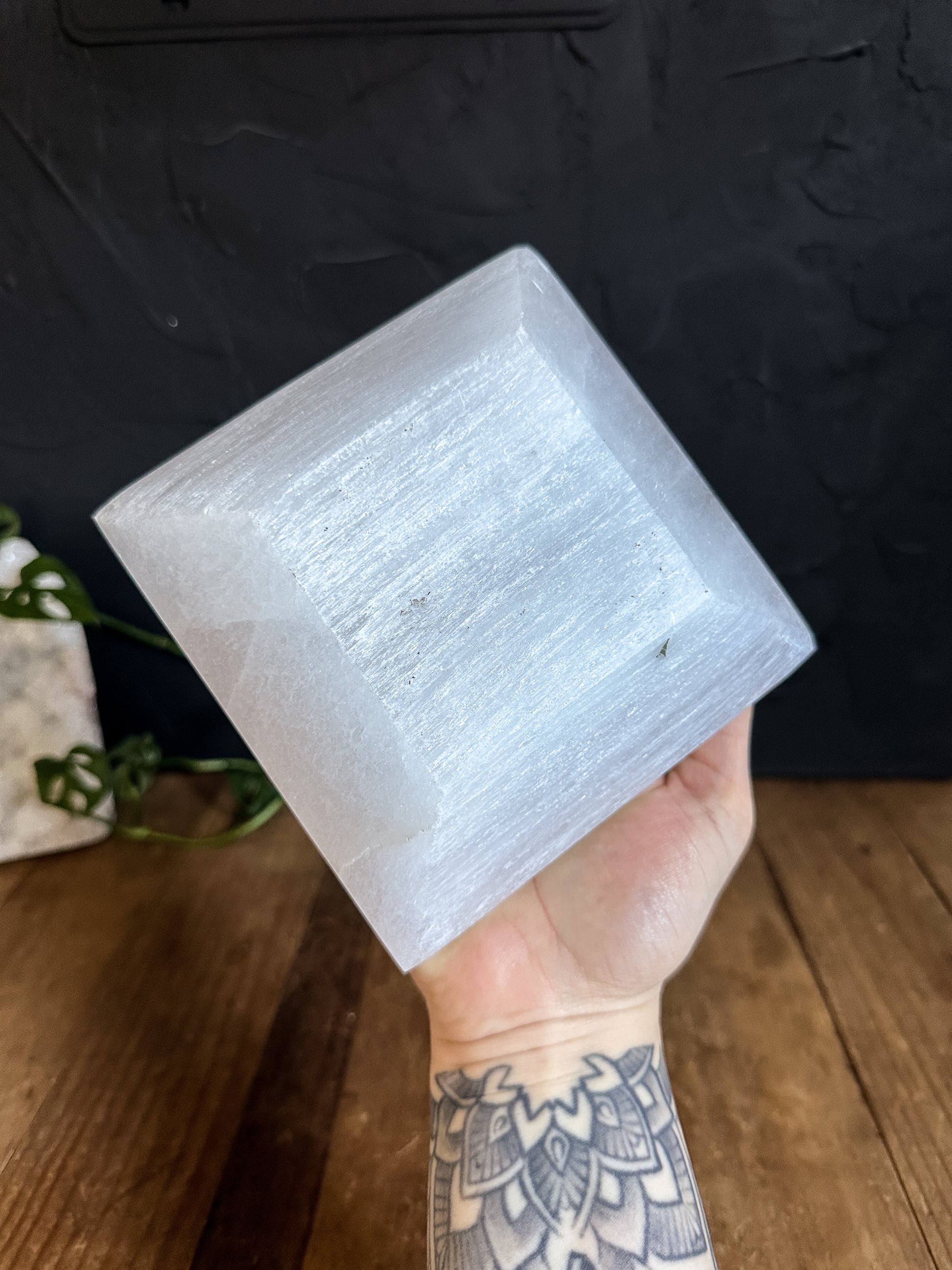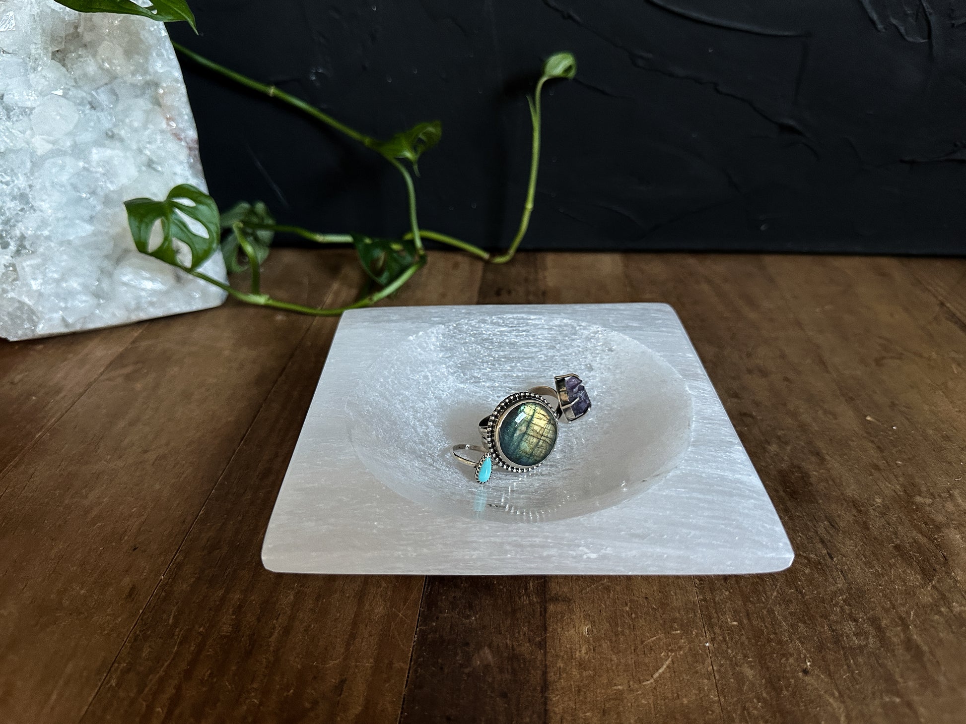 This gorgeous Selenite Square Bowl would be a  beautiful way to display and cleanse your jewelry and other crystals.