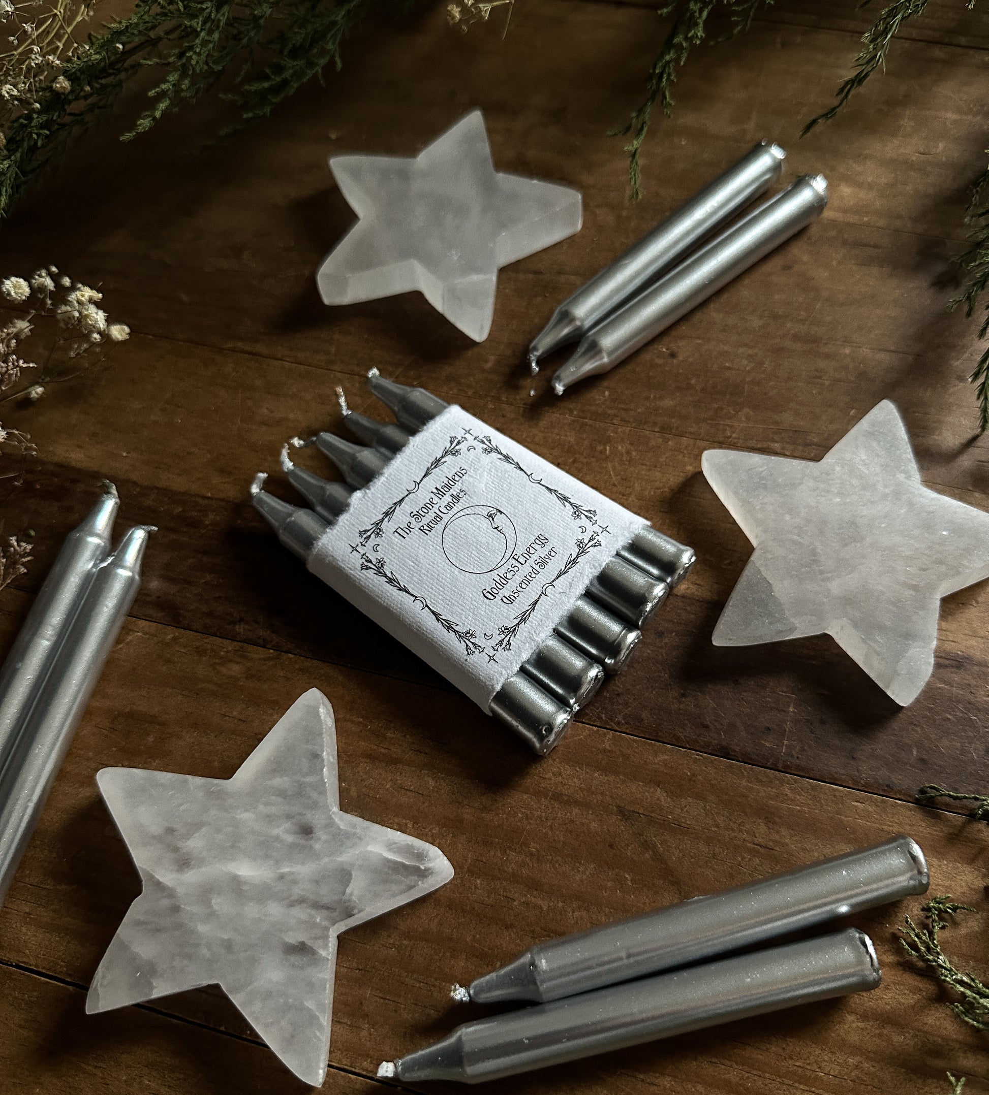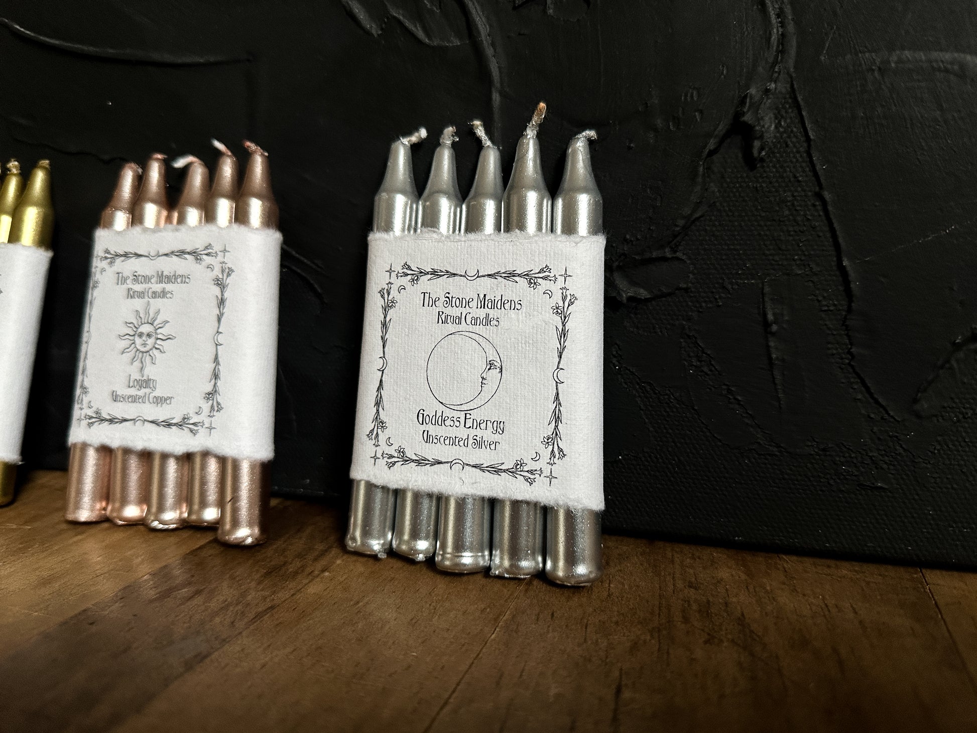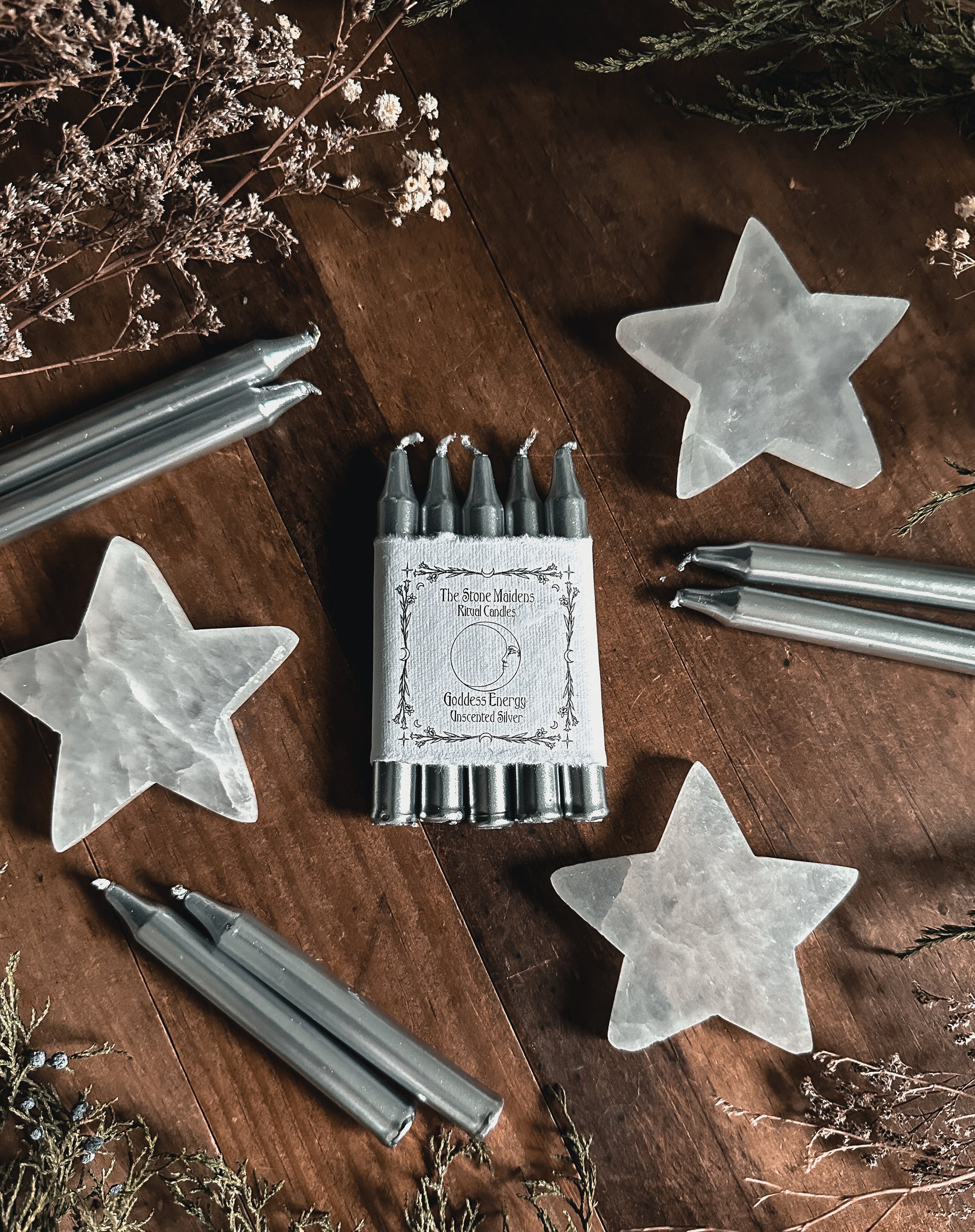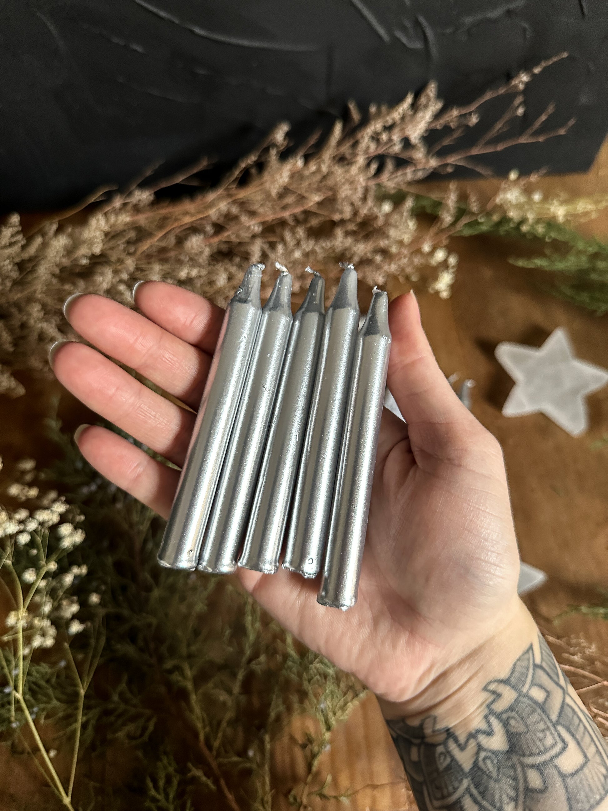 Silver candles are often associated with Lunar Goddess, Moon Magic, Intuition and Hidden Knowledge.