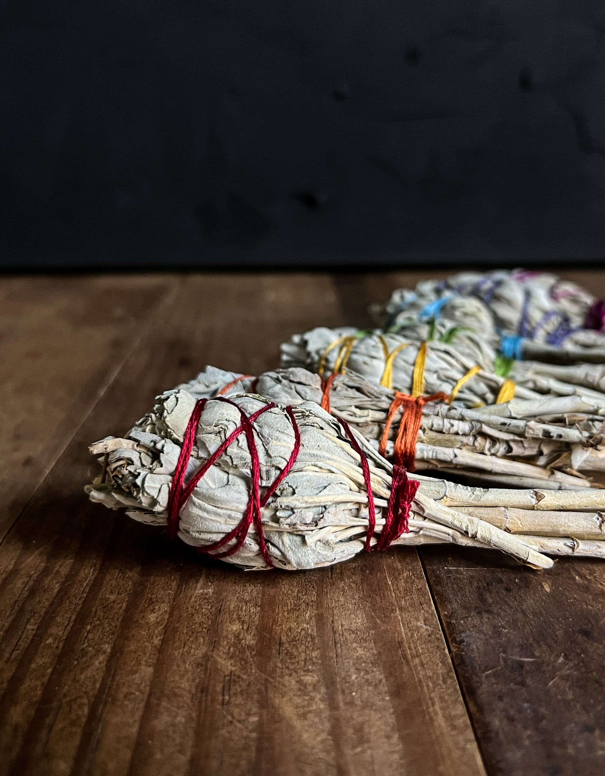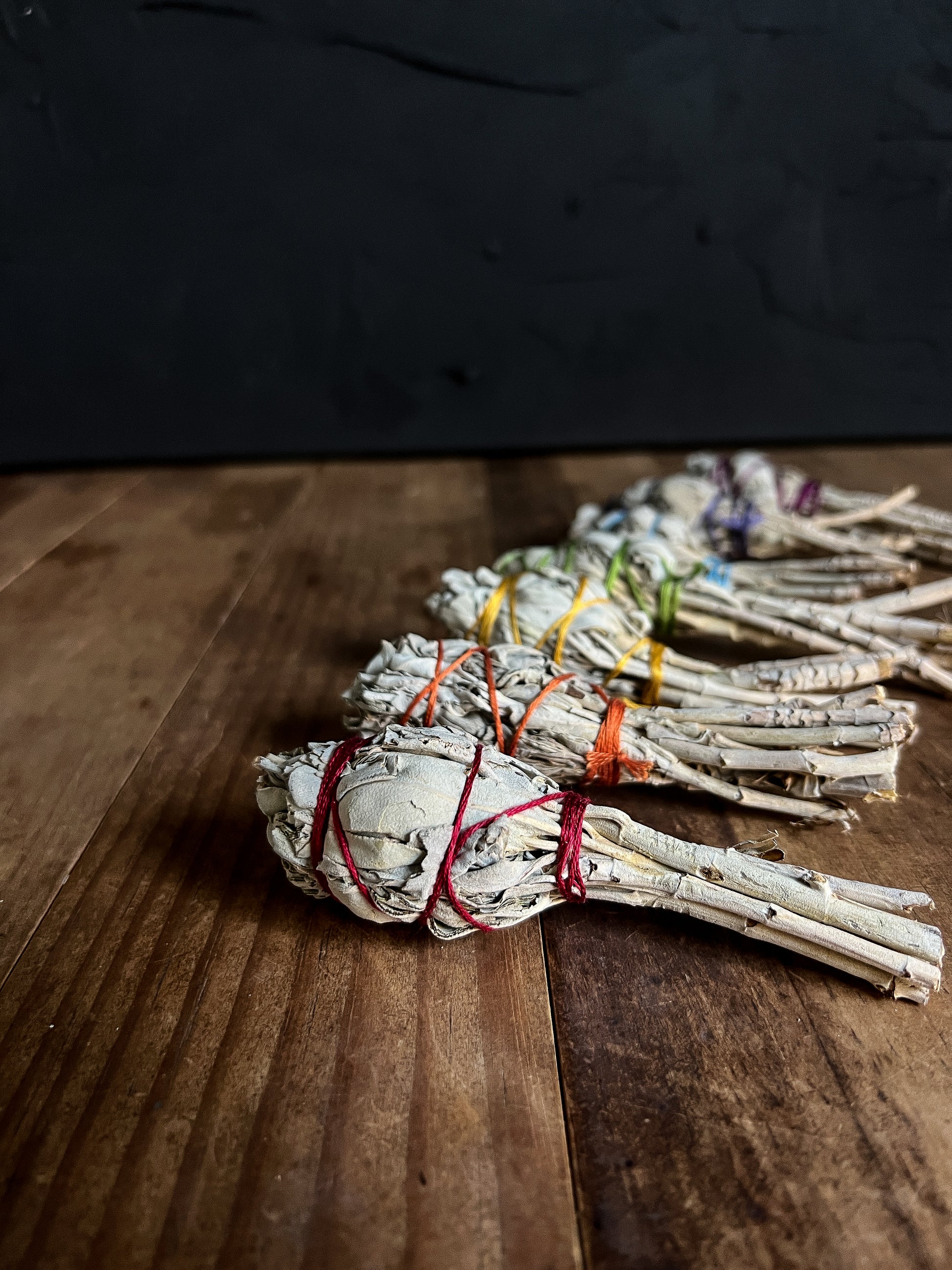 We decided to create these sage sticks to be specific to each chakra. During our own yoga journey we learned the importance of each chakra and how to balance them. We like to start and finish each yoga practice with some sage burning. When it came to chakra specific practices we decided we personally wanted a sage stick for each chakra to help better associate our practice with unblocking, clearing or balancing our chakra/s. These Chakra Sage bundles are the perfect addition to your practice, meditation or cleansing rituals.