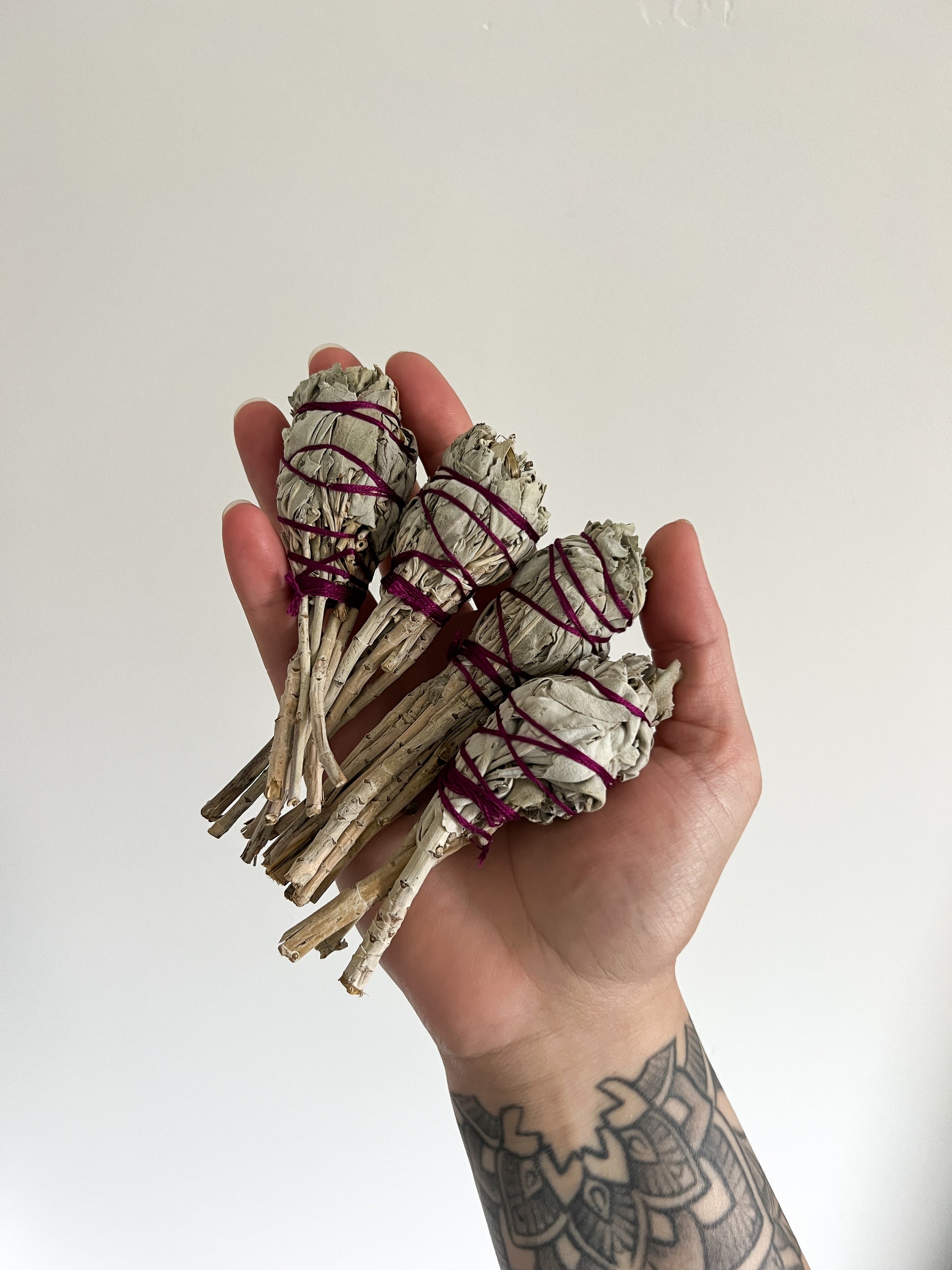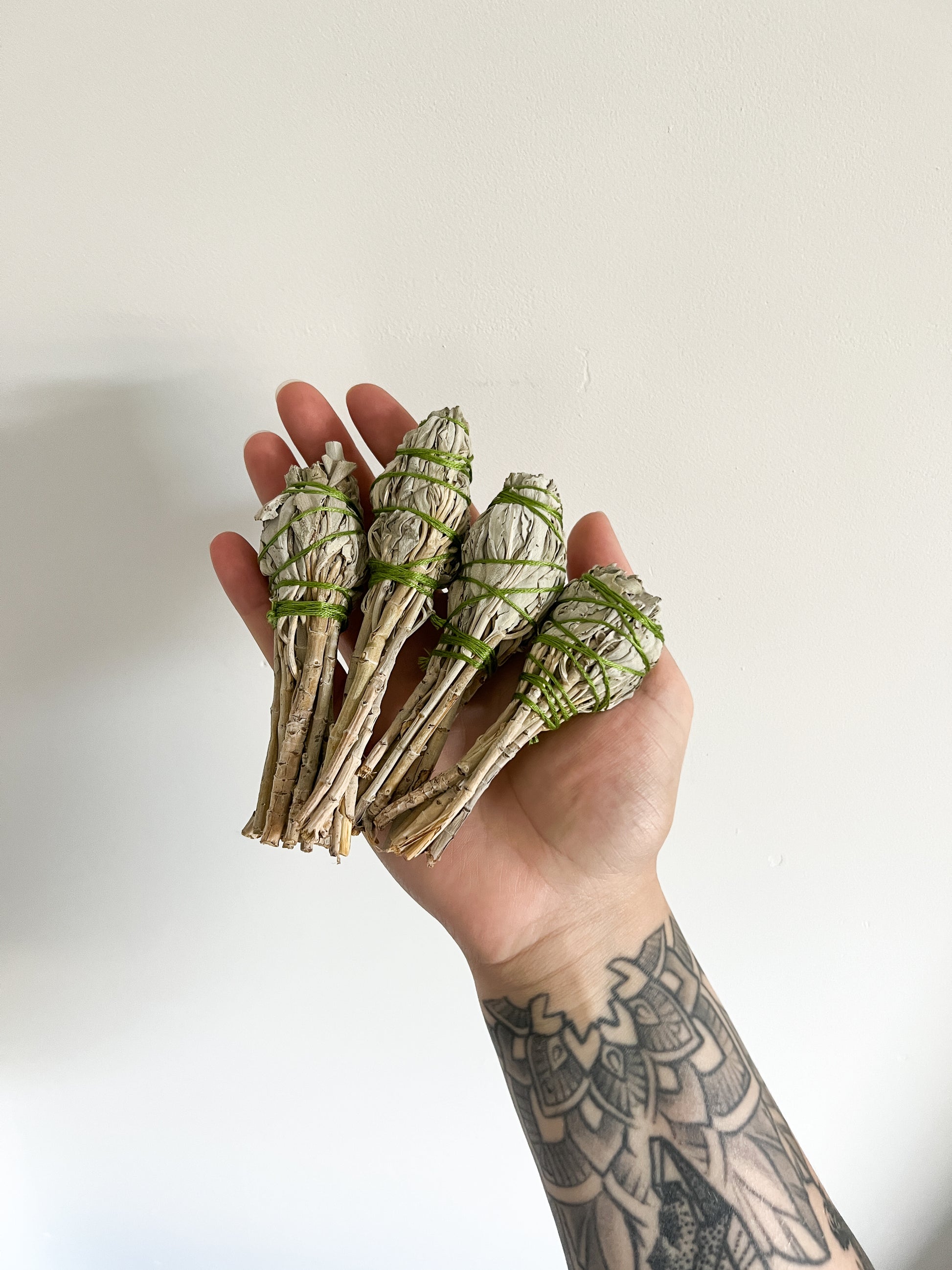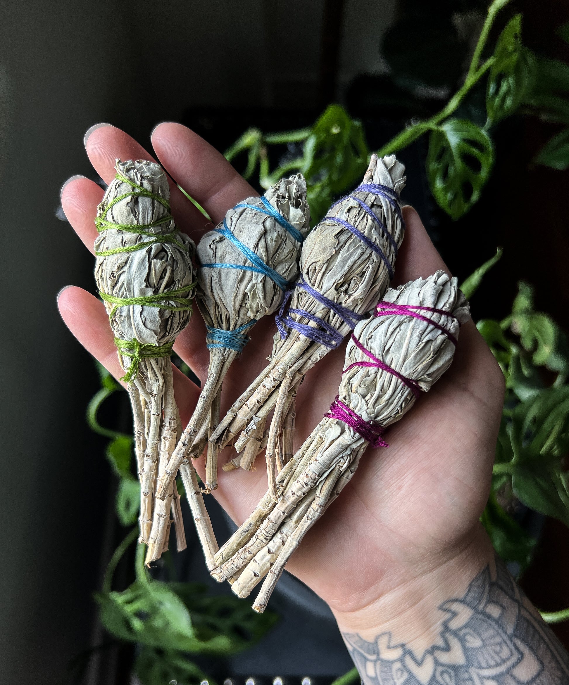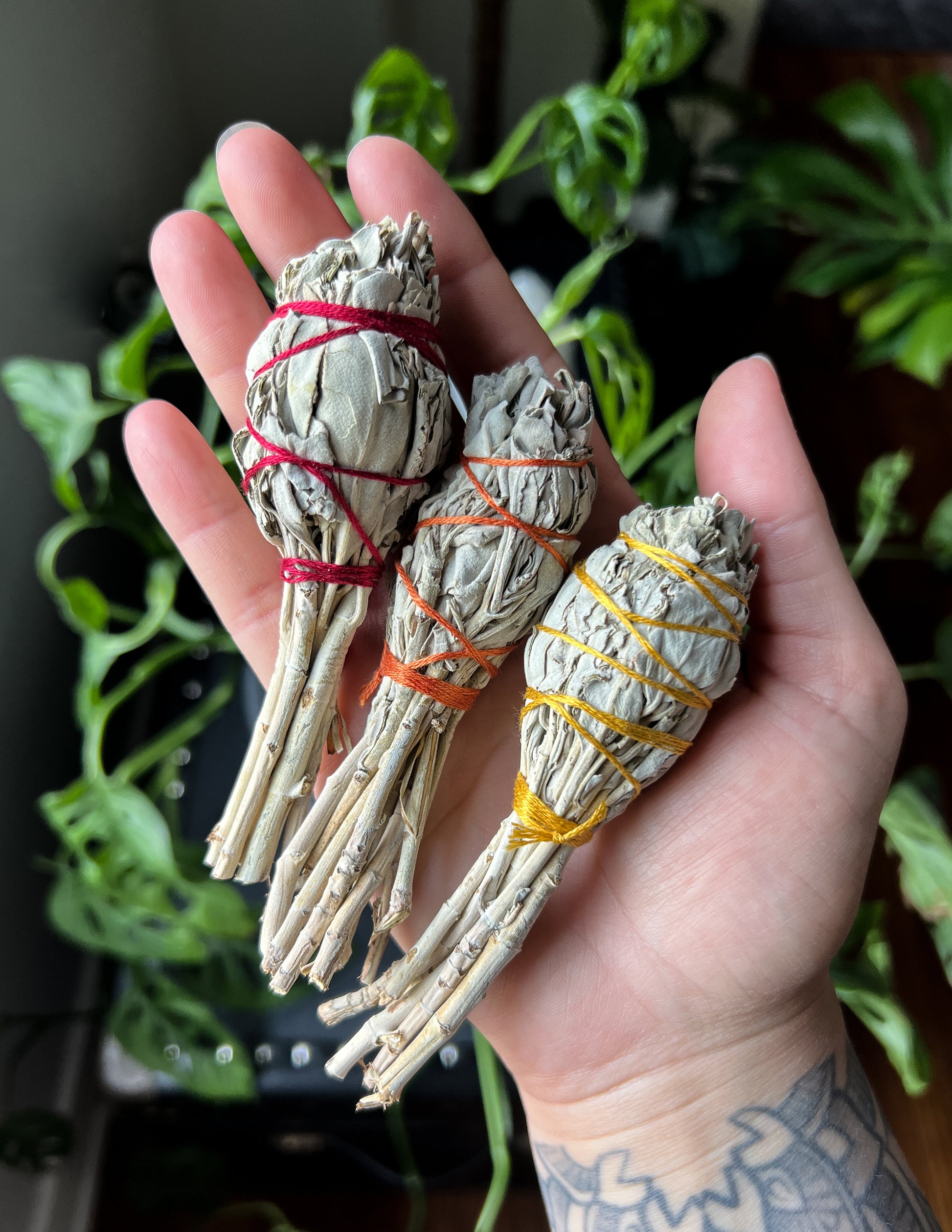 This listing is for one beautiful California White Sage Stick, measuring just over 4 inches or a bundle of all 7 chakras.