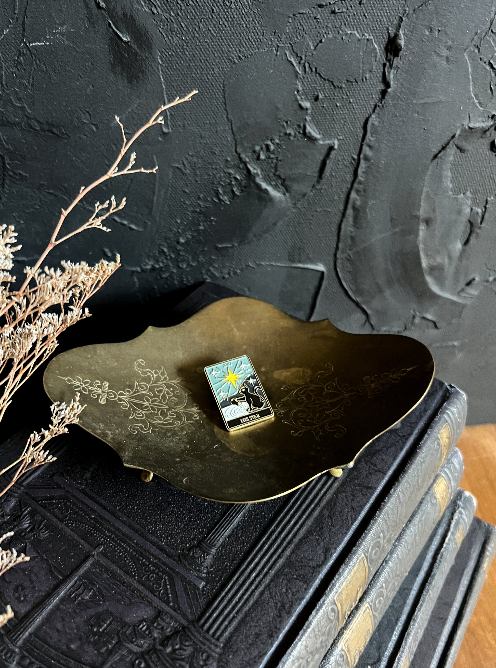 The Star (XVII) is the 17th ranking Major Arcana card in most traditional tarot decks. It portrays a tranquil scene with a large star shining brightly amidst a dark sky, symbolizing hope, guidance, and renewal. The star's rays illuminate the landscape below, suggesting clarity and insight in times of darkness. This card encourages trust in the universe and belief in brighter days ahead, reminding us to have faith in ourselves and our journey.