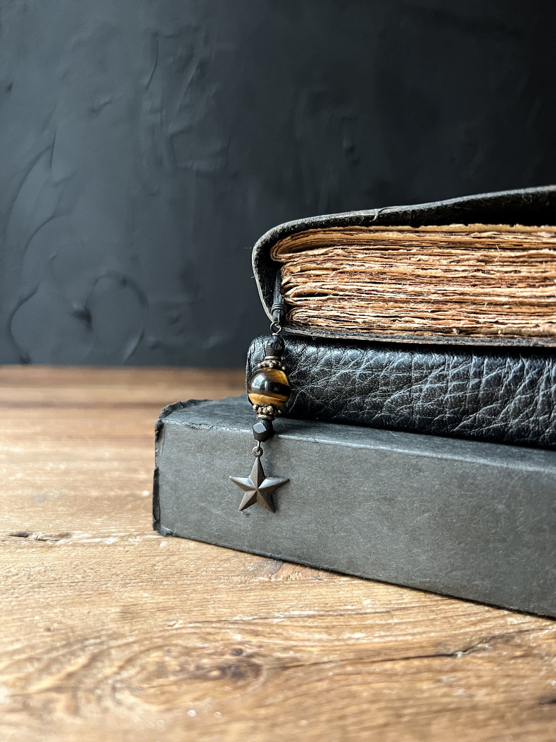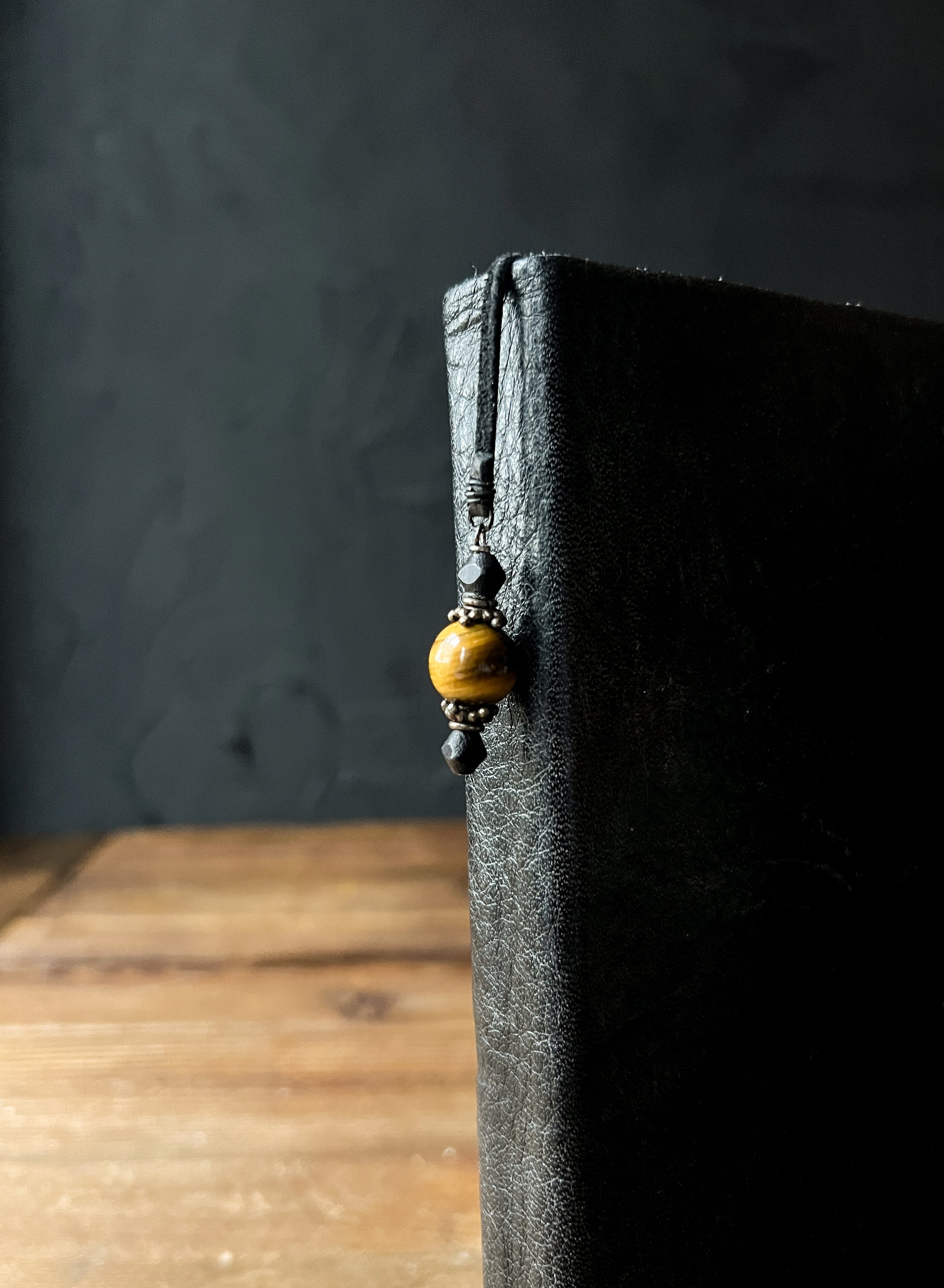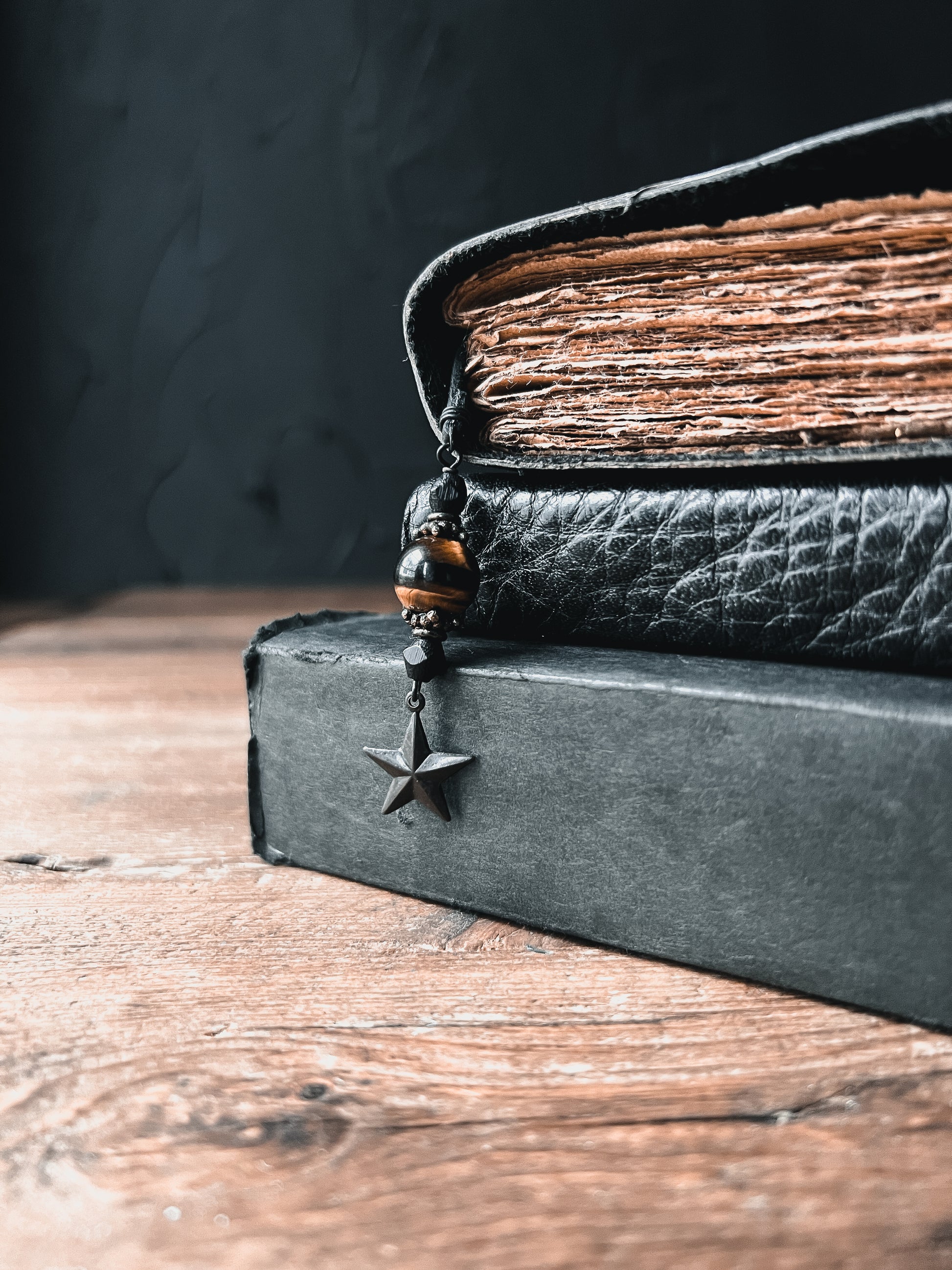 We created this Tigers Eye Bookmark with the idea of having a magical talisman with you always. Be it when you are reading, studying or marking somewhere special in your grimoire. We also get lost in the idea that this bookmark is something your witchy grandmother would gift you in their sacred recipe book.