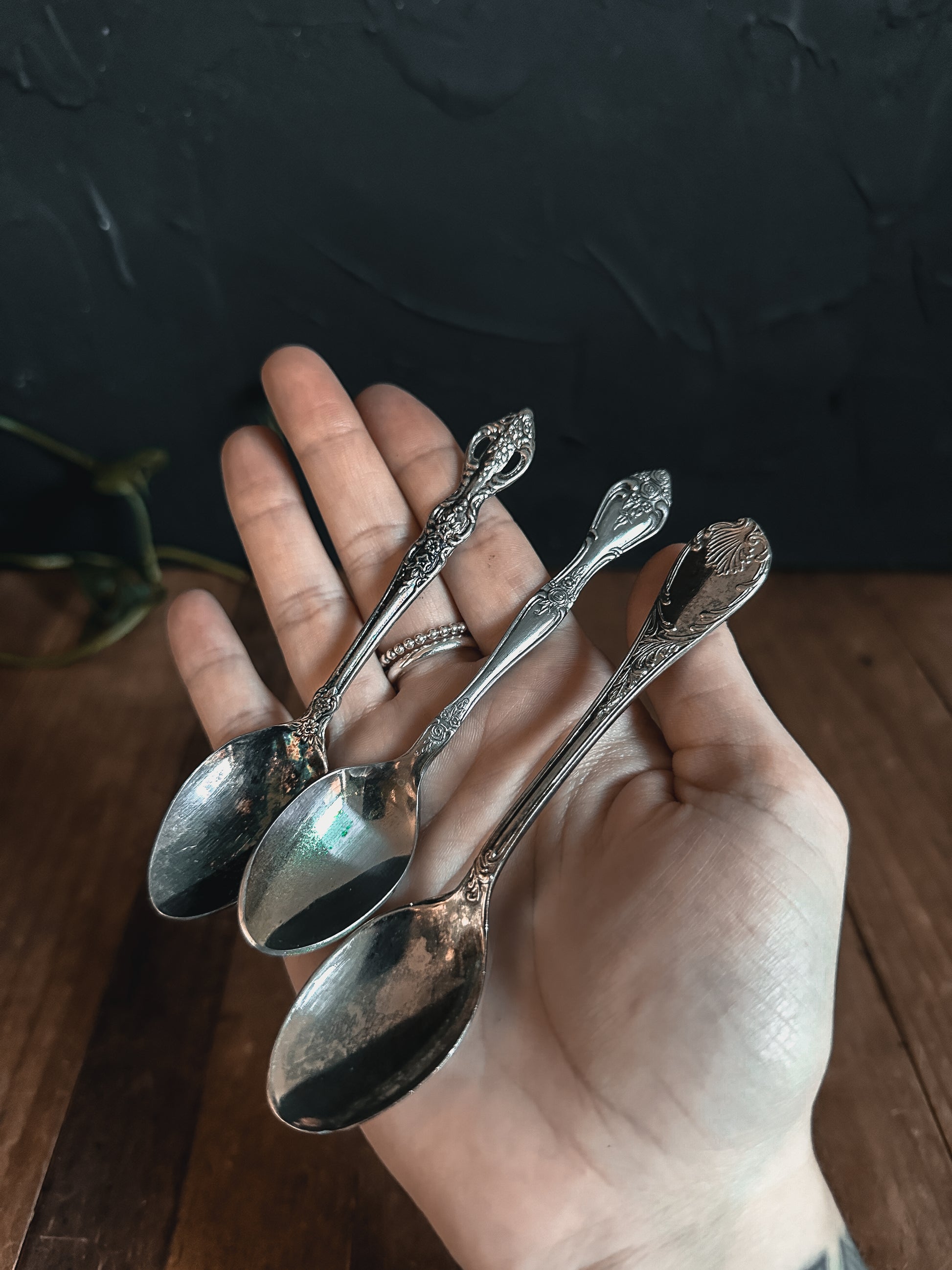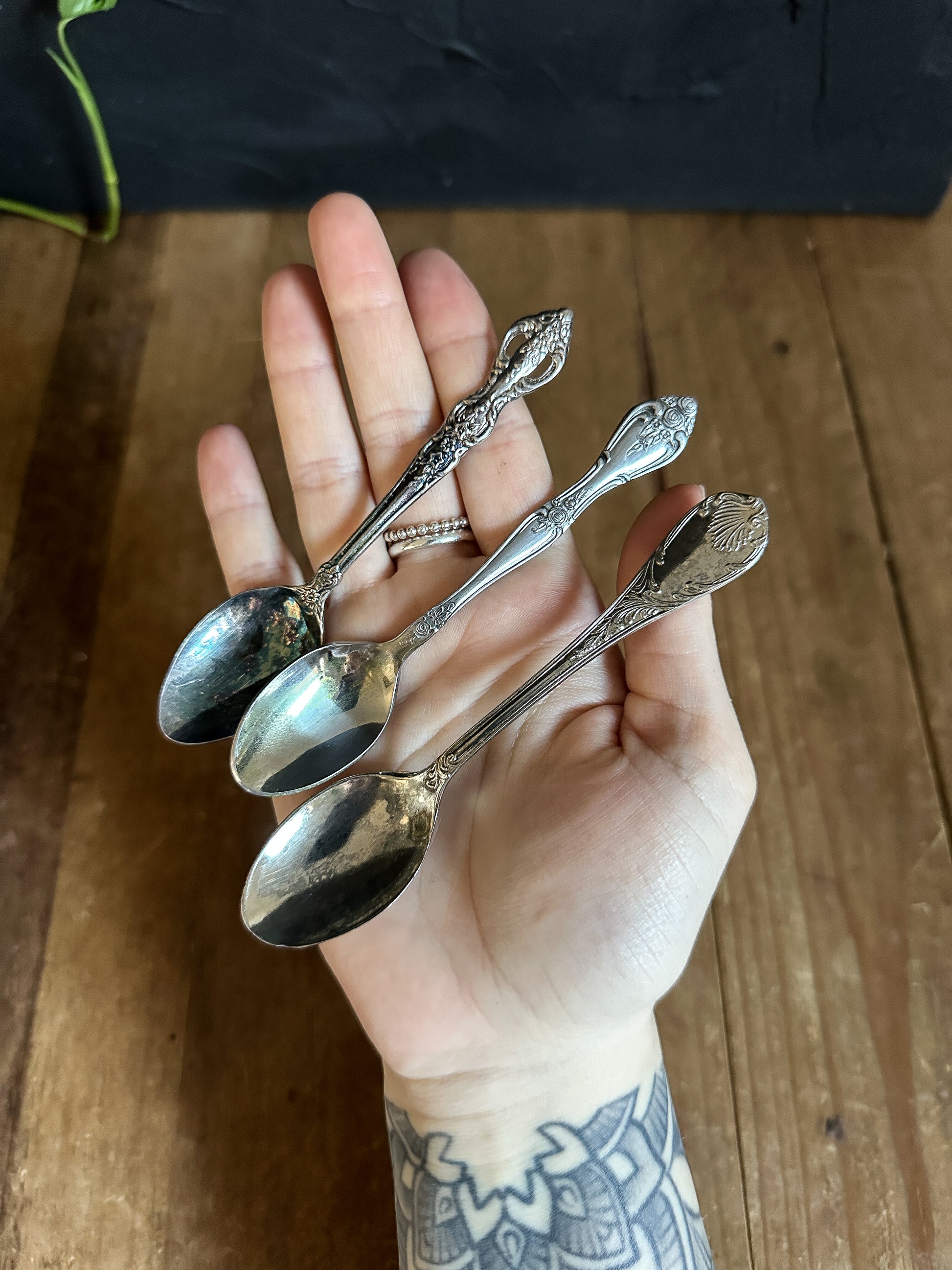 Vintage Altar Spoons – petite treasures with a touch of enchantment. Perfect for rituals, spell jars, and tea ceremonies, these delicate spoons blend vintage charm with practicality.