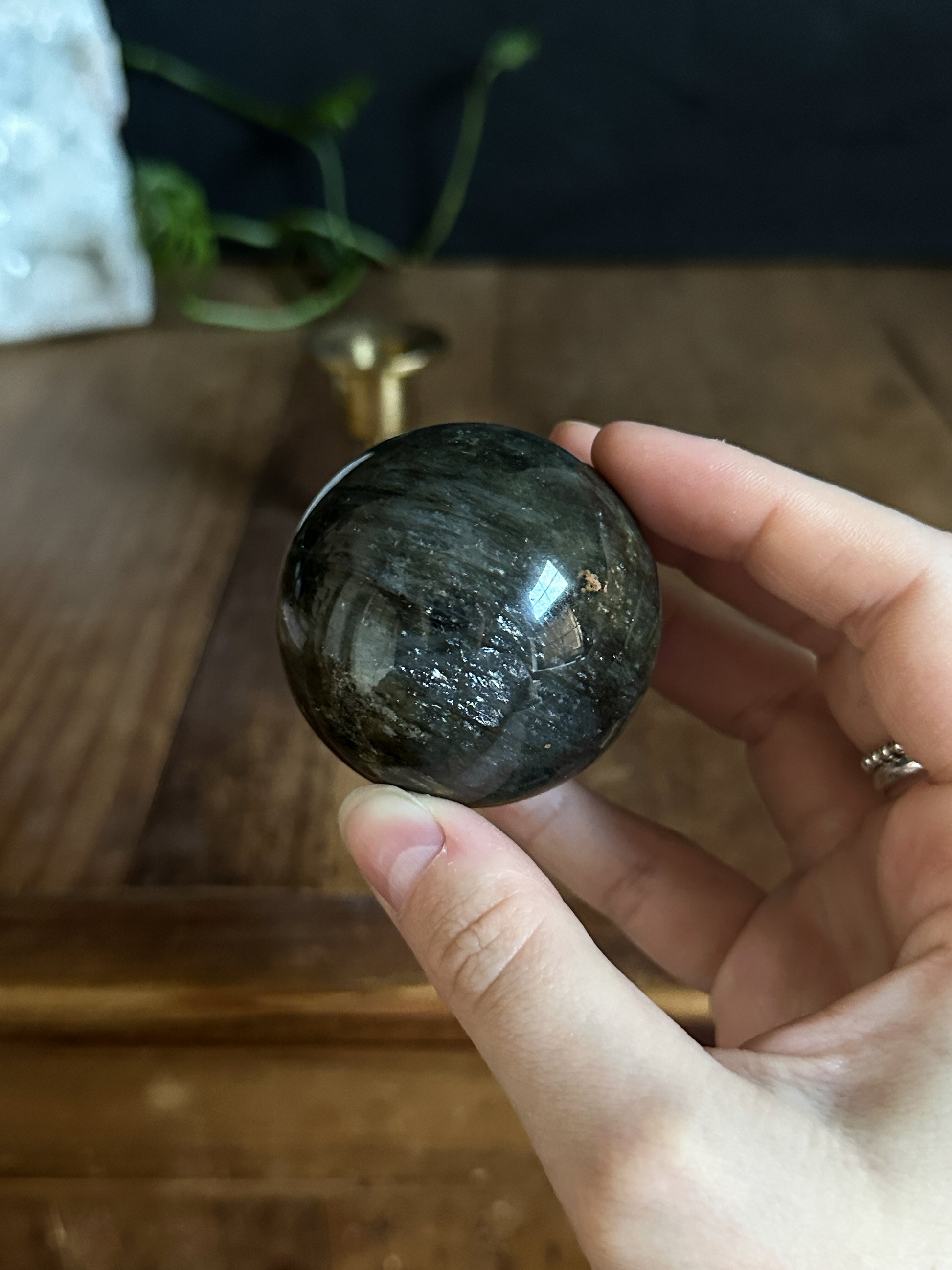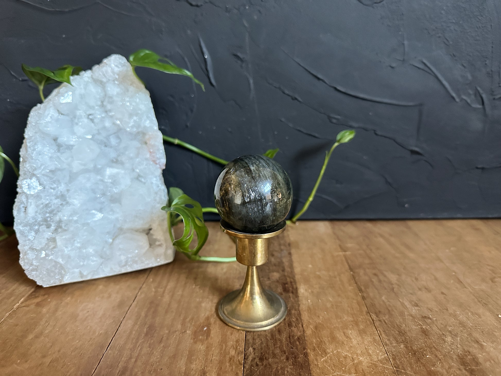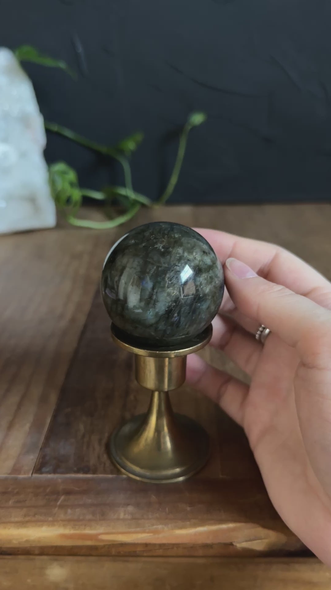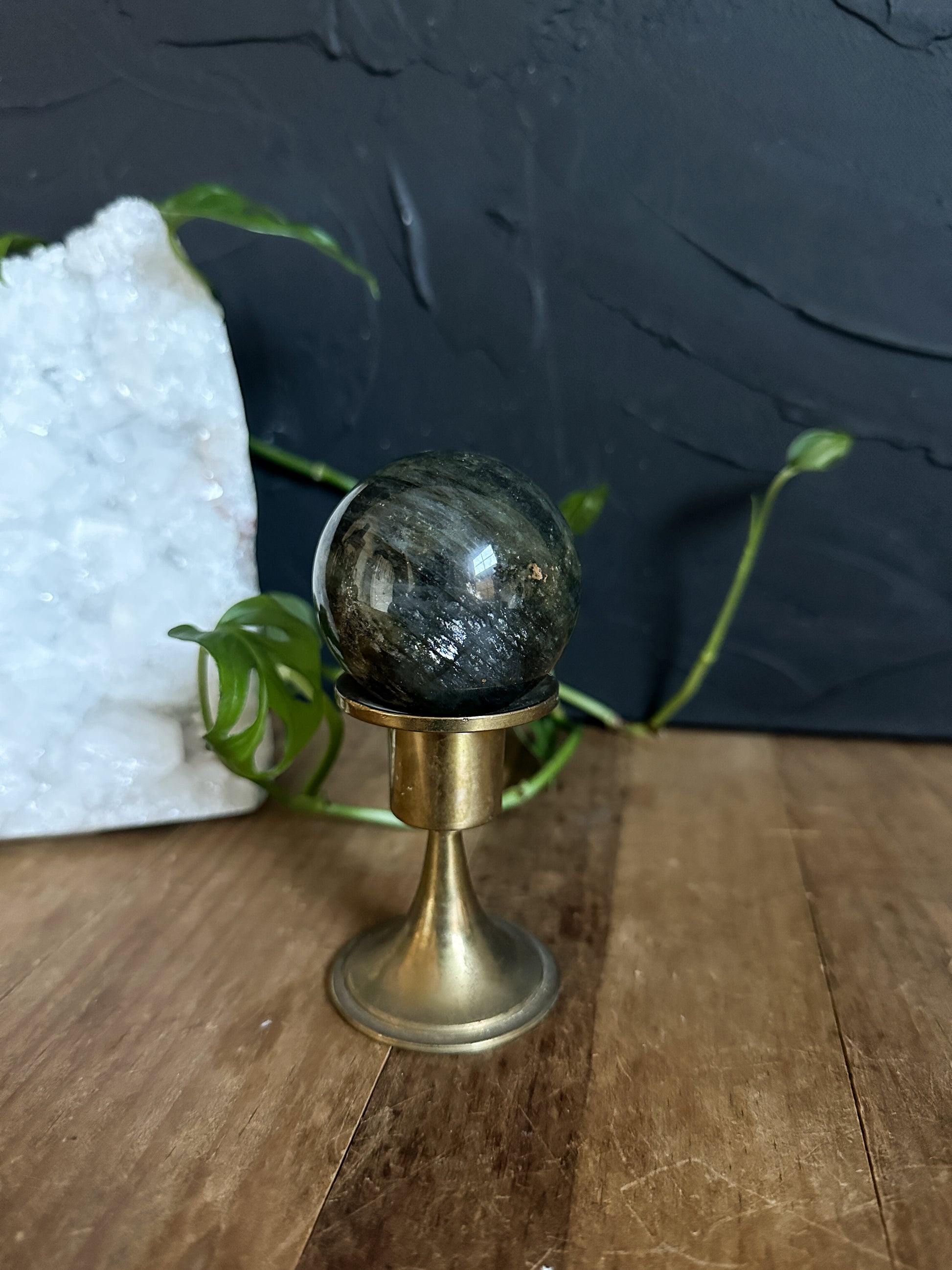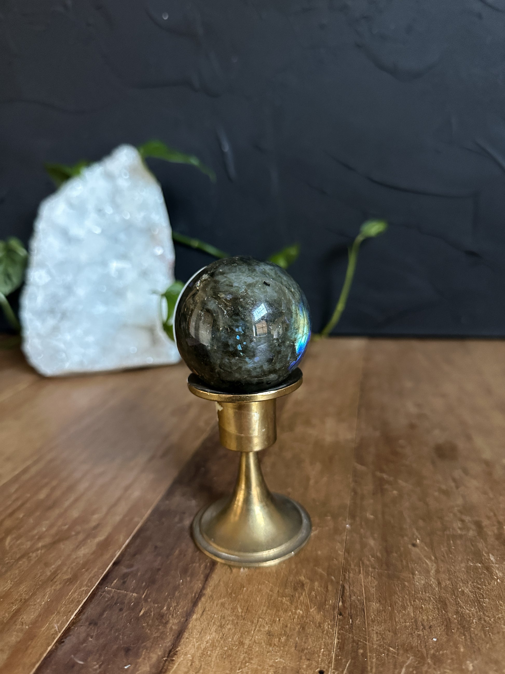 Vintage Crystal Ball Stand with Labradorite Sphere