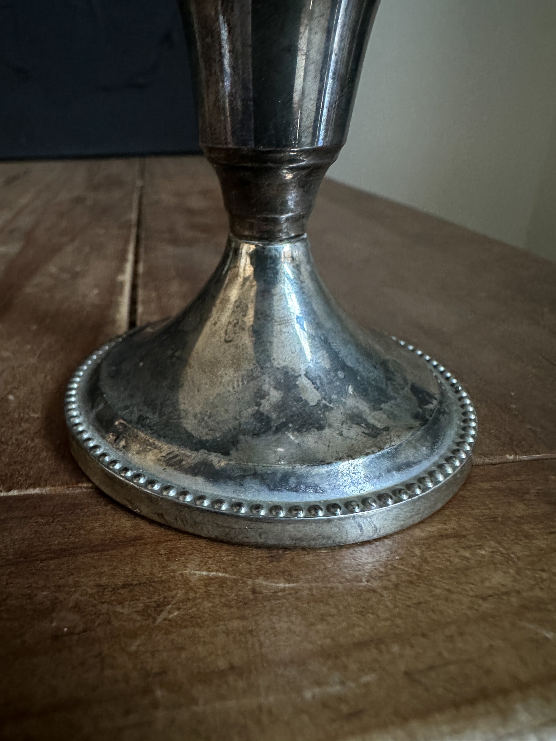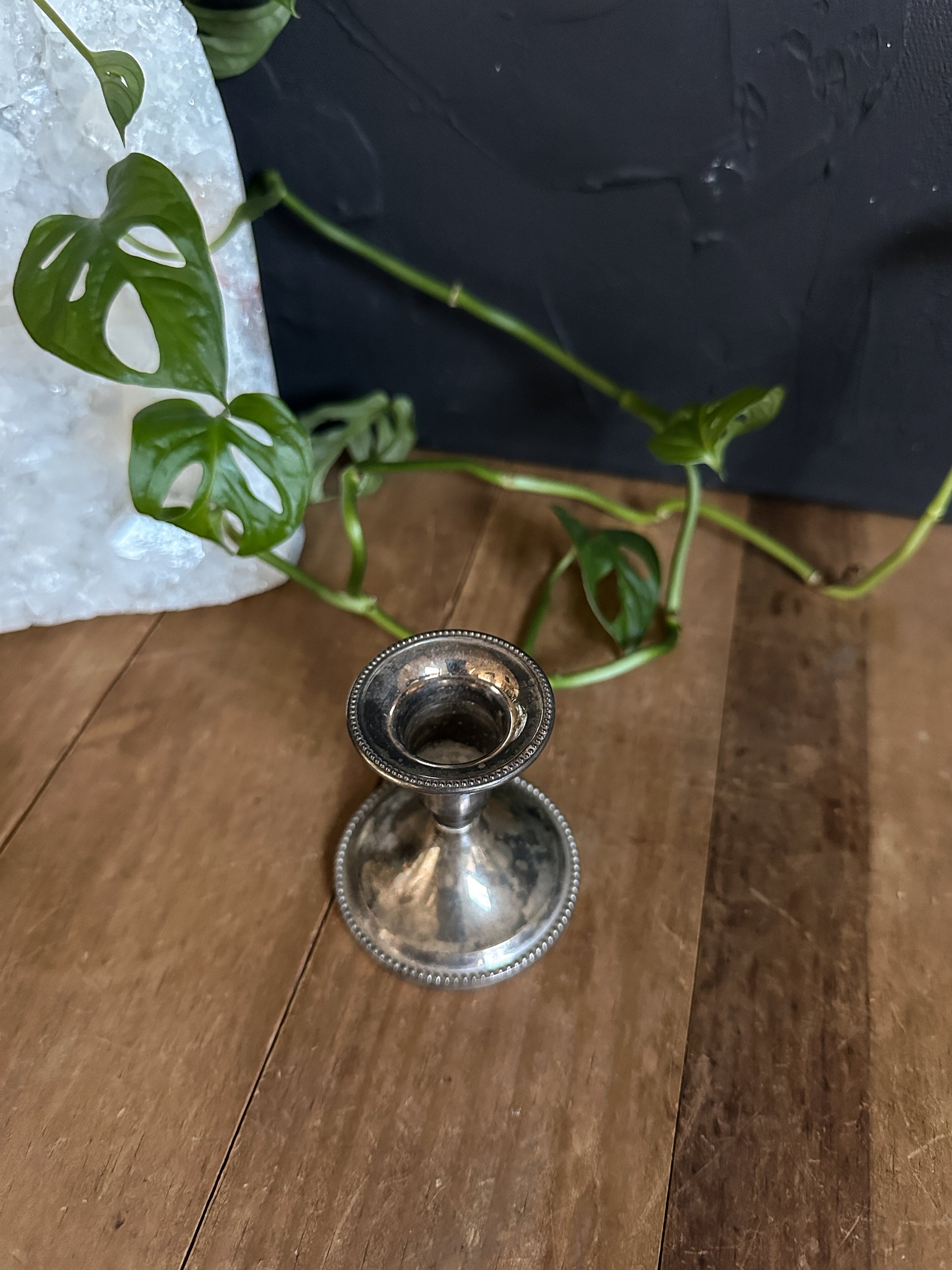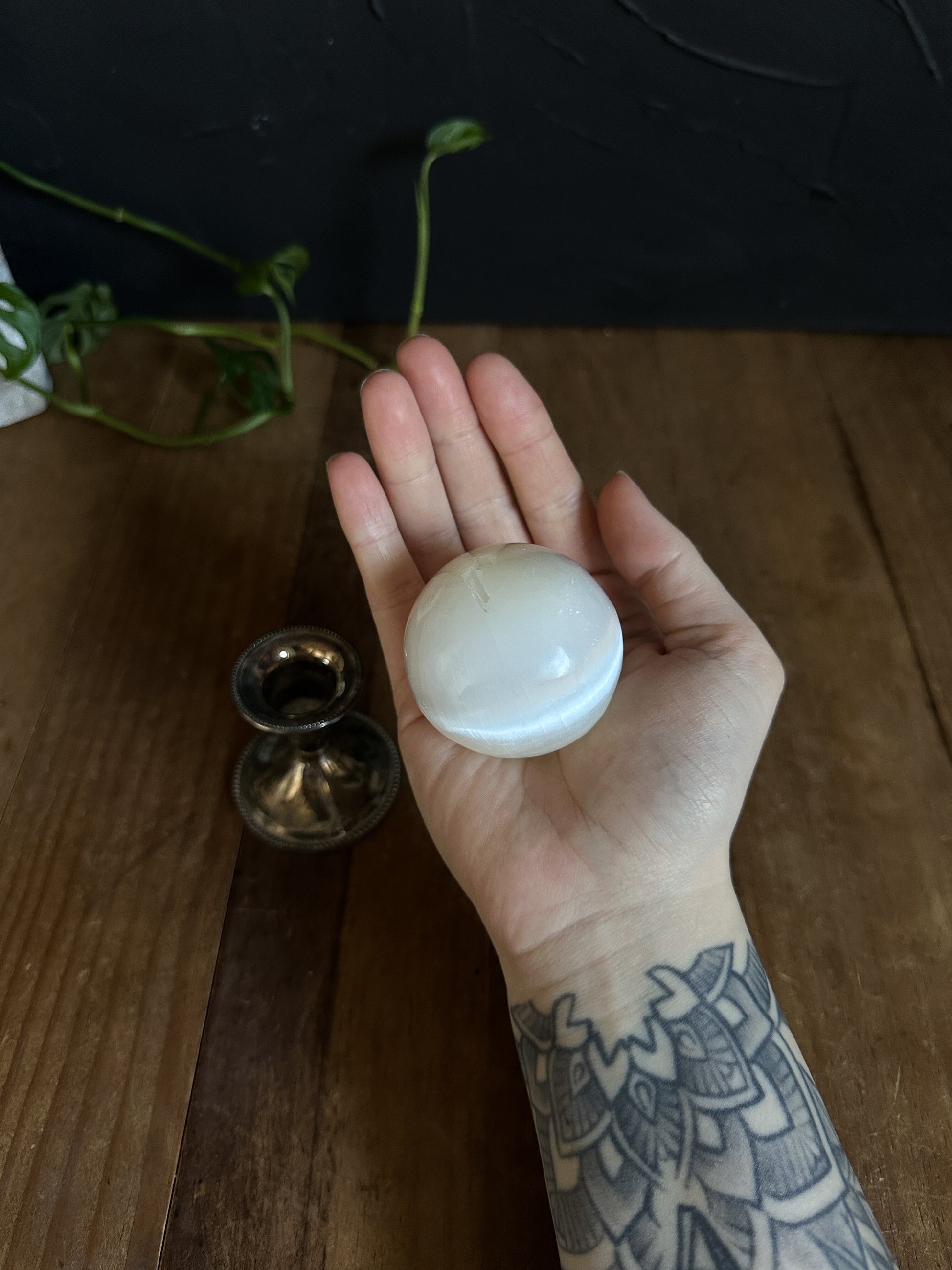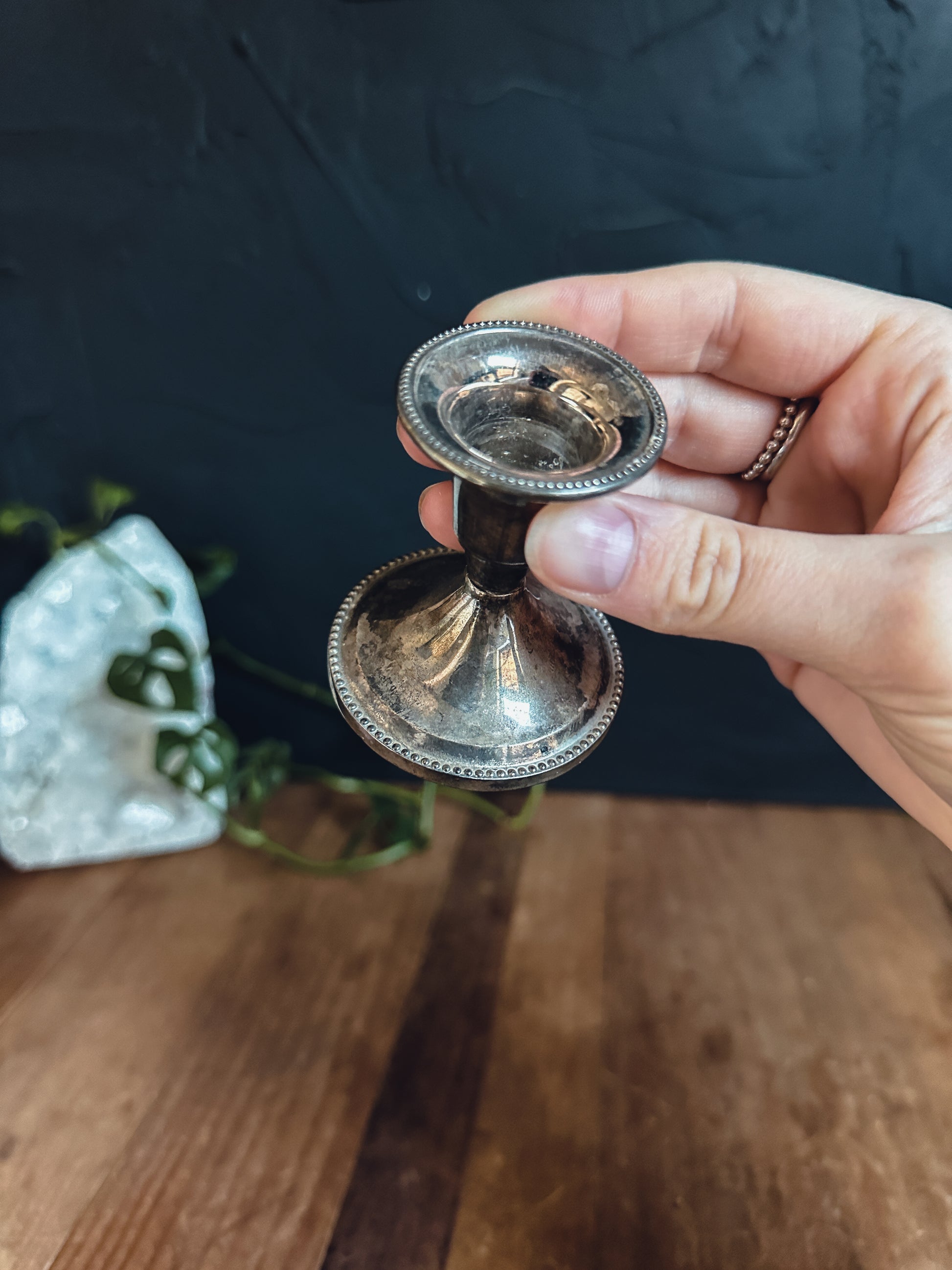 This cute vintage silver plated candle holder is the perfect Crystal Ball stand! This stand comes with the Selenite Sphere shown.