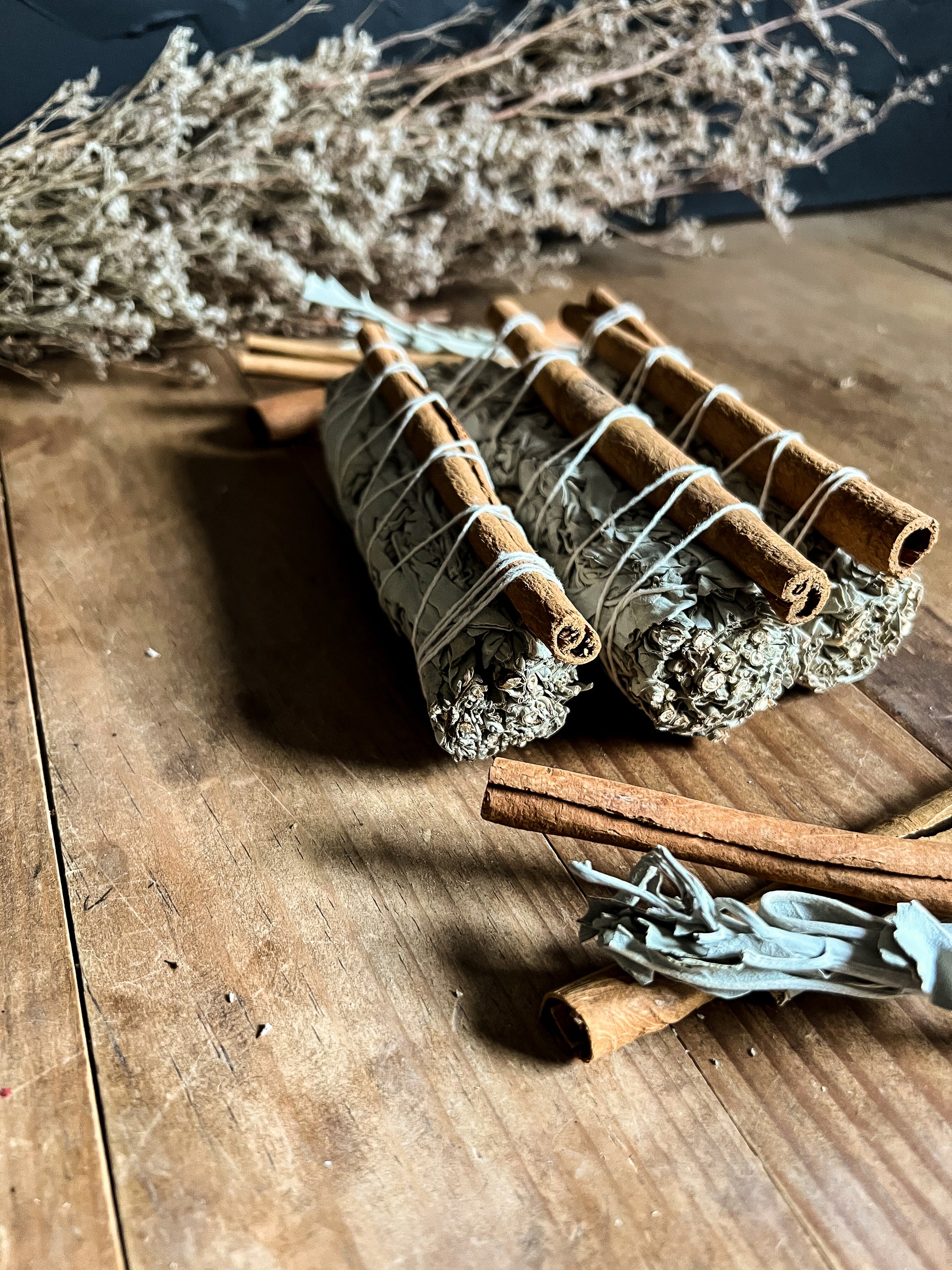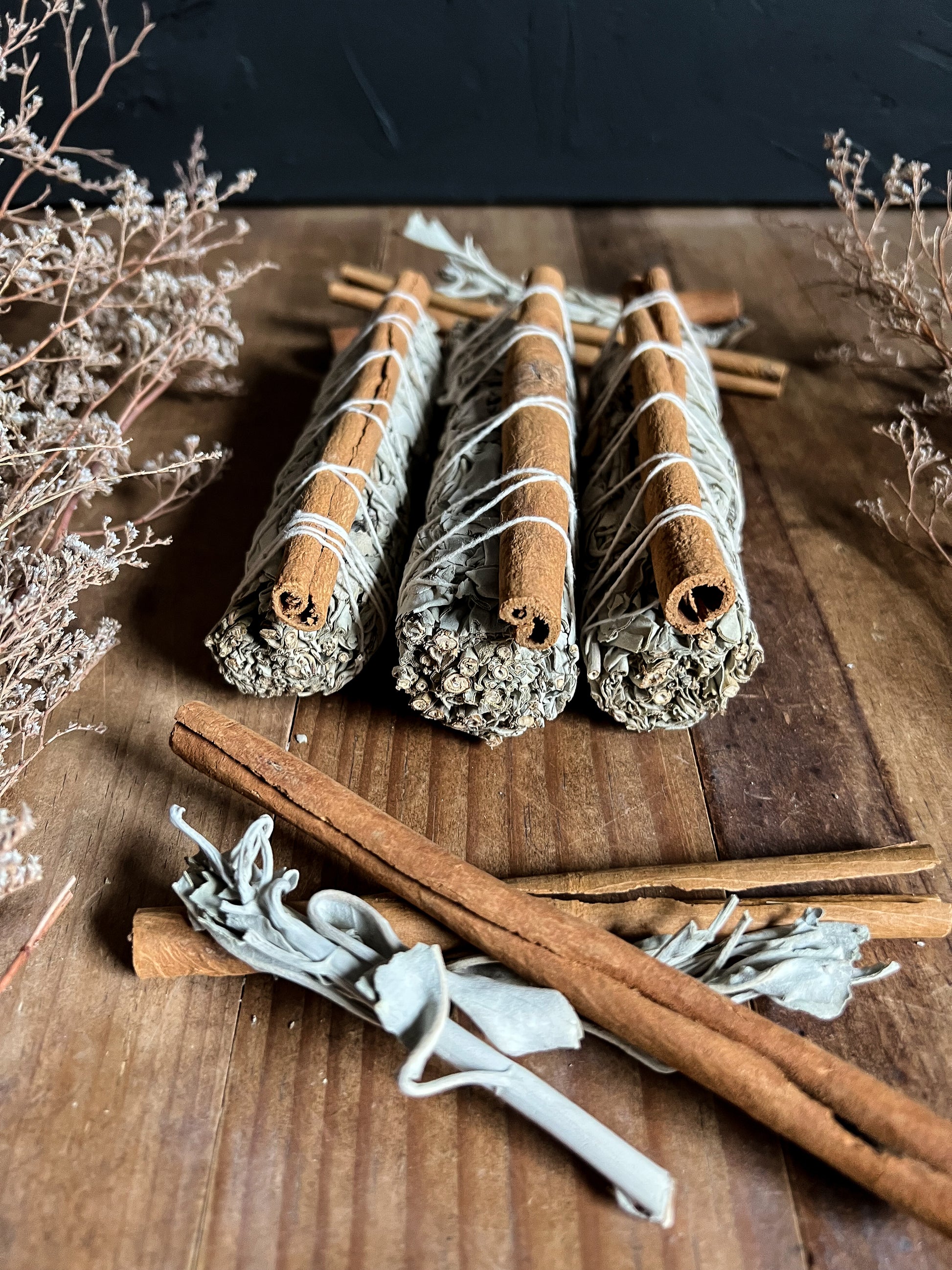 Invite the fall vibes and mystical energy into your life with these Organic White Sage and Cinnamon Stick bundles.