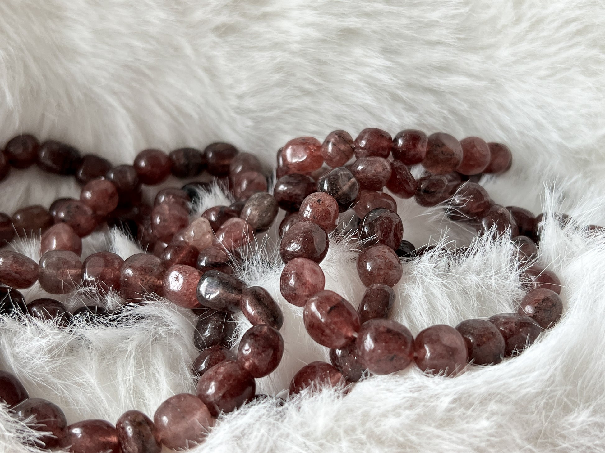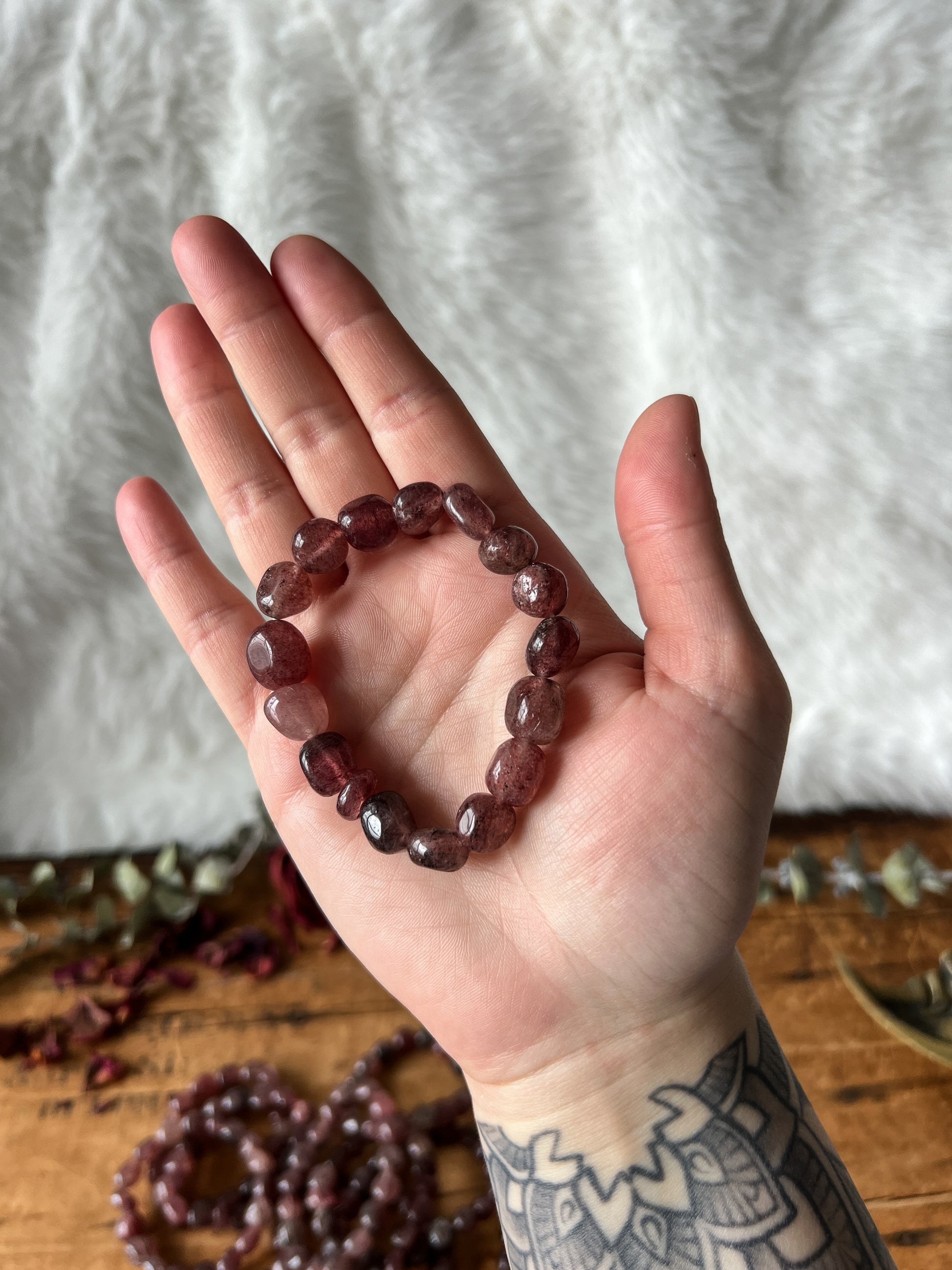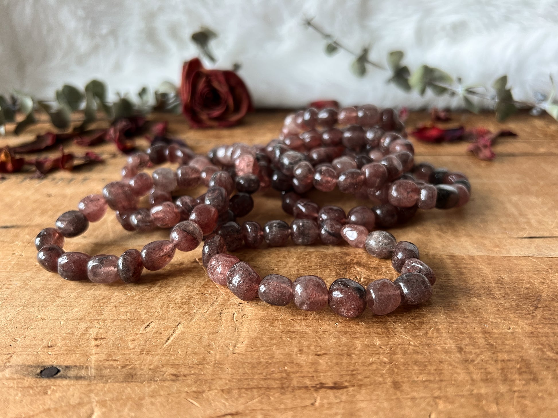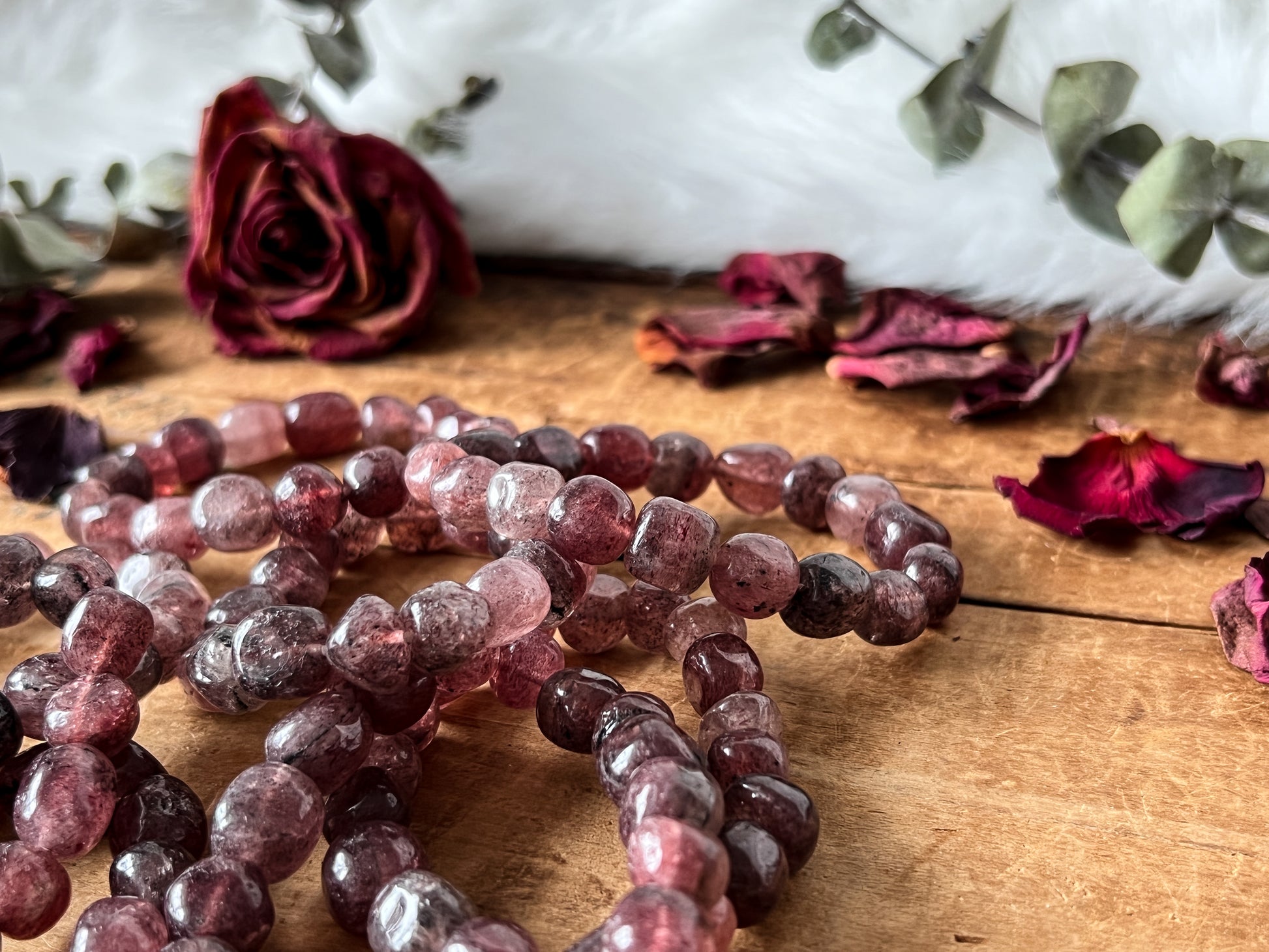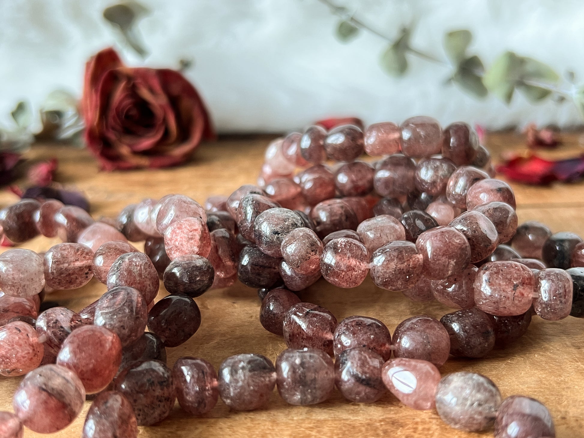 These beautiful bracelets are made up of genuine polished 8mm to 10mm Strawberry Quartz Crystals.