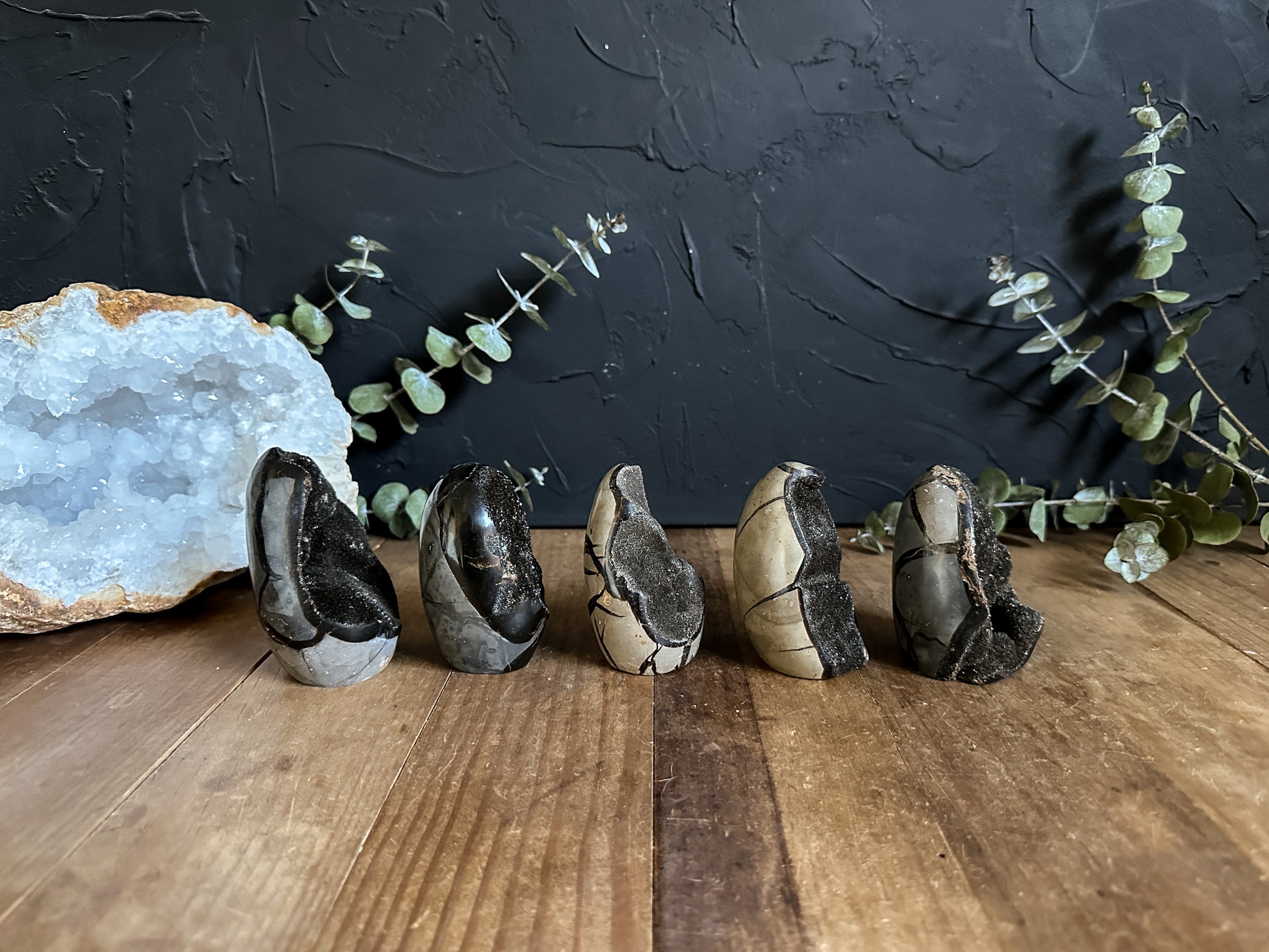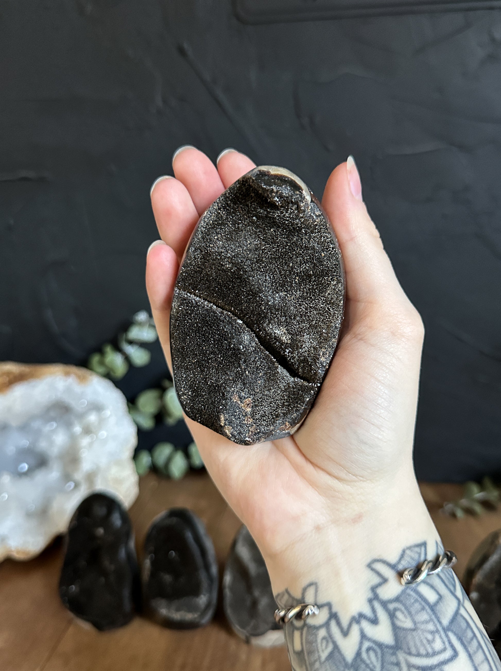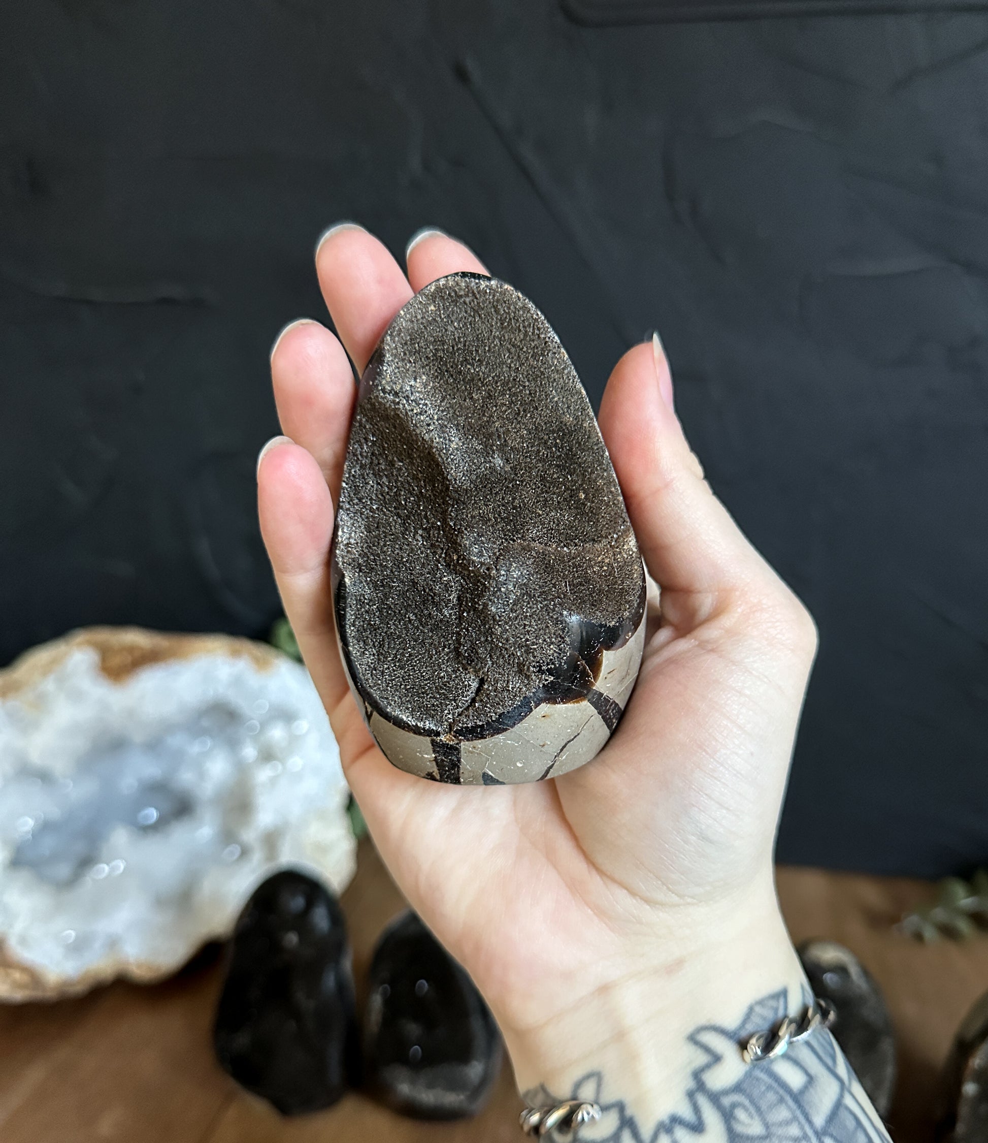Usage: Place Septarian on the root, sacral, or solar plexus chakra during meditation to amplify grounding and transformative energies. Its unique patterns and colours are said to bring a sense of stability and creativity. Carry Septarian as a pocket stone or incorporate it into your living space to benefit from its grounding and spiritually transformative properties throughout the day.