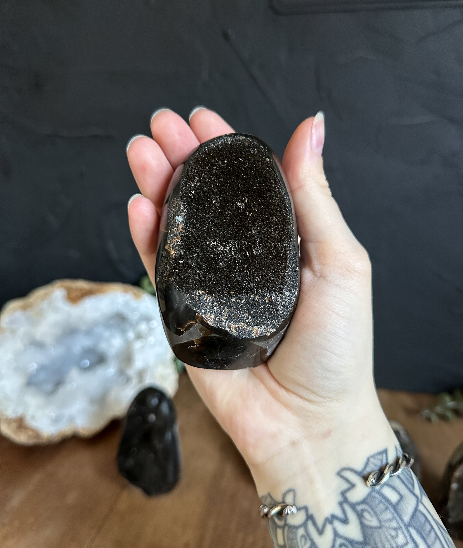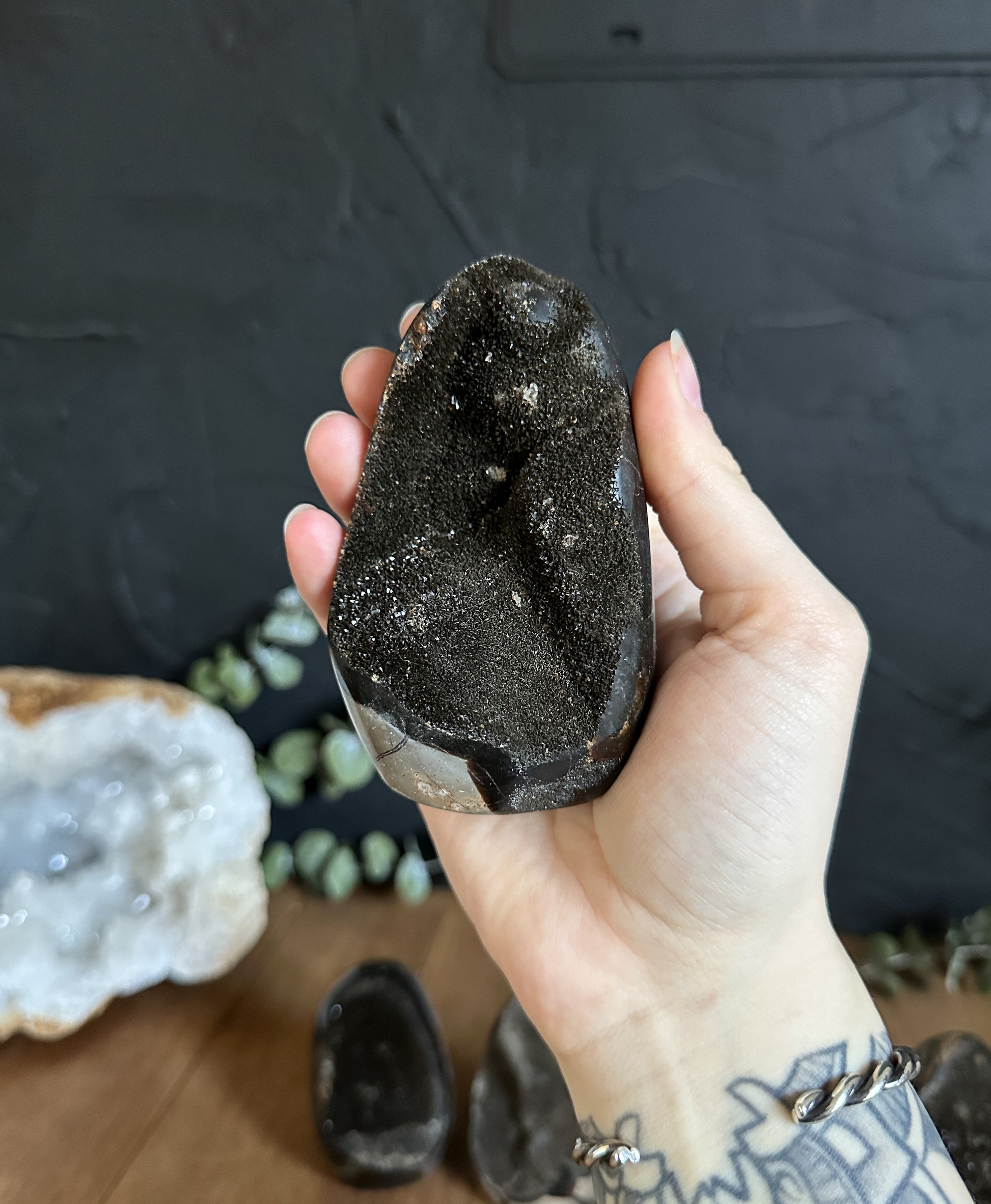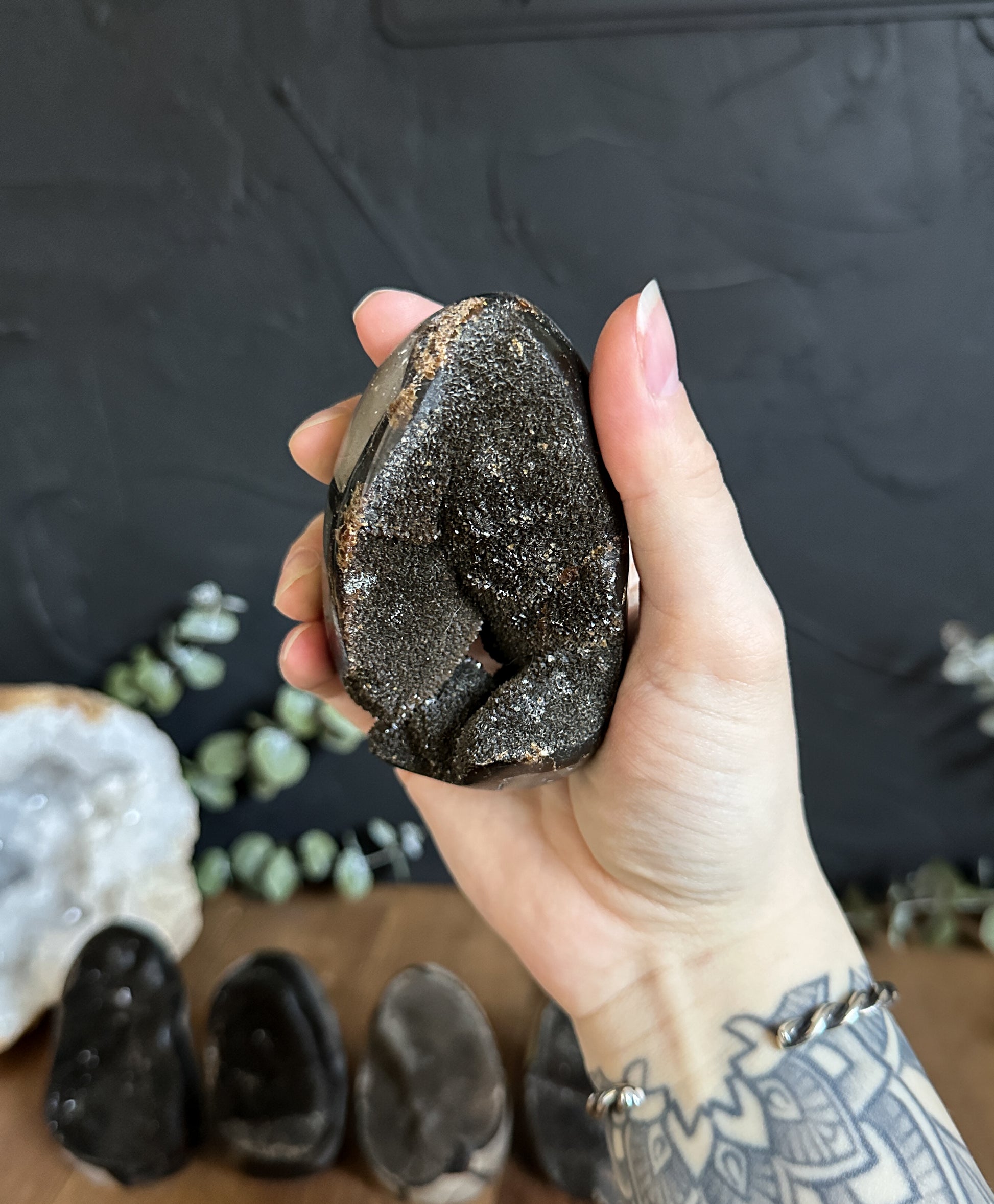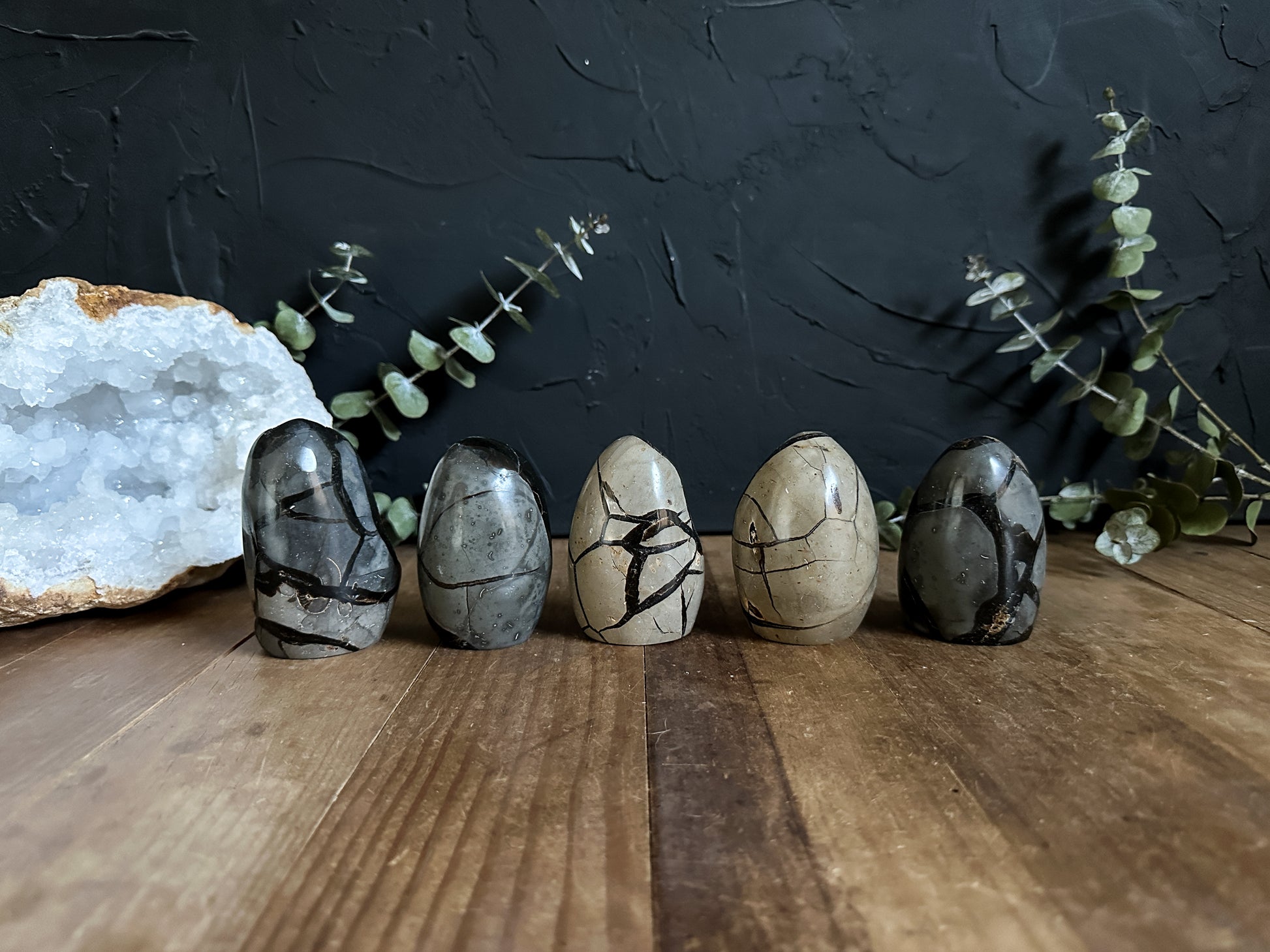 Usage: Place Septarian on the root, sacral, or solar plexus chakra during meditation to amplify grounding and transformative energies. Its unique patterns and colours are said to bring a sense of stability and creativity. Carry Septarian as a pocket stone or incorporate it into your living space to benefit from its grounding and spiritually transformative properties throughout the day.