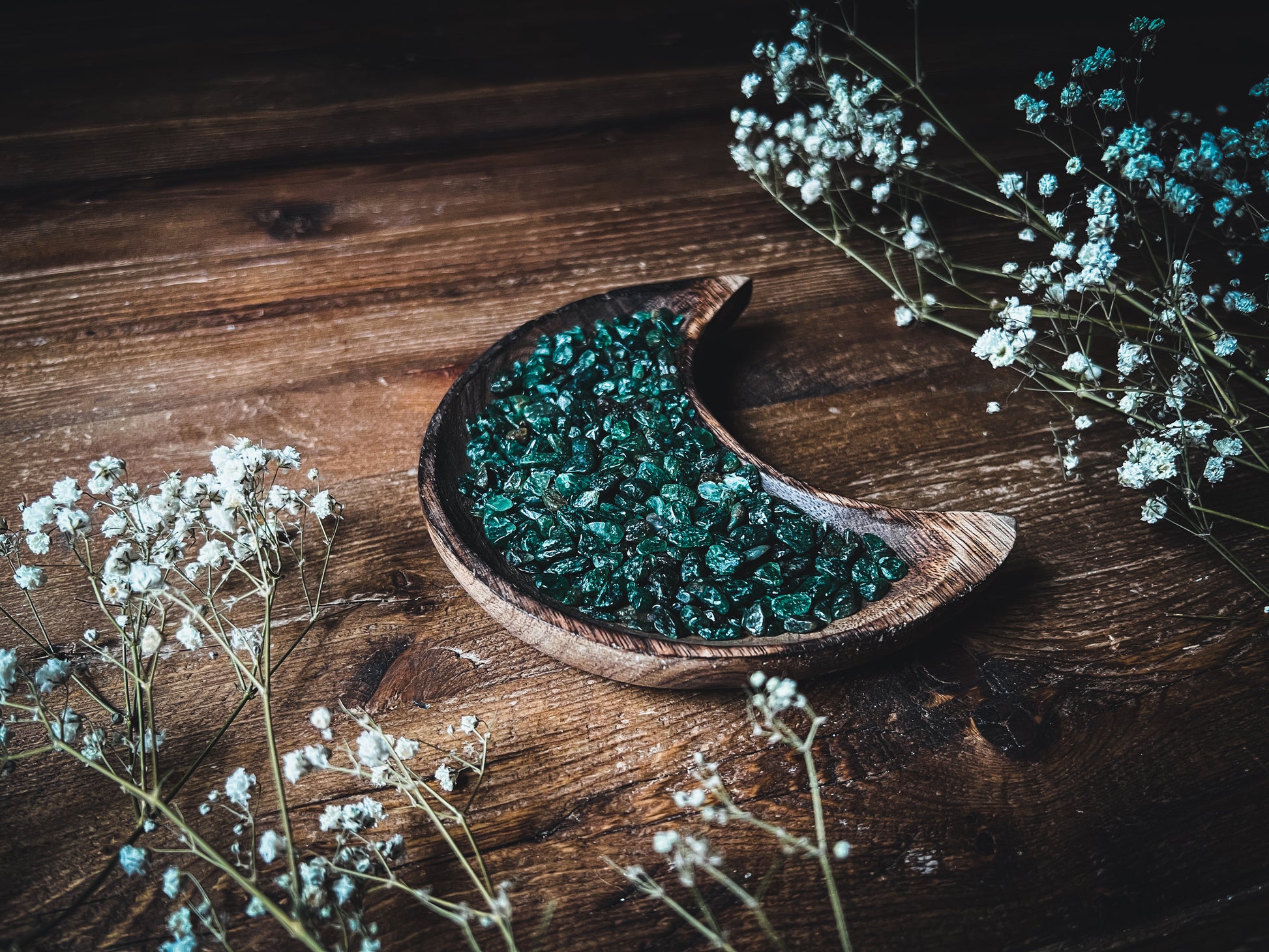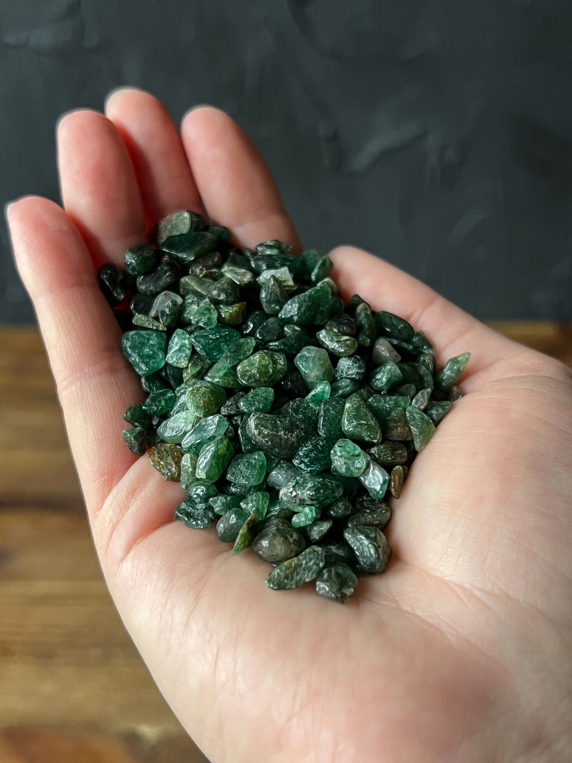 These Emerald Crystal Chips are exquisite pieces. Tiny Stones are great for candle making, crafts, resin jewelry, or to place in jars upon your altar.