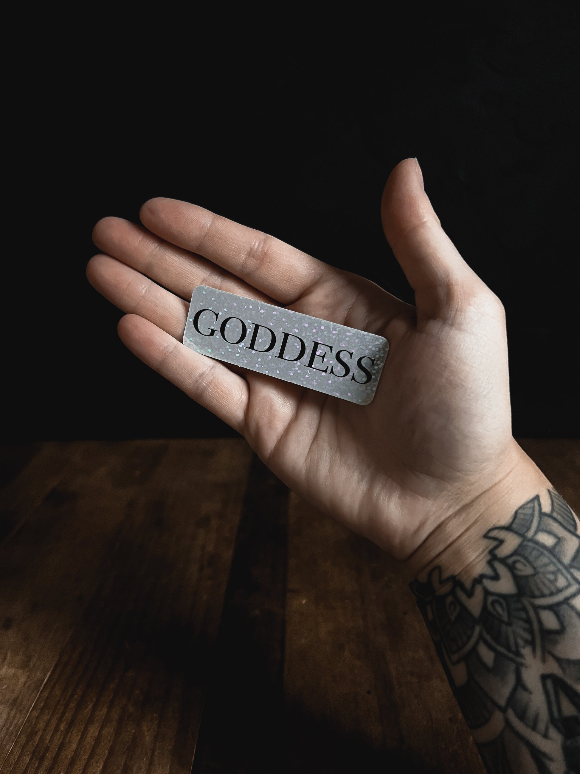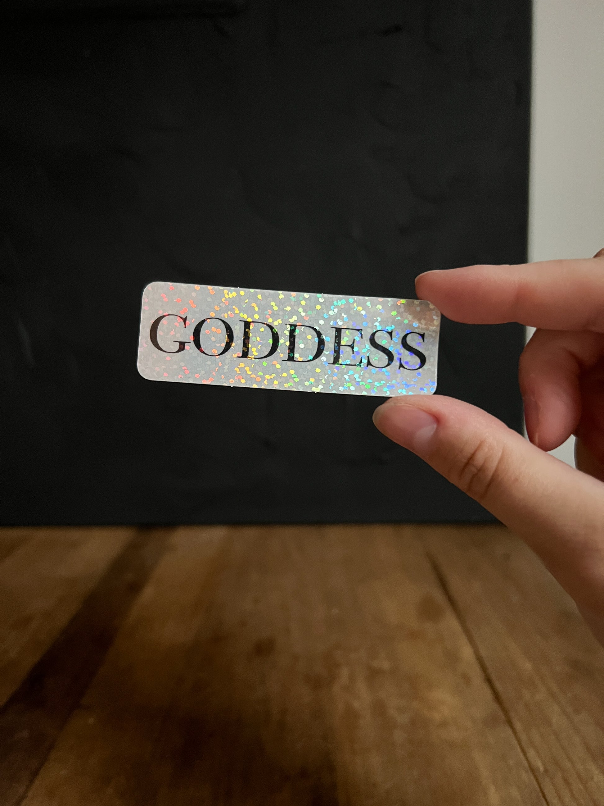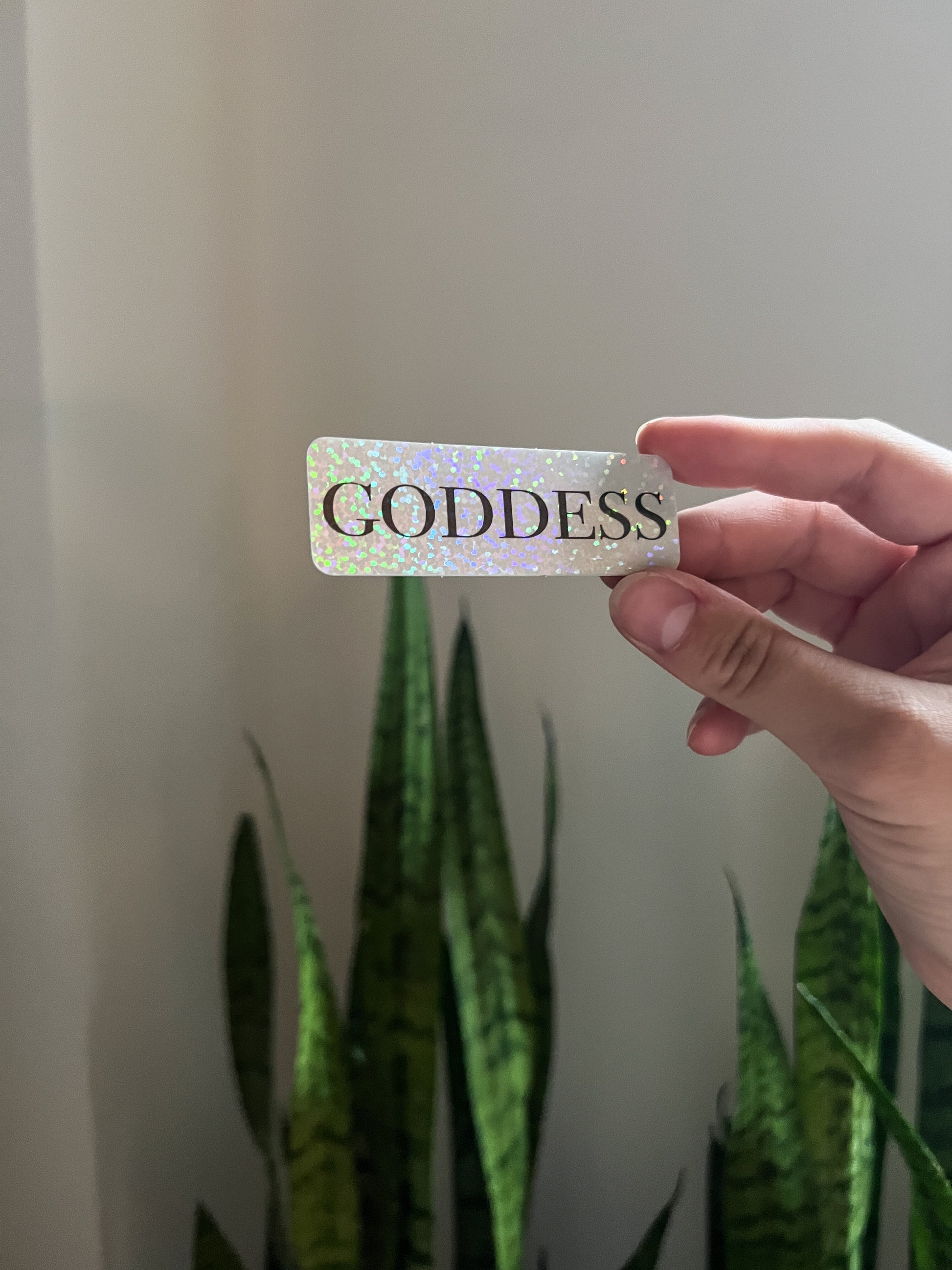 You are a goddess, let everyone know with this Glitter Goddess Sticker.