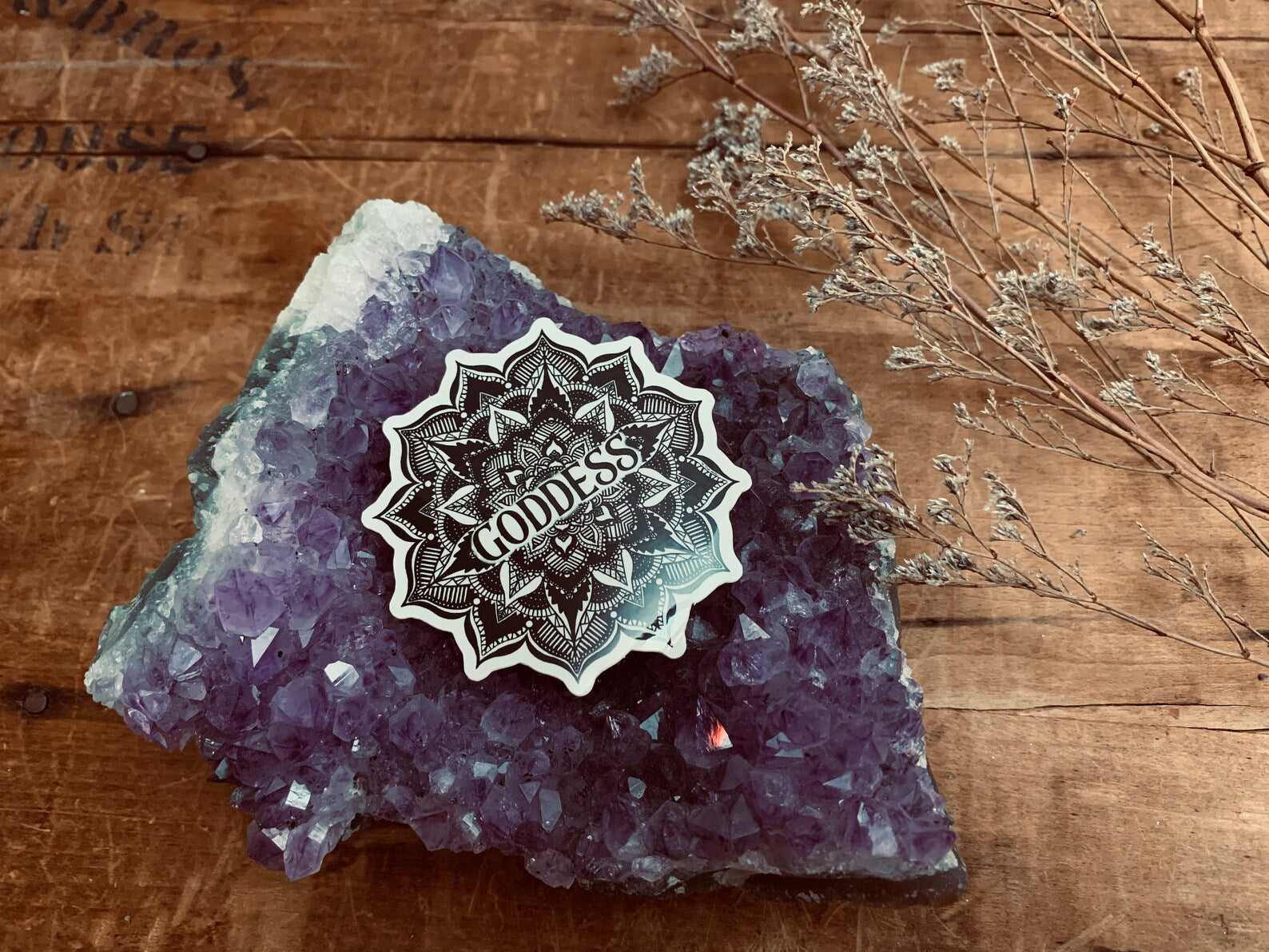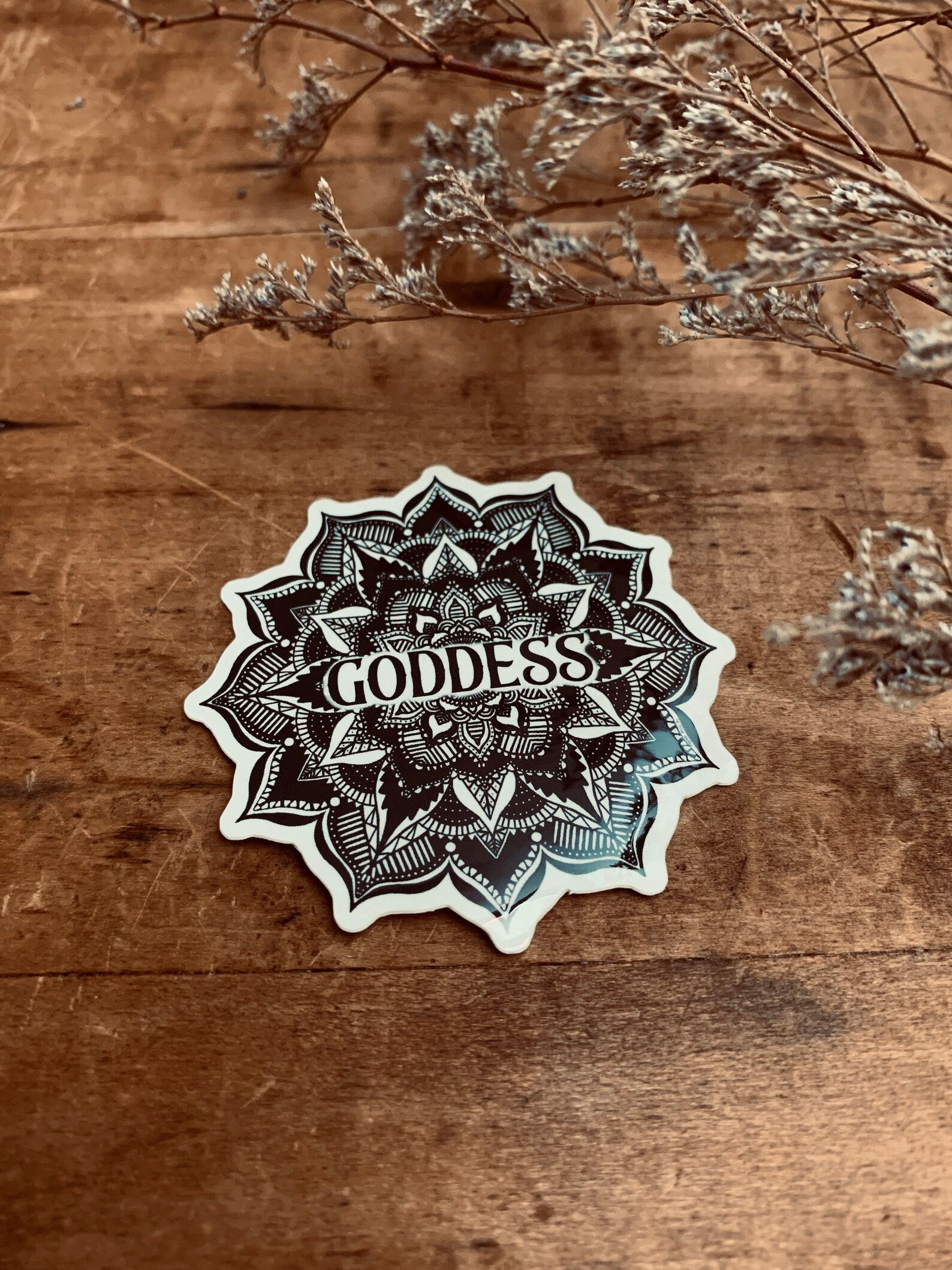 Add some witchy vibes to your everyday with this Goddess Mandala sticker. These stickers are perfect for your Grimoire, journal, notebook, or anywhere you want to add a little bit of magic! (Durable for cars and reusable water bottles.)