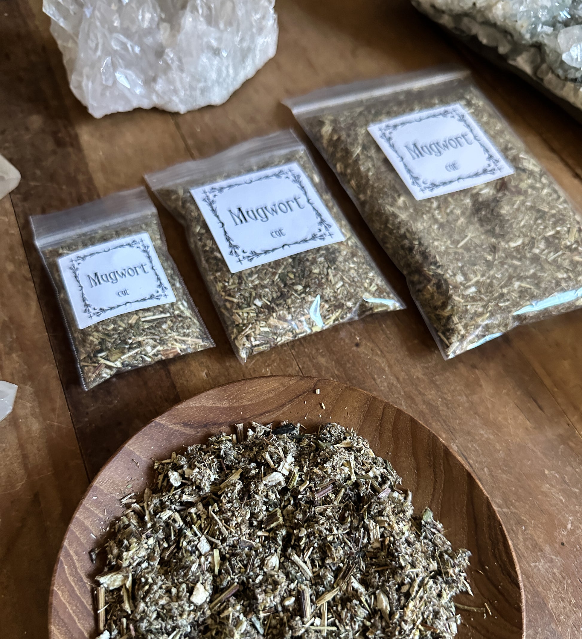 Mugwort is often associated with Protection, Divination, Psychic abilities, Dreams,  Healing, and Spiritual journeying. Burn mugwort as incense or use it in smudging rituals to banish negative energy and cleanse your space.