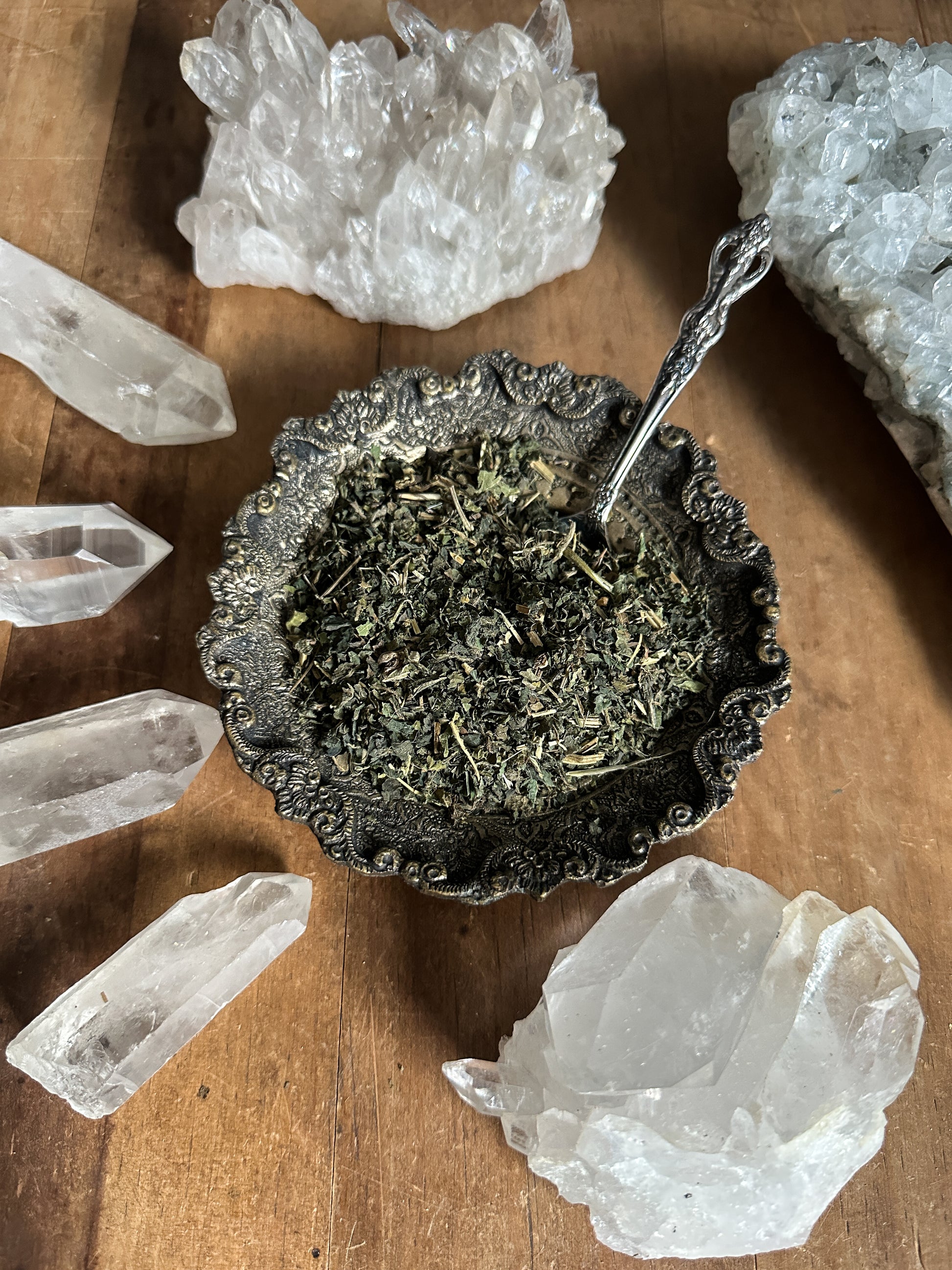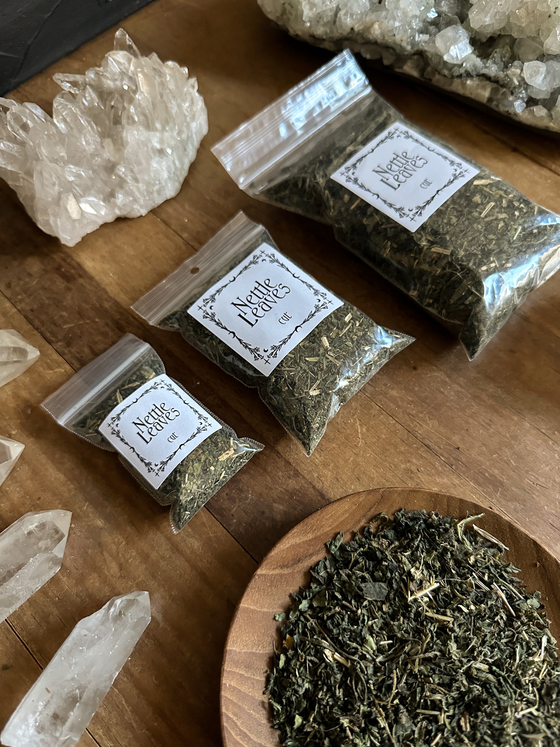Nettle leaves are often associated with Protection, Prosperity, Healing, Purification, Vitality, Strength, Abundance, and Grounding. Carry a sachet of dried nettle leaves to enhance your sense of stability and resilience in the face of challenges.