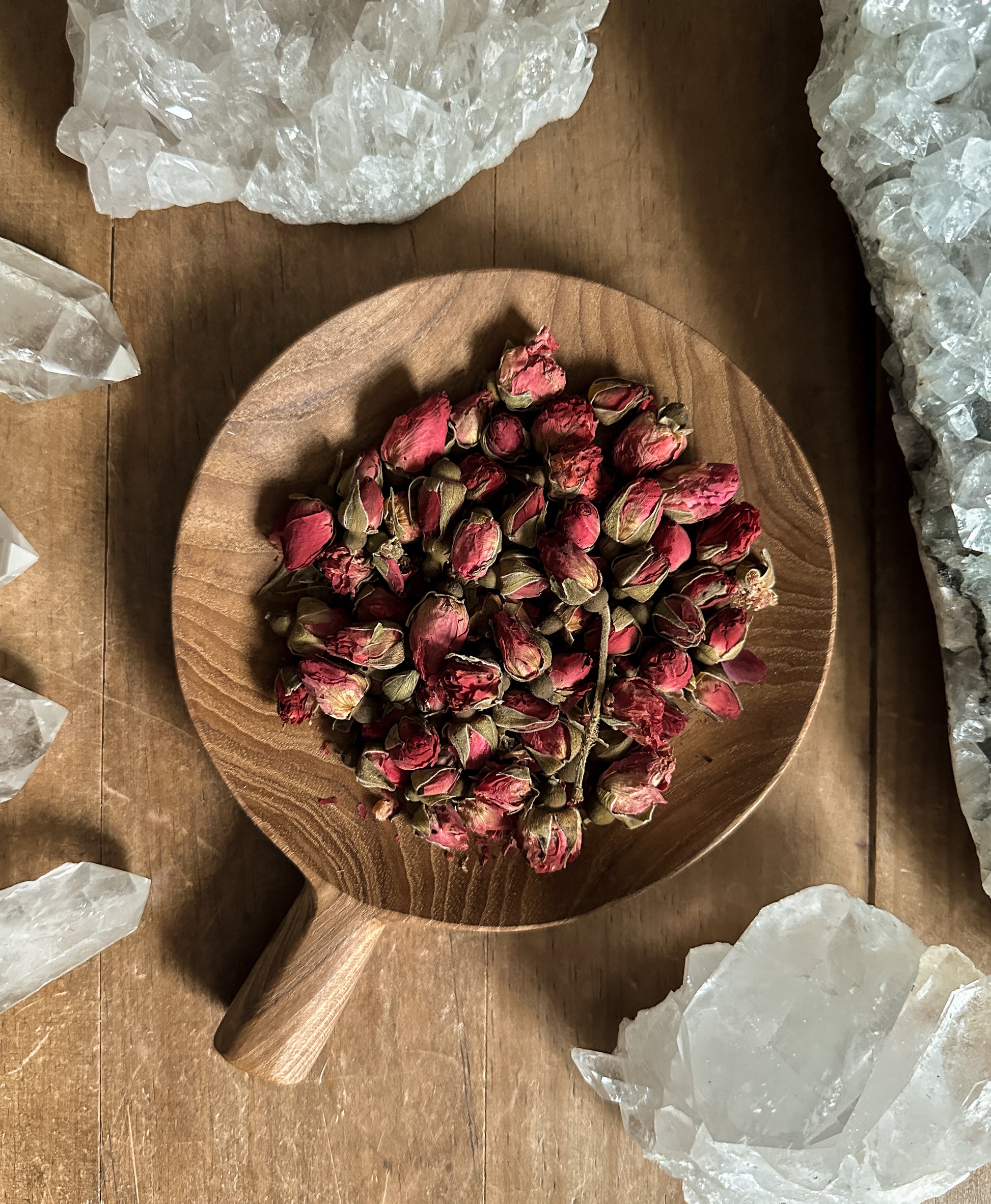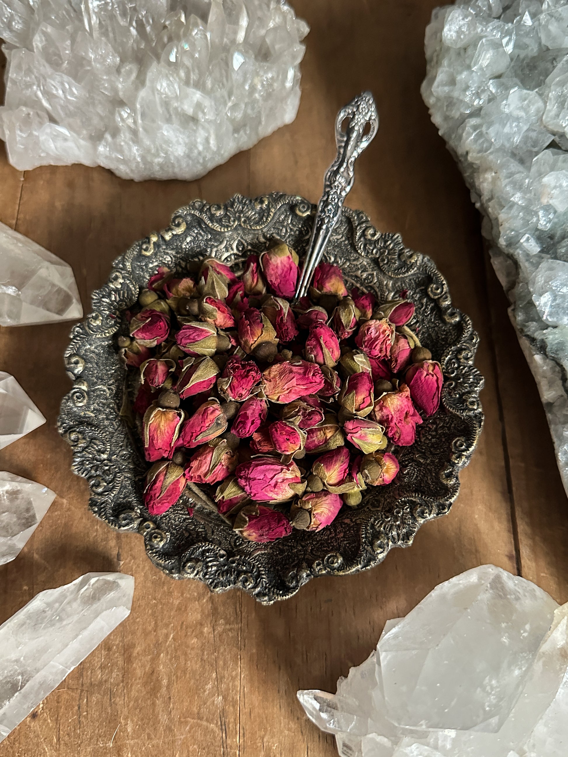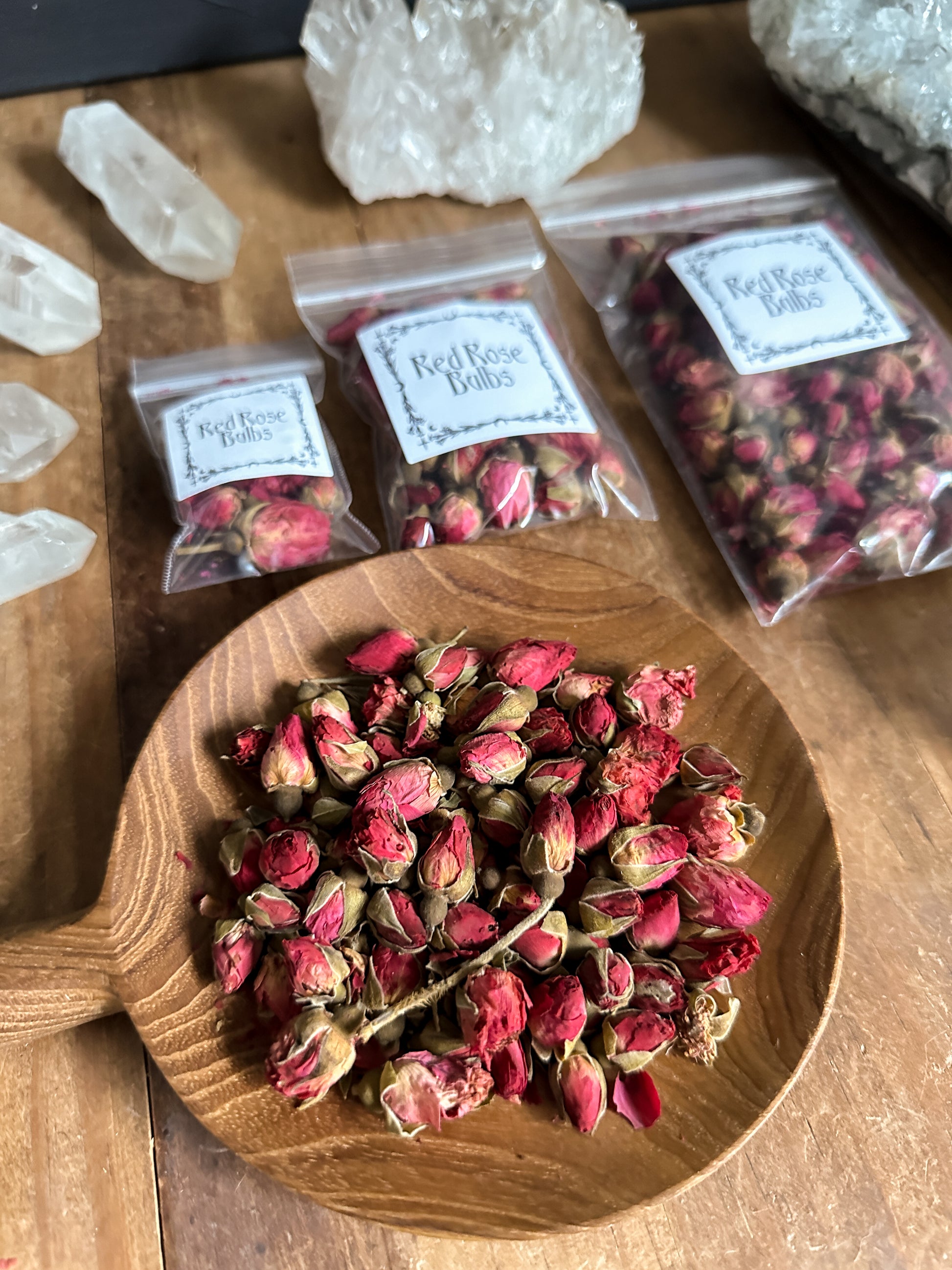 Meditate with red rose buds to soothe emotional wounds, release grief, and cultivate self-love and acceptance. Burn dried rose buds as incense in rituals or ceremonies to create a sacred atmosphere and invoke divine protection.