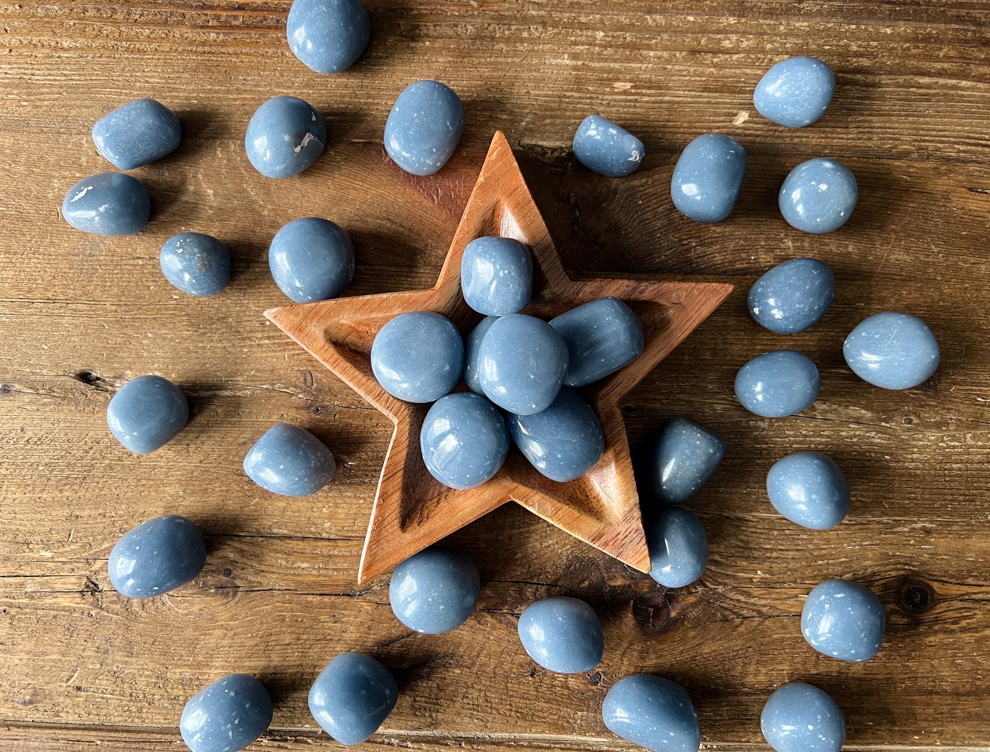 Healing Properties: Angelite, a crystal of divine communication and spiritual awareness, aligns with the throat, third eye, and crown chakras. Recognized for its soft blue tones, Angelite is believed to enhance communication with angels, spirit guides, and higher realms. It is associated with promoting compassion, inner peace, and the release of stress. Angelite is thought to assist in opening the channels of divine communication, fostering spiritual growth, and supporting a harmonious connection to the celestial realms.