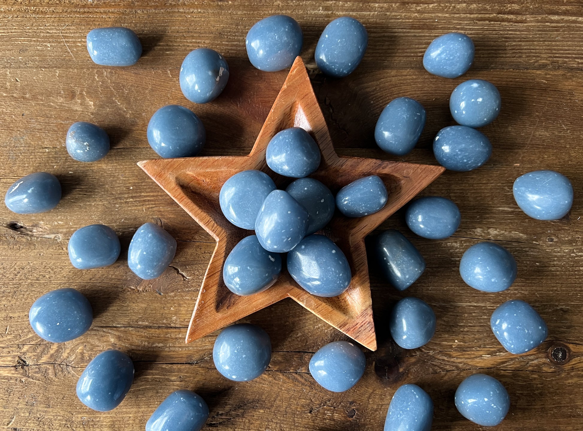 Usage: Place Angelite on the throat, third eye, or crown chakra during meditation to amplify divine communication and spiritual awareness. Its soft blue colour is said to bring a sense of tranquility and connection to the celestial realms. Carry Angelite as a pocket stone or wear it as jewelry to benefit from its spiritually enlightening and calming properties throughout the day.