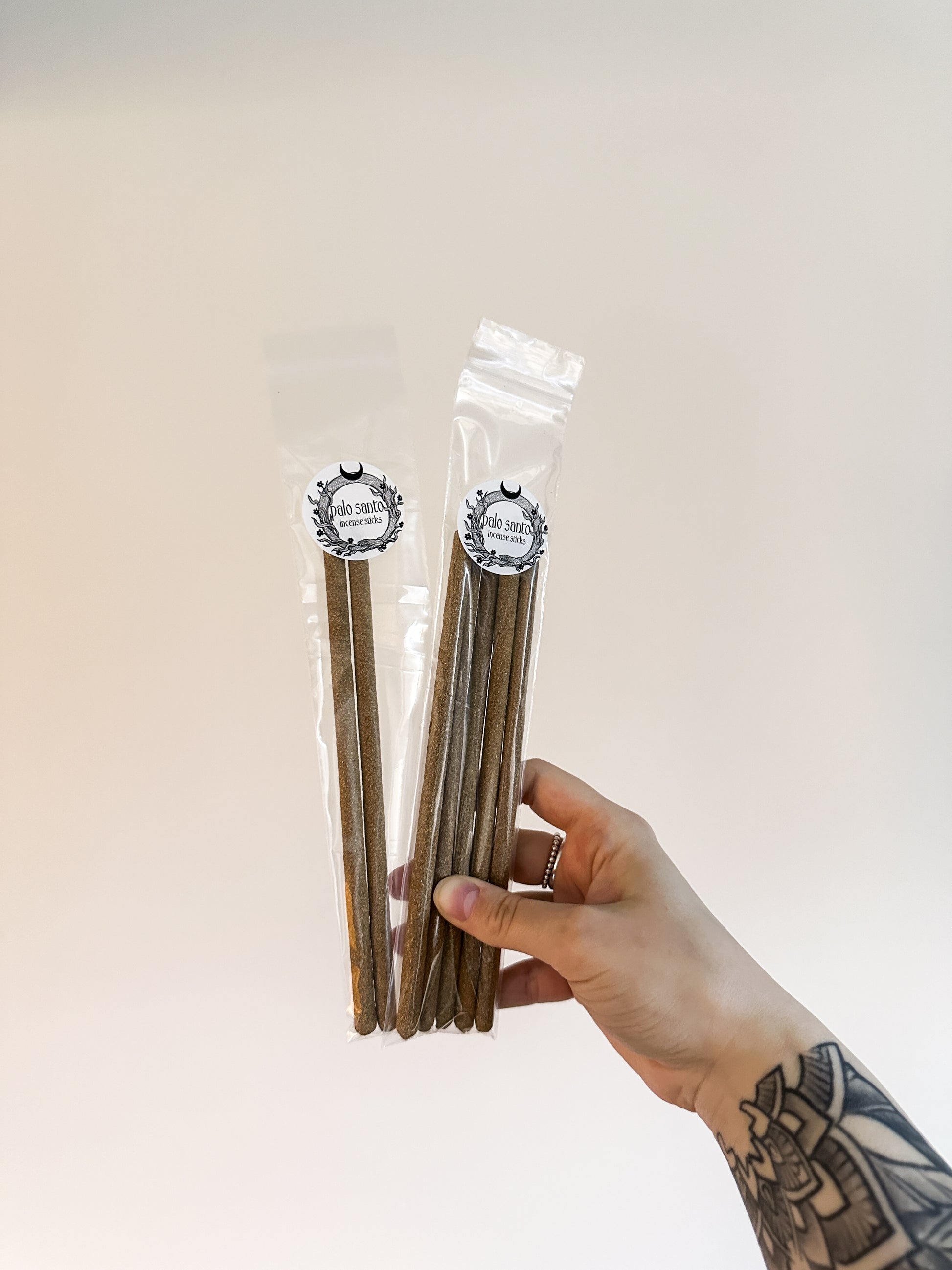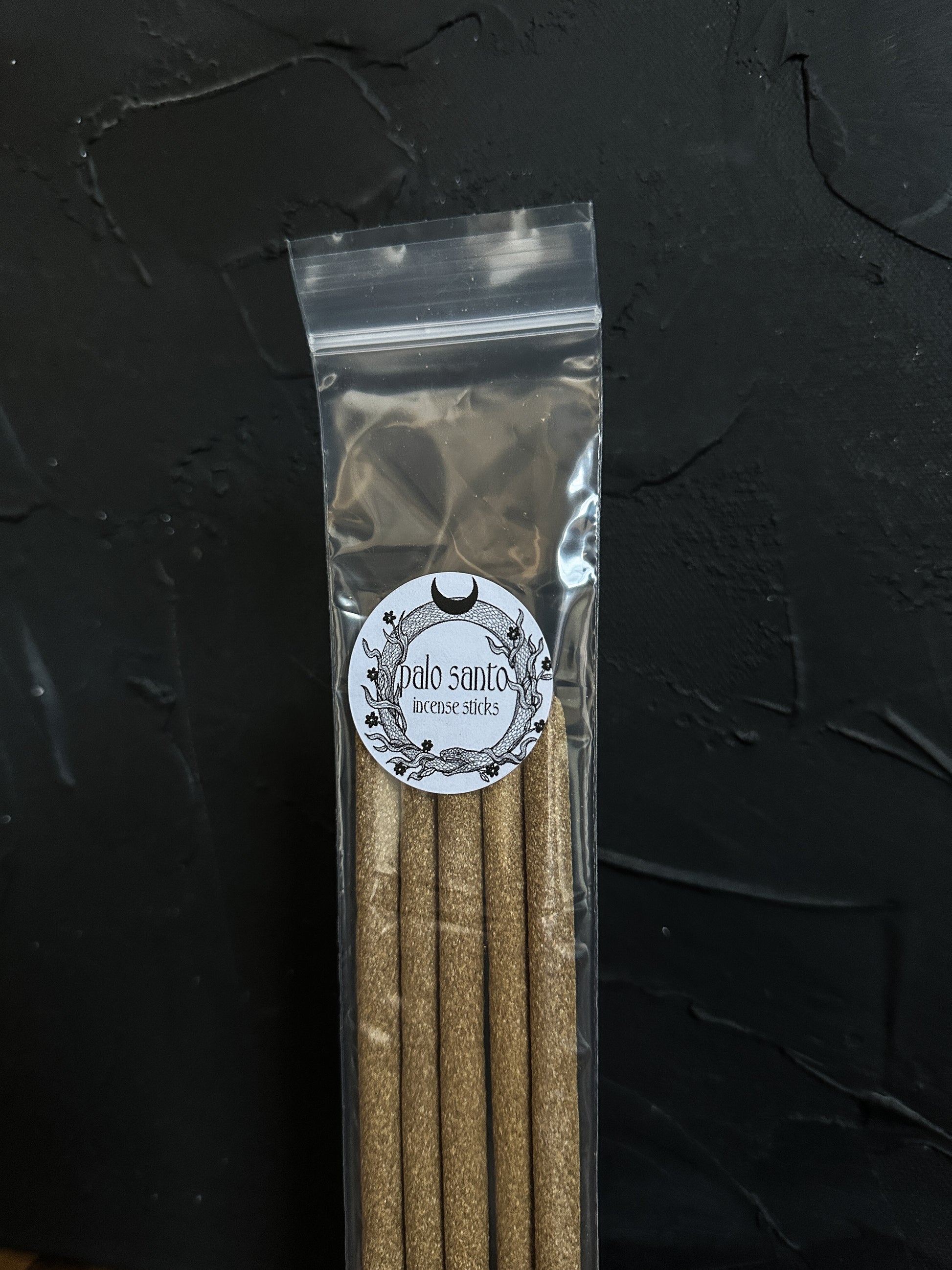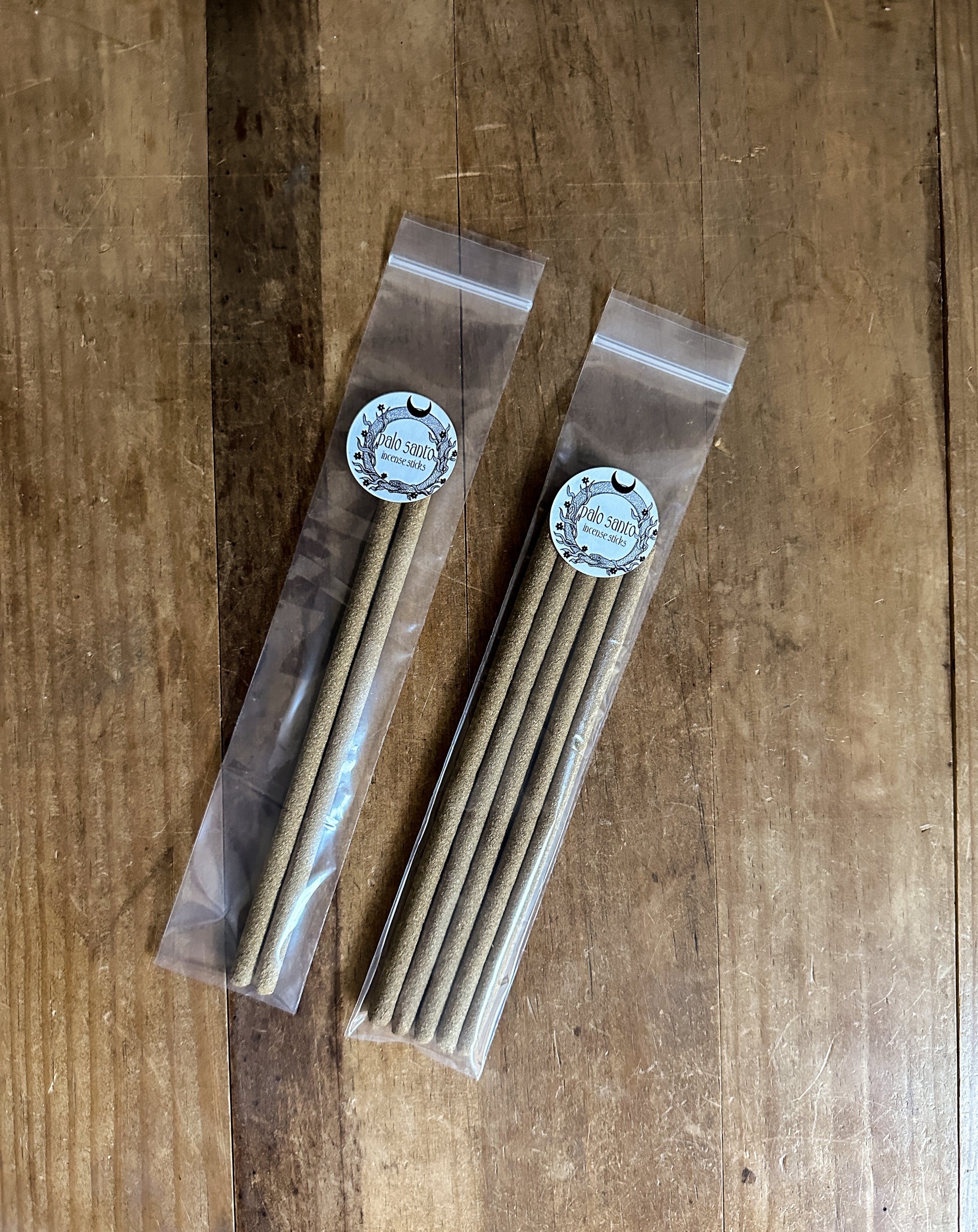 Palo Santo wood is harvested under government supervision by the natives of the Peruvian jungle. No trees are destroyed in the collection of the wood, only twigs and branches on the ground are collected. Our Palo Santo sticks are made from Palo Santo oil and powder mixed together.