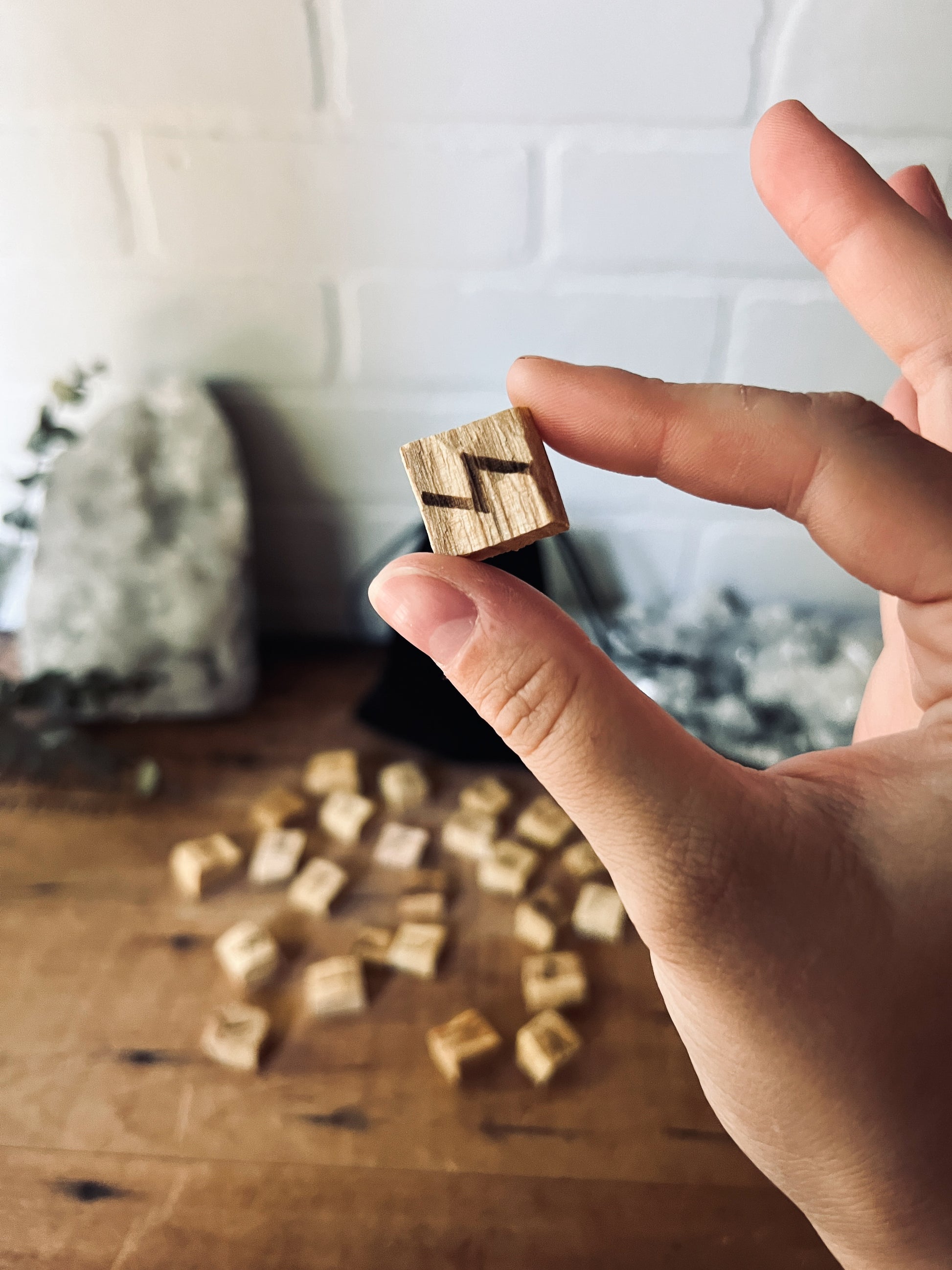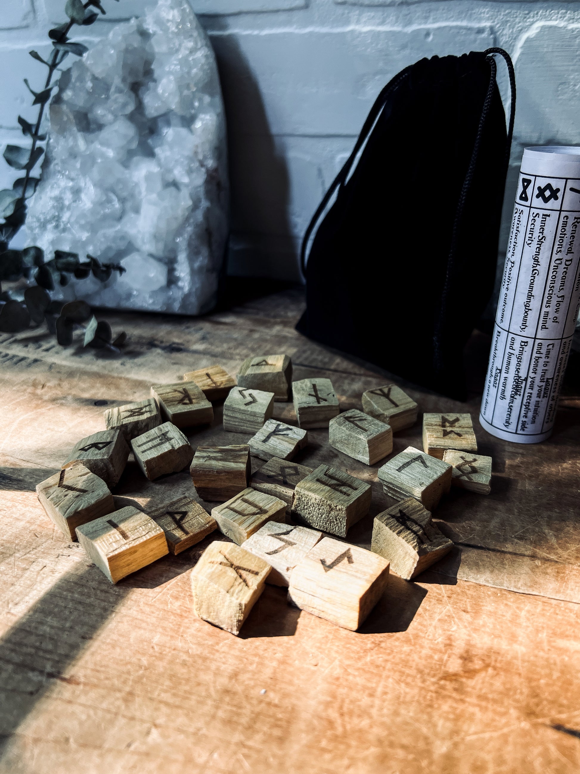 You will receive 1 set of Elder Futhark Runes Made from Reclaimed Palo Santo.