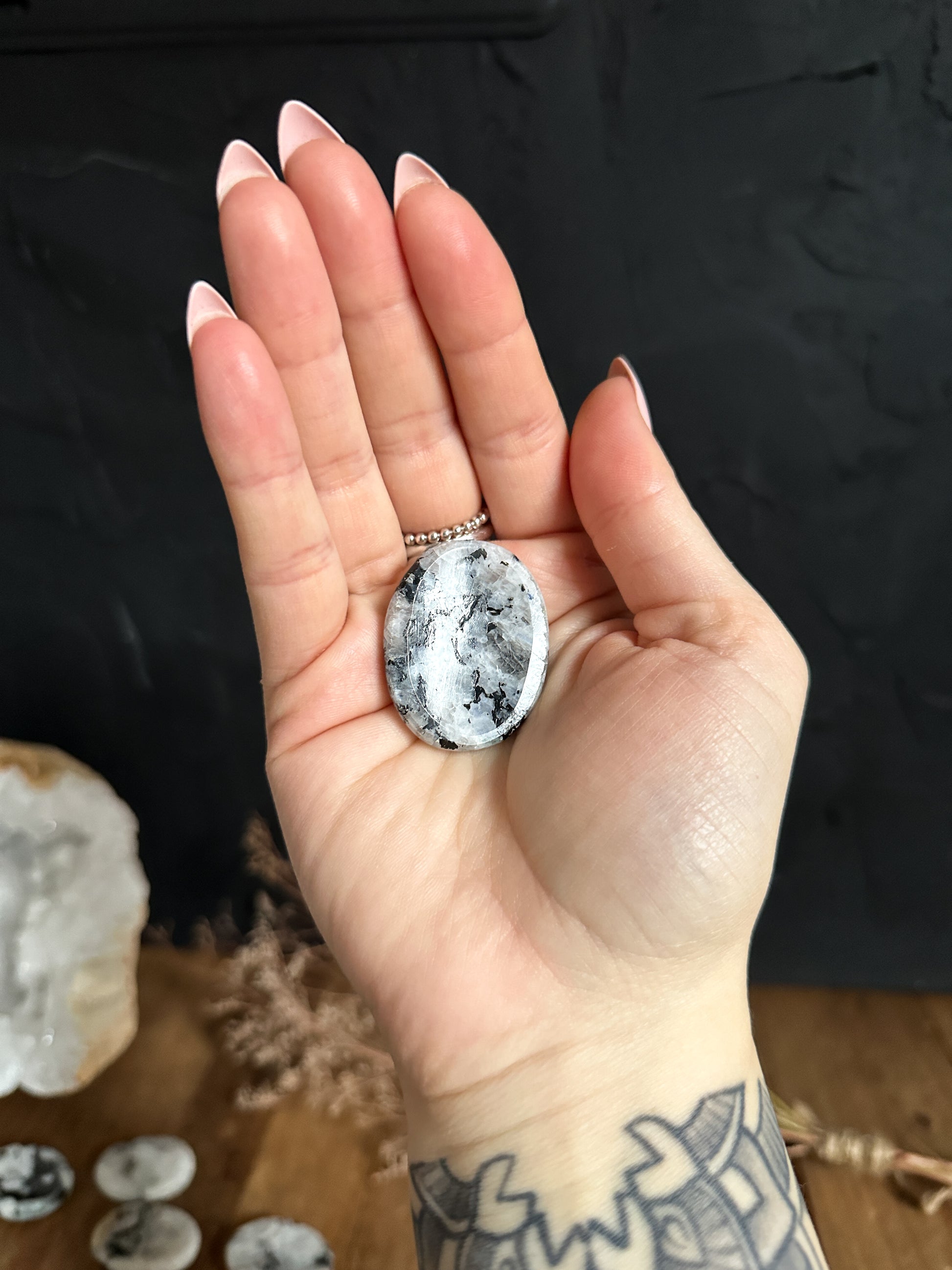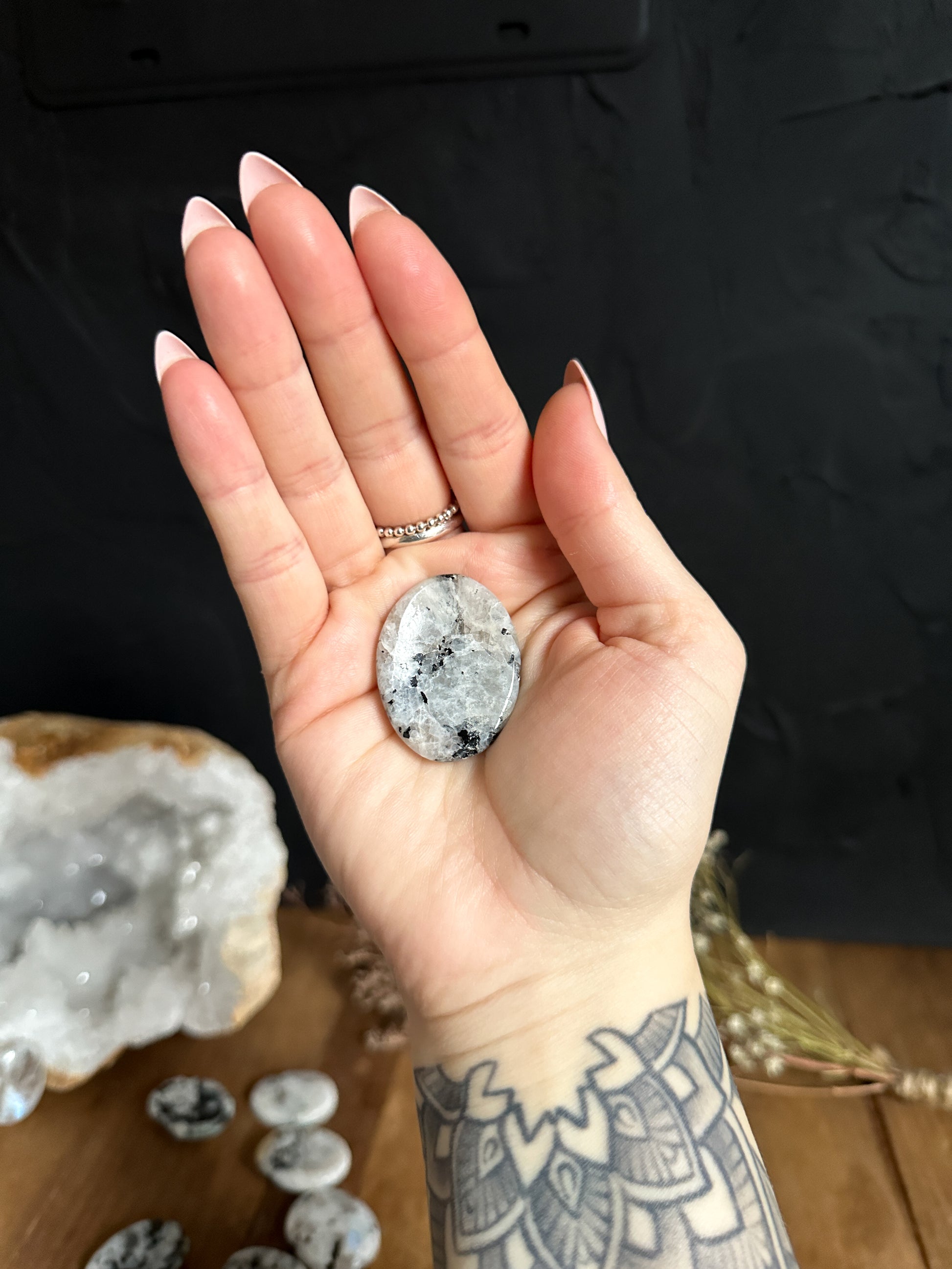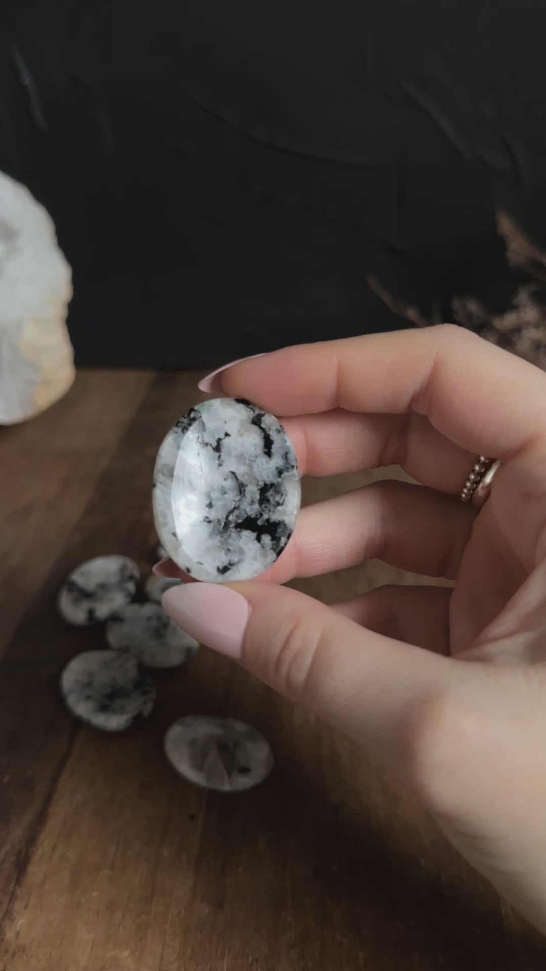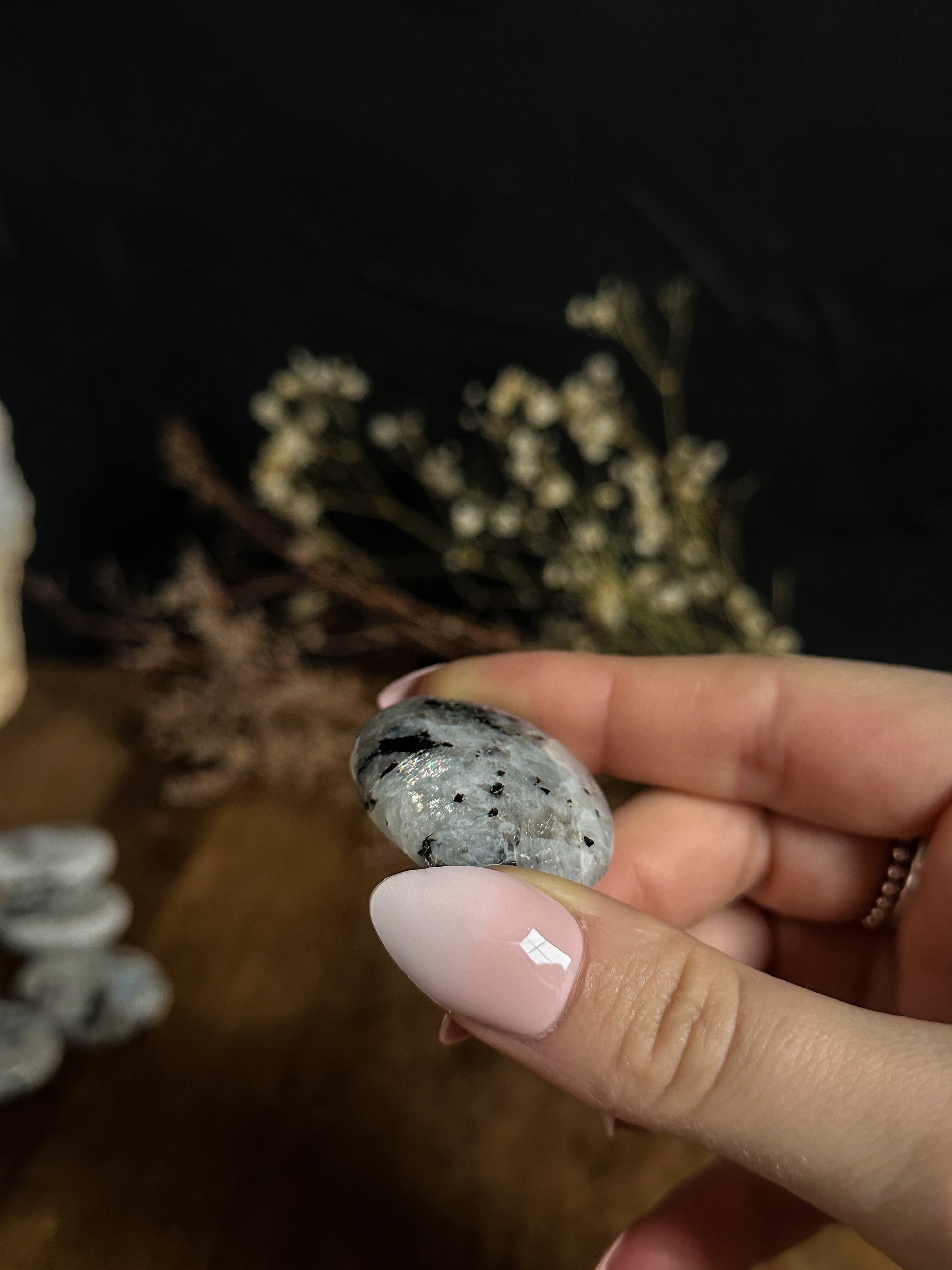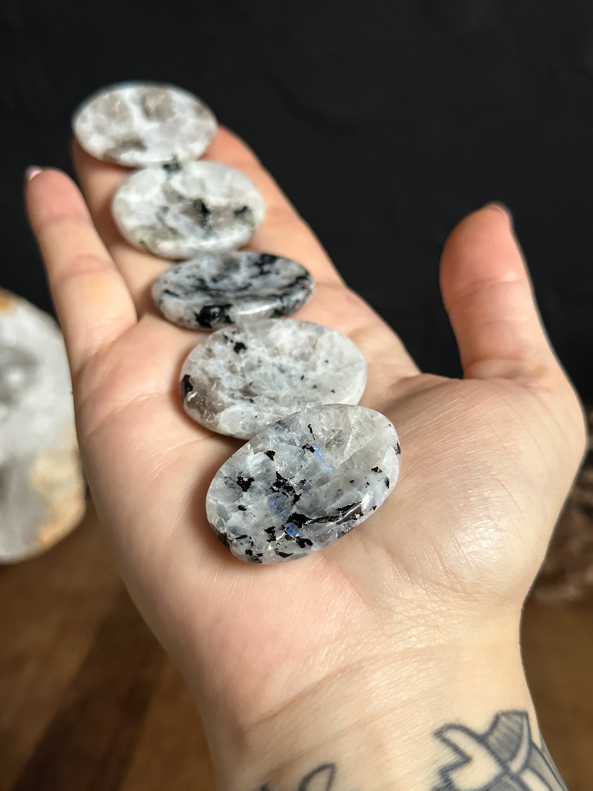 You will receive ONE moonstone worry stone! Each stone has flashes of colours and/or iridescent rainbow inclusions.