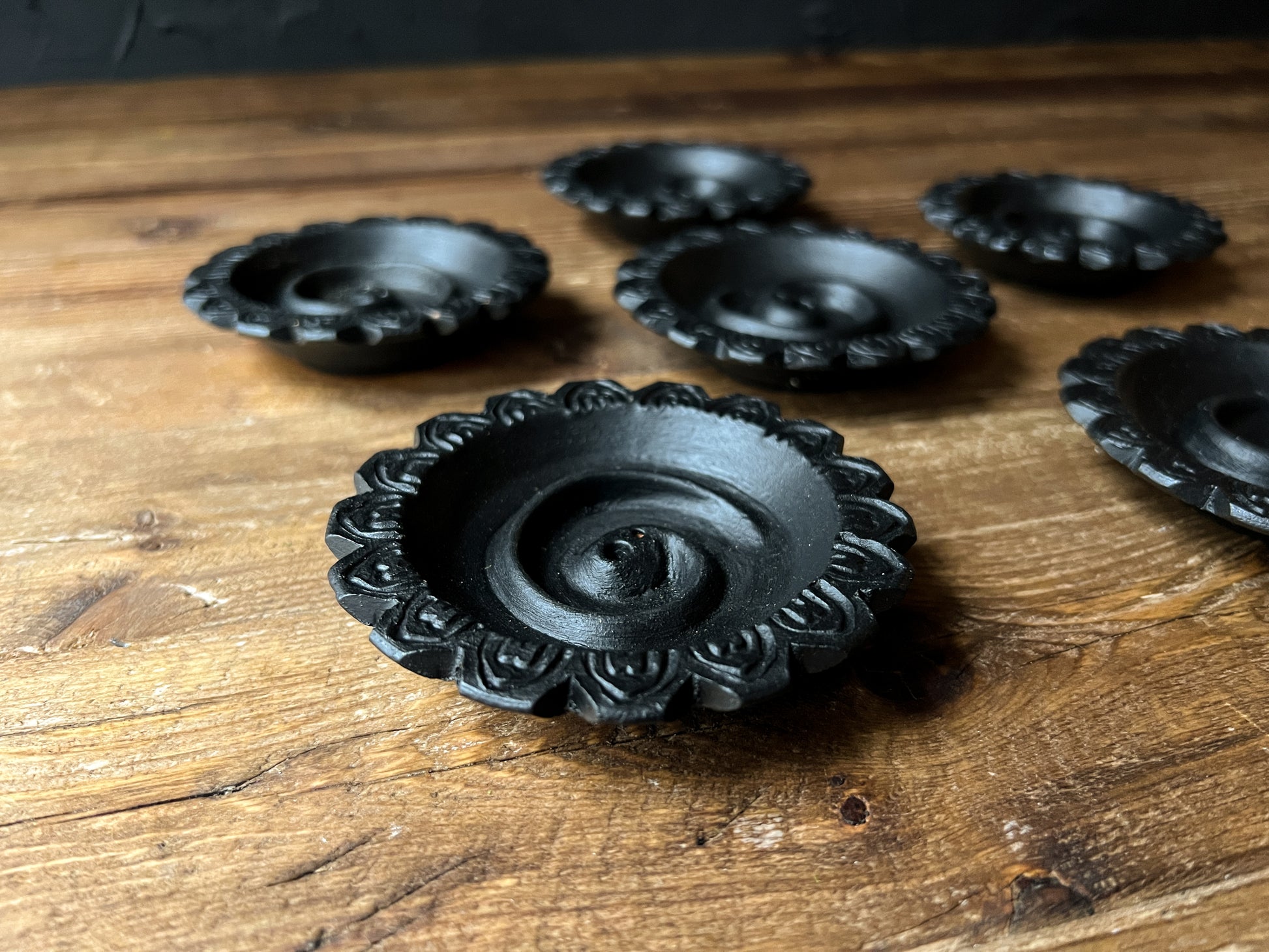 This beautiful black Incense burner is perfect for catching any incense ash! It features two different holes to accommodate your favourite form of incense. One larger hole for rope incense and a smaller hole for incense sticks.