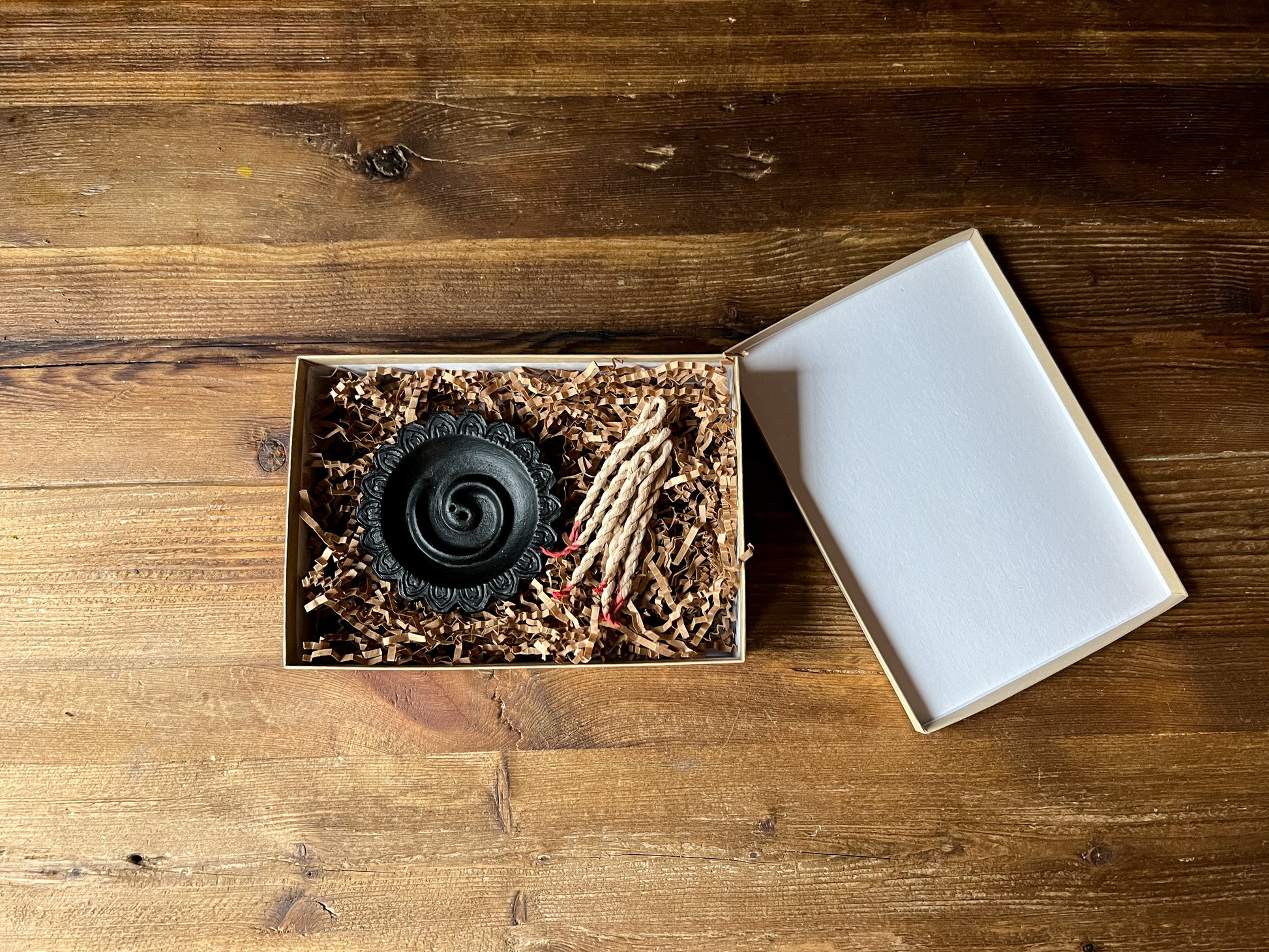 These Sandalwood Incense Ropes are thoughtfully paired with a stunning black incense holder. Each bundle of rope incense is meticulously handcrafted, ensuring a high-quality and long-lasting aromatic experience.