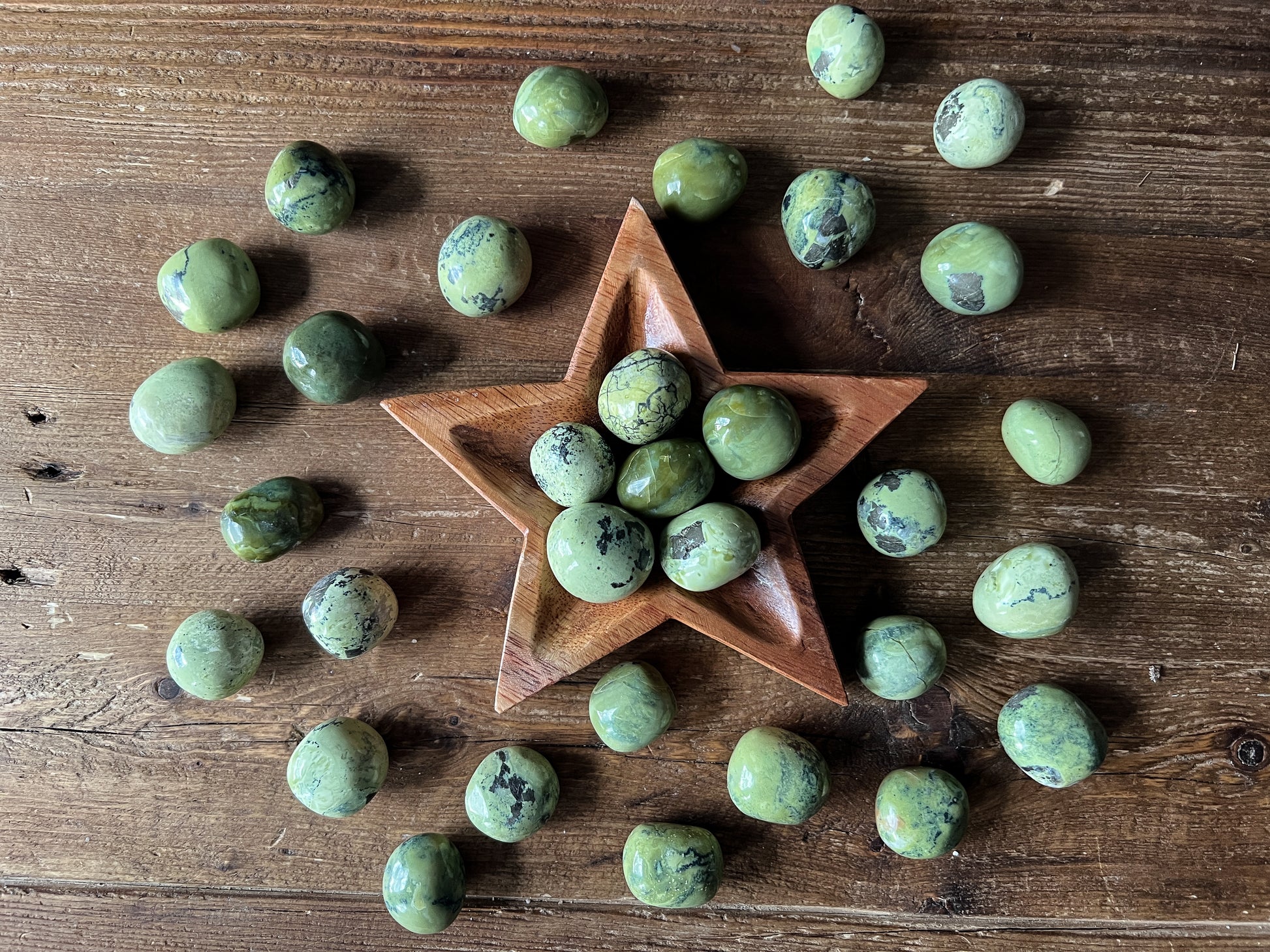 Healing Properties: Serpentine, a crystal of transformation and healing, aligns with the heart chakra. Recognized for its varying shades of green, Serpentine is believed to enhance emotional balance, compassion, and spiritual growth. It is associated with promoting a sense of renewal, inner peace, and the release of negative energies. Serpentine is thought to assist in connecting with nature, fostering self-love, and supporting the transformational journey.
