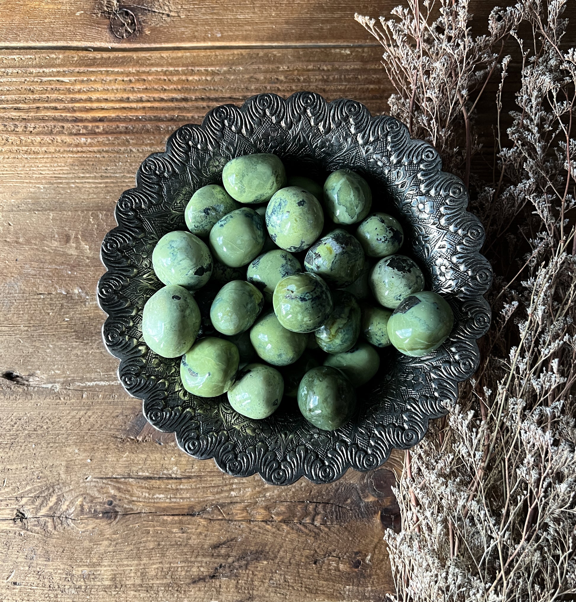 Usage: Place Serpentine on the heart chakra during meditation to amplify emotional healing and spiritual growth. Its green hues are said to bring a sense of renewal and connection to nature. Carry Serpentine as a pocket stone or incorporate it into your living space to benefit from its transformative and healing properties throughout the day.